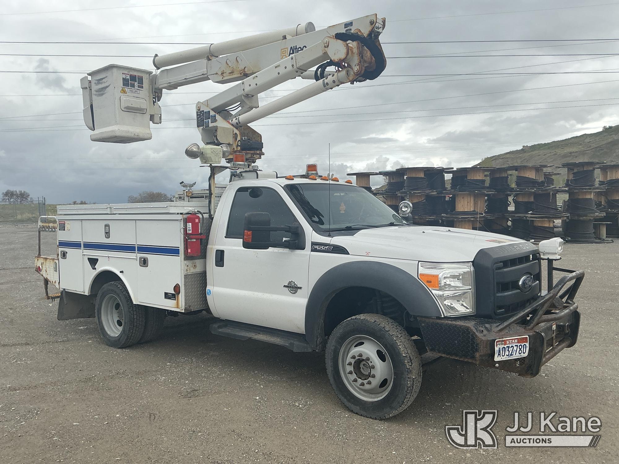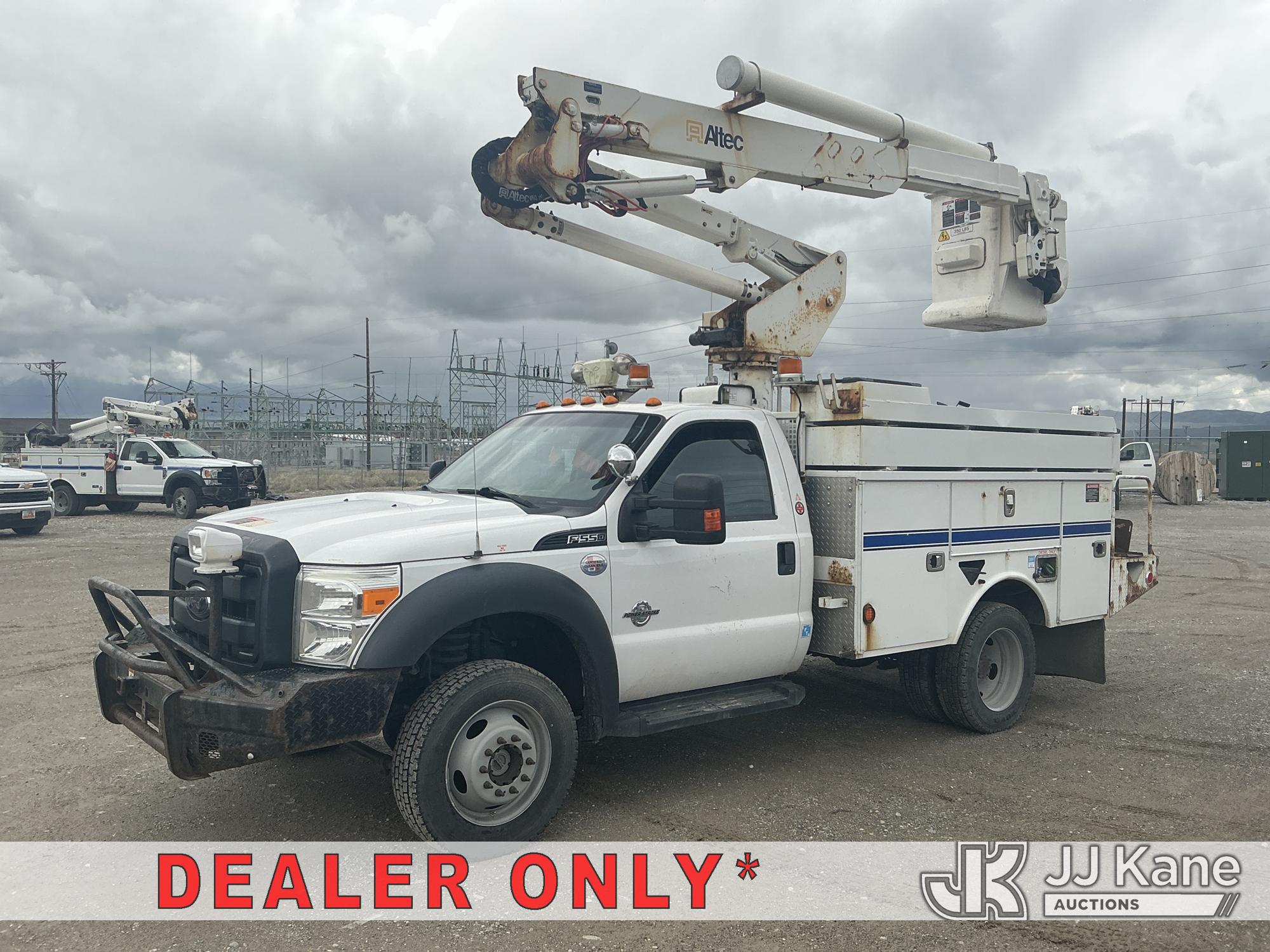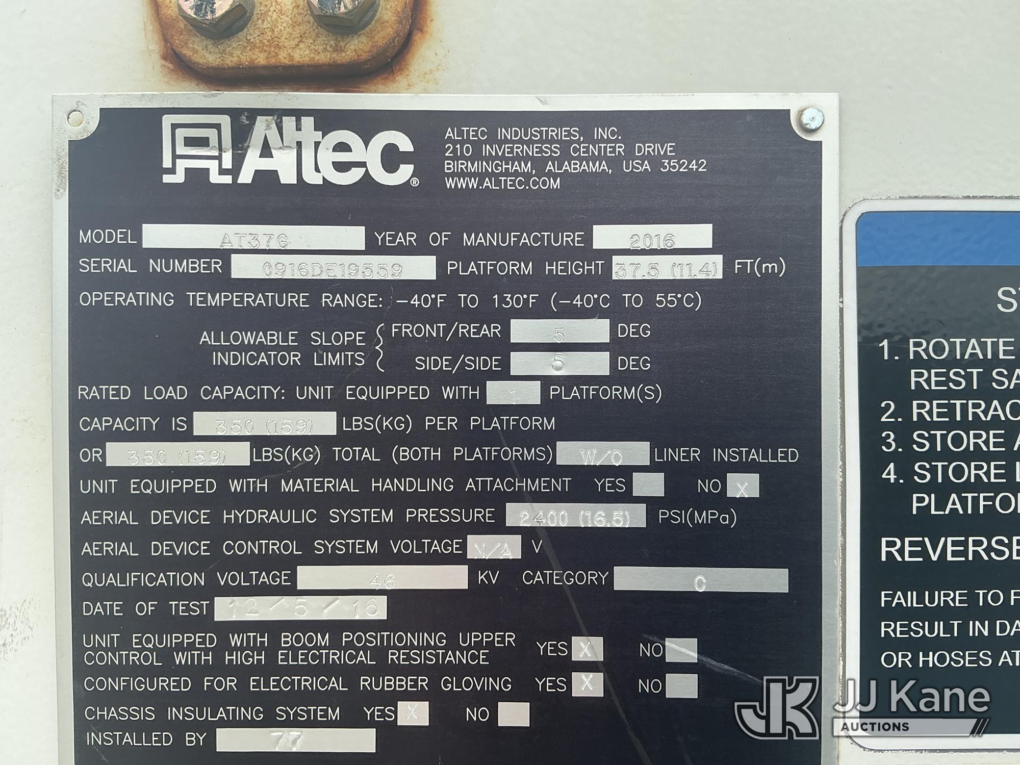 Altec AT37G, 42 ft, Articulating & Telescopic Bucket Truck s/n 0916DE19559, with single man bucket, mounted behind cab on 2016 Ford F-550 Service Truck, s/n 1FDUF5HT1GEC43806, 6.7L diesel, 4WD, Auto, A/C, (202,445 miles) (**Dealer Only** Runs & Moves, Engine Light On)(Seller States: Lower boom needs to be replaced – Requires ANSI Inspection by an approved OEM facility to confirm replacement requirements before the unit can return to service)) (Bidding Restricted to Licensed Vehicle Dealers Only), This is a Titled Item*