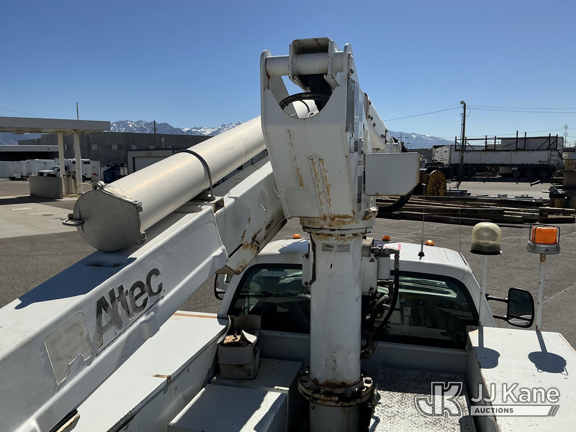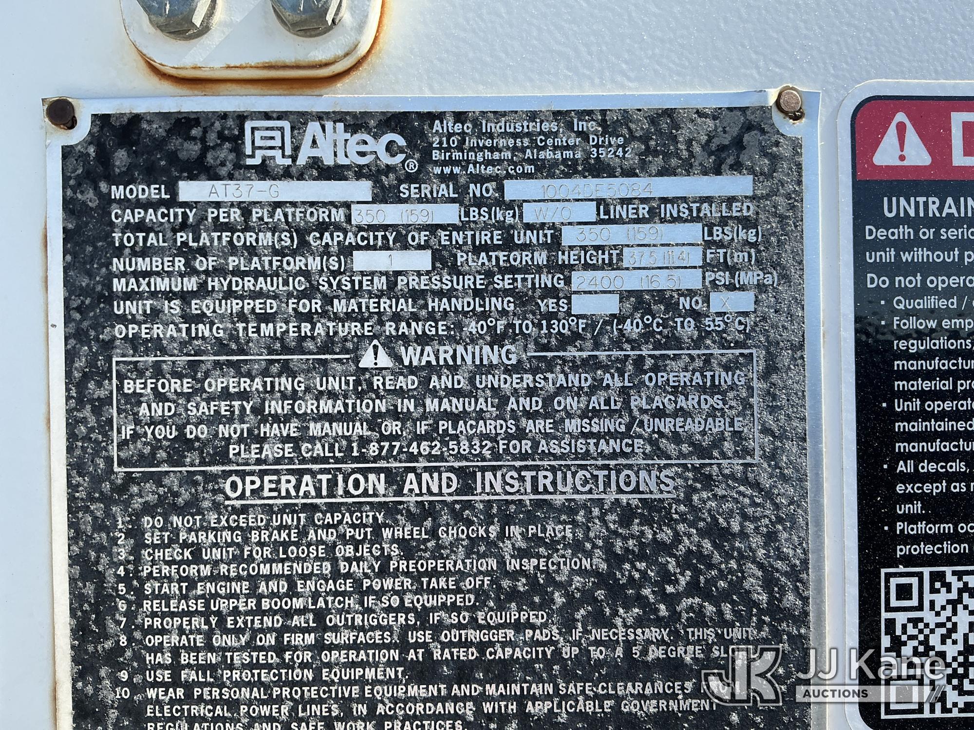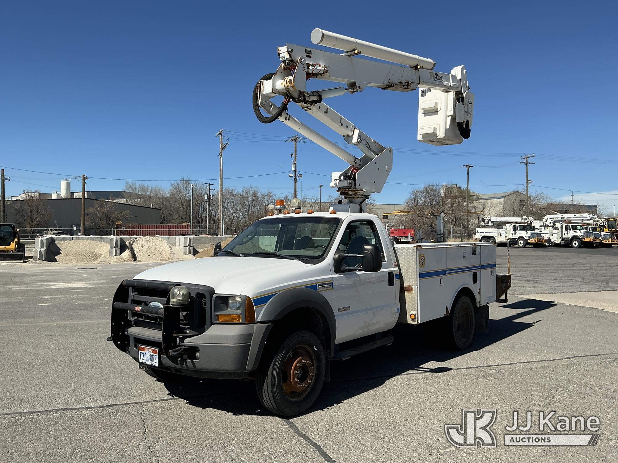 Altec AT37G, 42 ft, Articulating & Telescopic Bucket Truck s/n 1004DE5084, with single man bucket, mounted behind cab on 2005 Ford F-550 Service Truck, s/n 1FDAF57P95EB07136, 6.0L diesel, 4WD, Auto, (Exempt from Odometer Disclosure - Reads 64,271 miles) (Runs, Moves & Upper Operates) (Seller States: Fuel in coolant, exhaust manifolds leaking, turbo needs to be replaced, Boom and platform need some gelcoat repairs) This is a Titled Item*