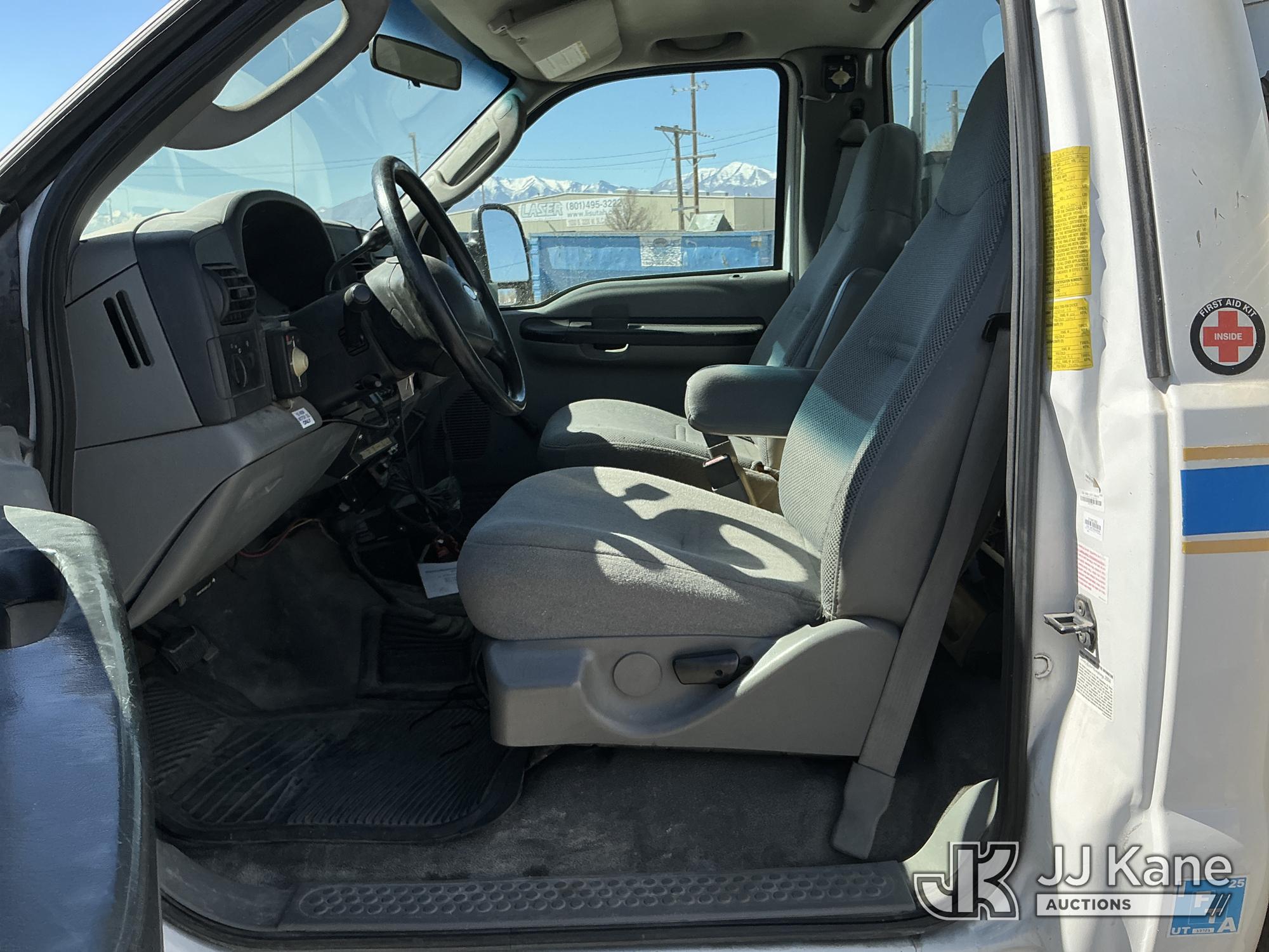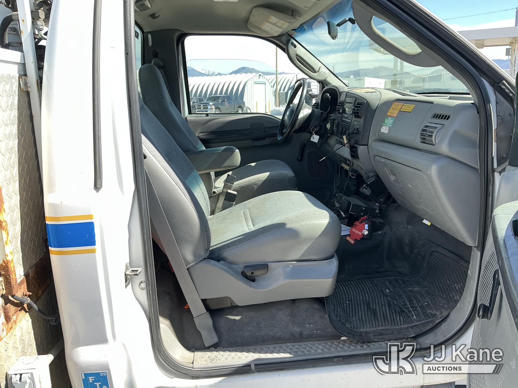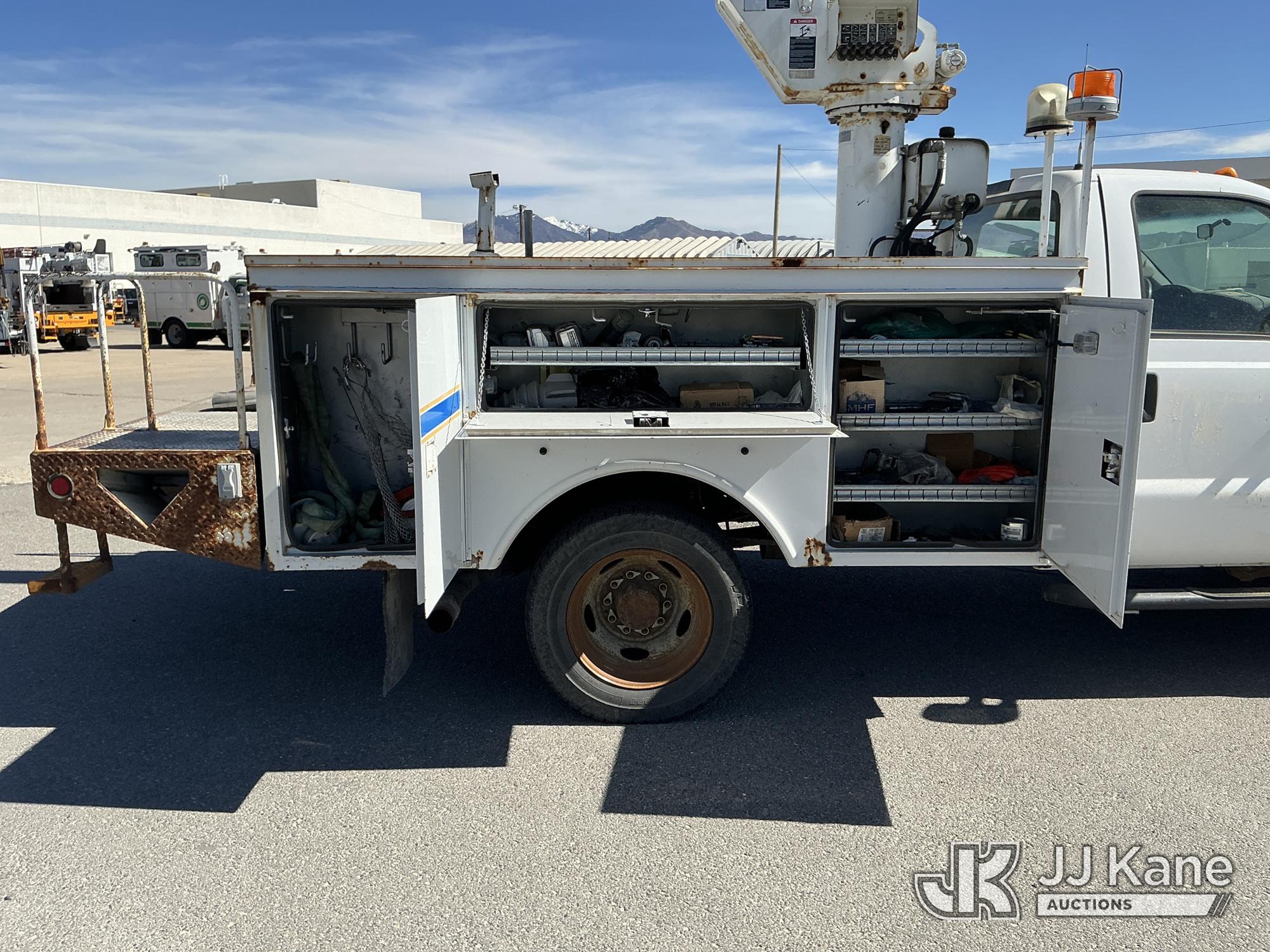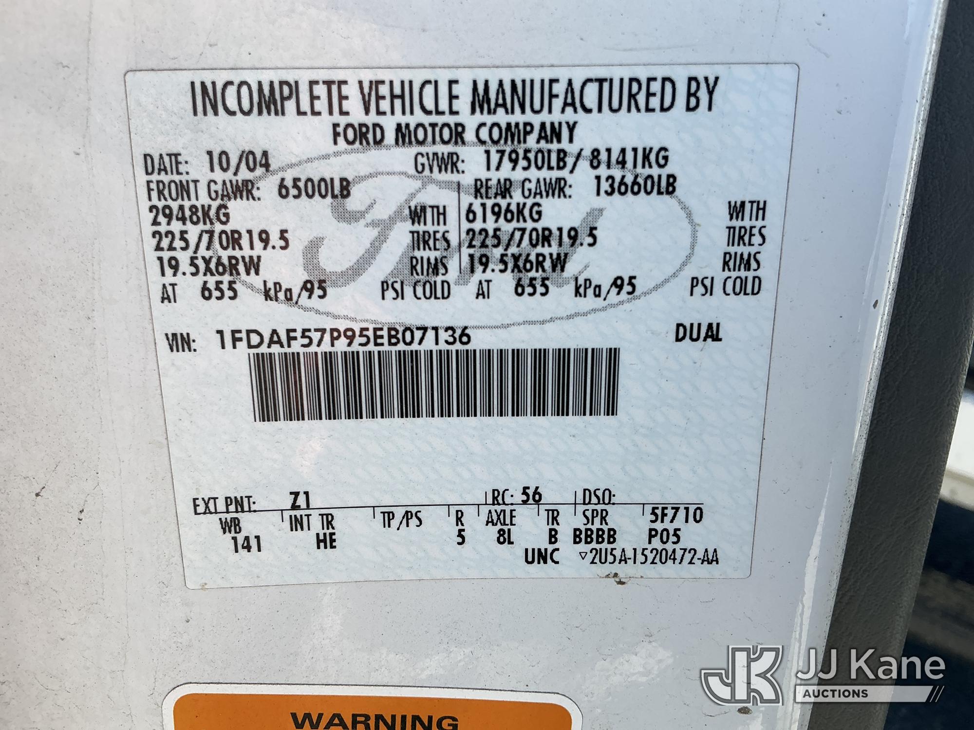 Altec AT37G, 42 ft, Articulating & Telescopic Bucket Truck s/n 1004DE5084, with single man bucket, mounted behind cab on 2005 Ford F-550 Service Truck, s/n 1FDAF57P95EB07136, 6.0L diesel, 4WD, Auto, (Exempt from Odometer Disclosure - Reads 64,271 miles) (Runs, Moves & Upper Operates) (Seller States: Fuel in coolant, exhaust manifolds leaking, turbo needs to be replaced, Boom and platform need some gelcoat repairs) This is a Titled Item*