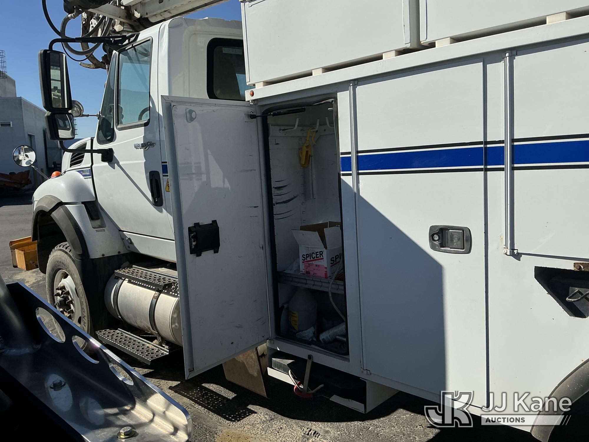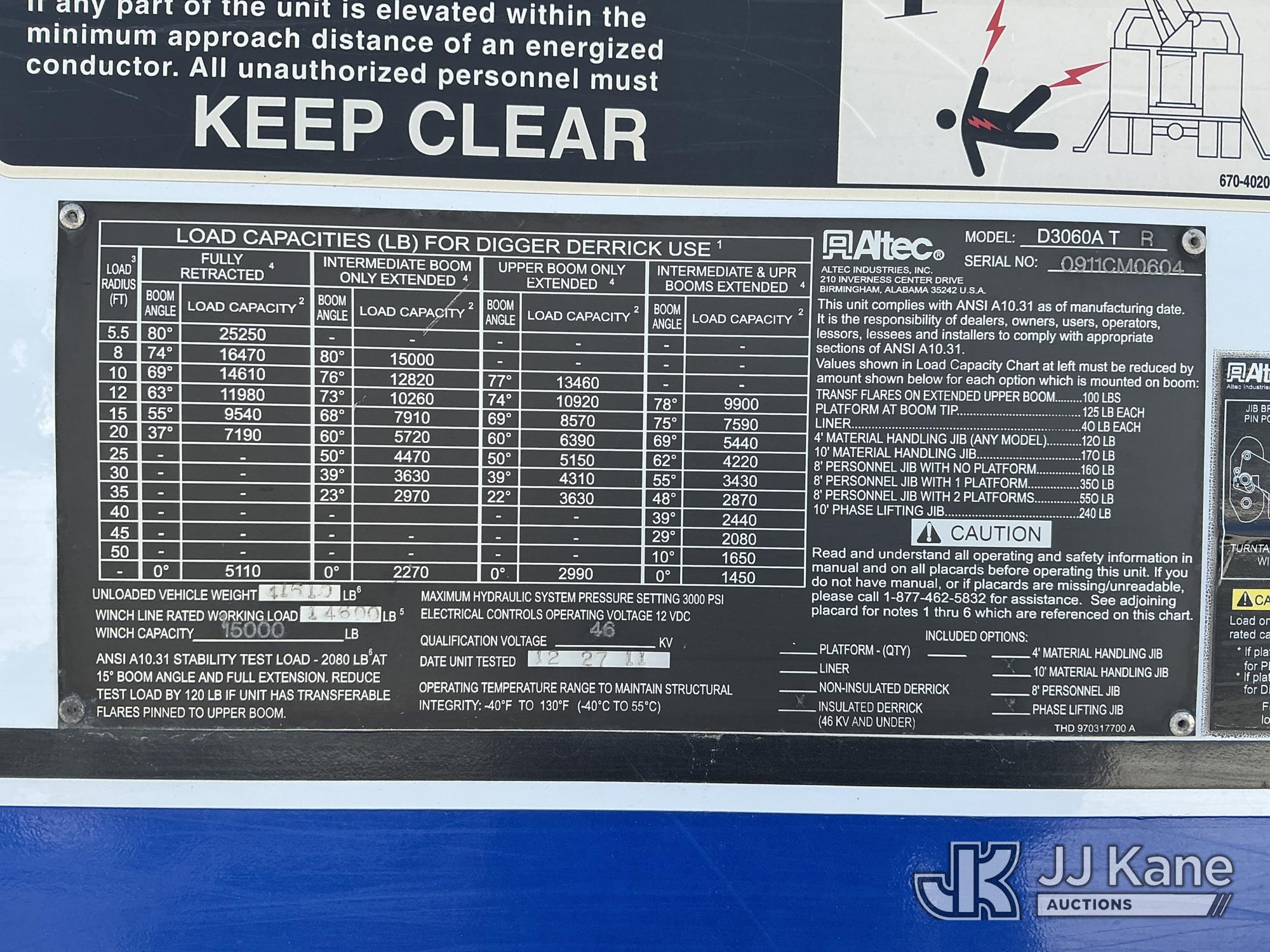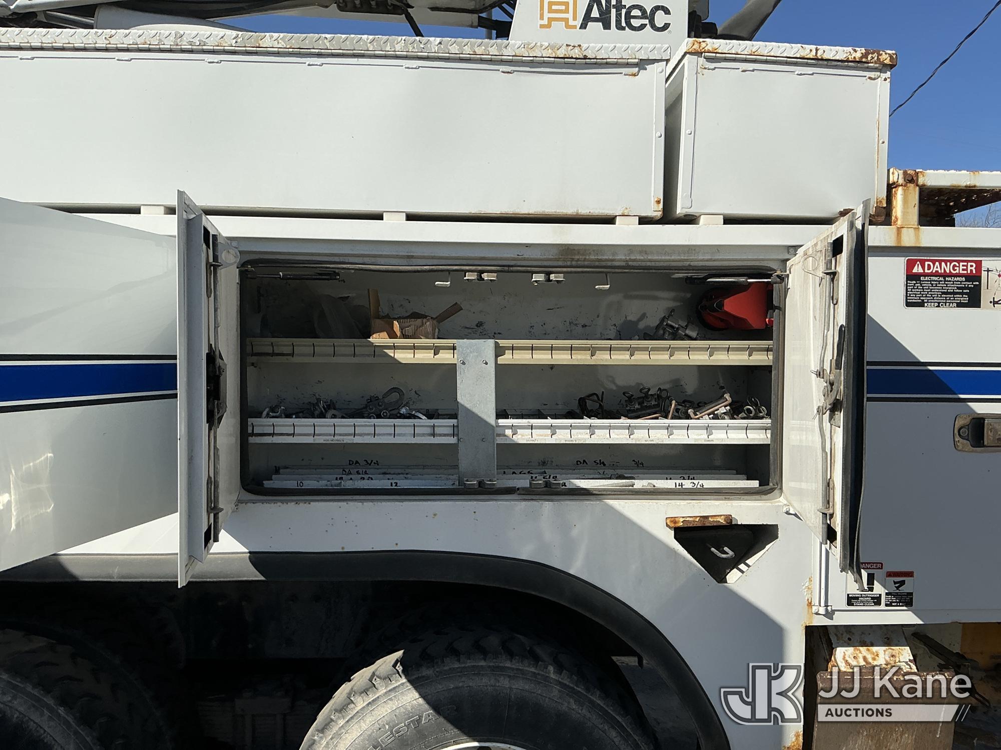 Altec D3060A-TR, 25,250 Lb Digger Derrick s/n 0911CM0604, with 60ft sheave height, 2spd digger, pole guides, heel winch, riding console, rear mounted on 2012 International 7500 Utility Truck, MaxxForce 9.3L diesel, 10-spd, A/C, with front winch, extension cord reel, inverter, True Mileage Unknown (Not Running, Condition Unknown, Dead Batteries) (Seller States: Runs, Moves, Operates. Engine Light On, ABS Light On, Boom Tip Damaged, Leaks) This is a Titled Item*