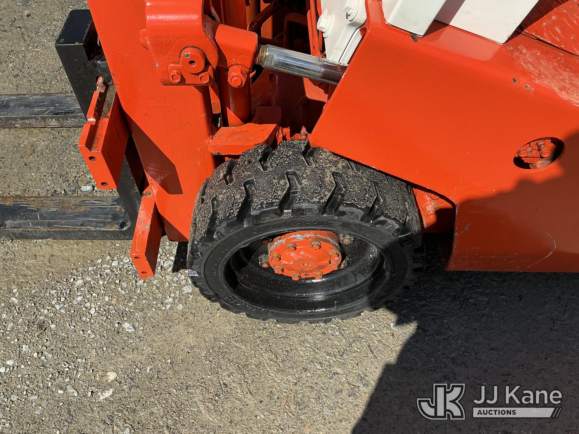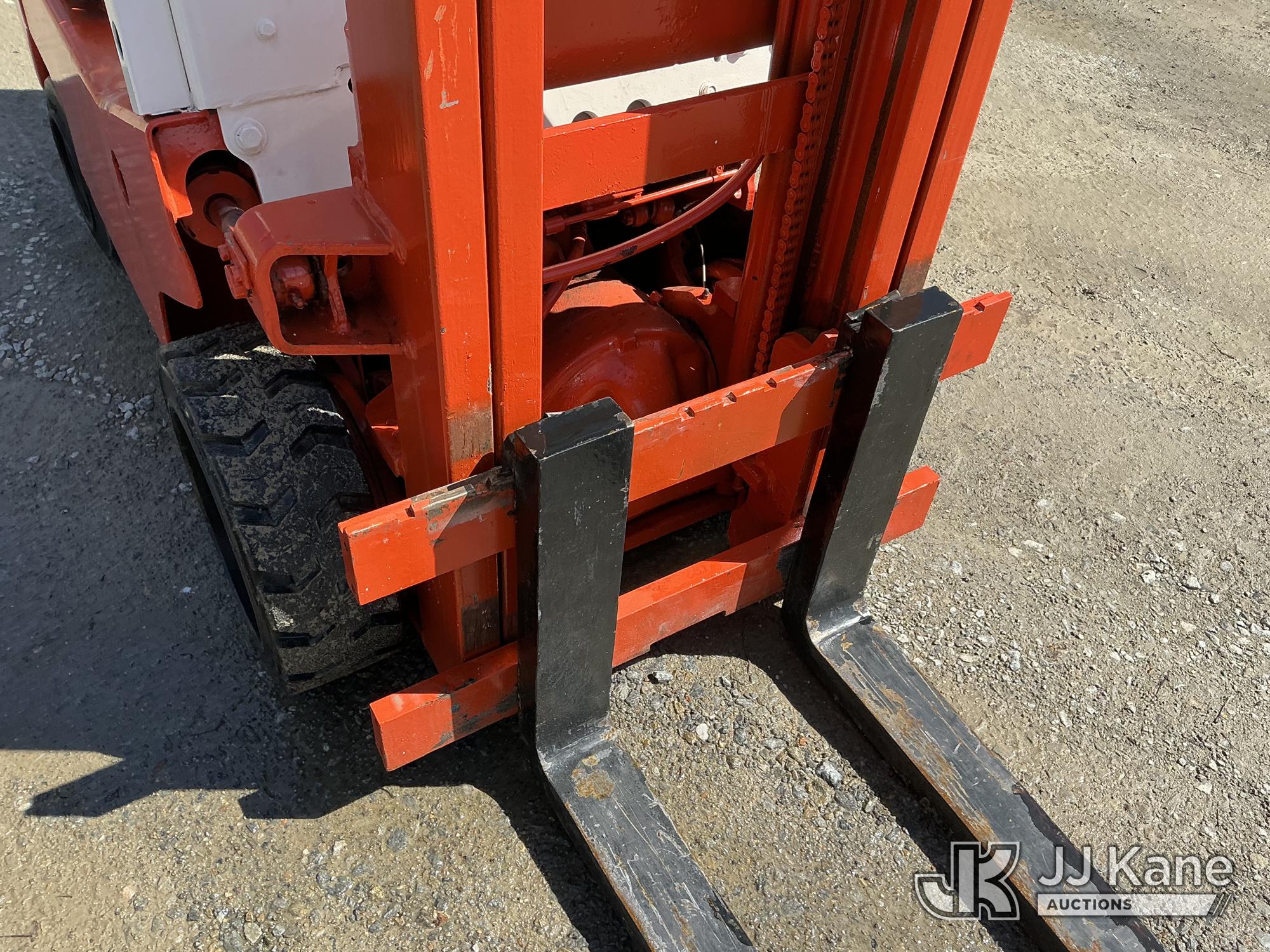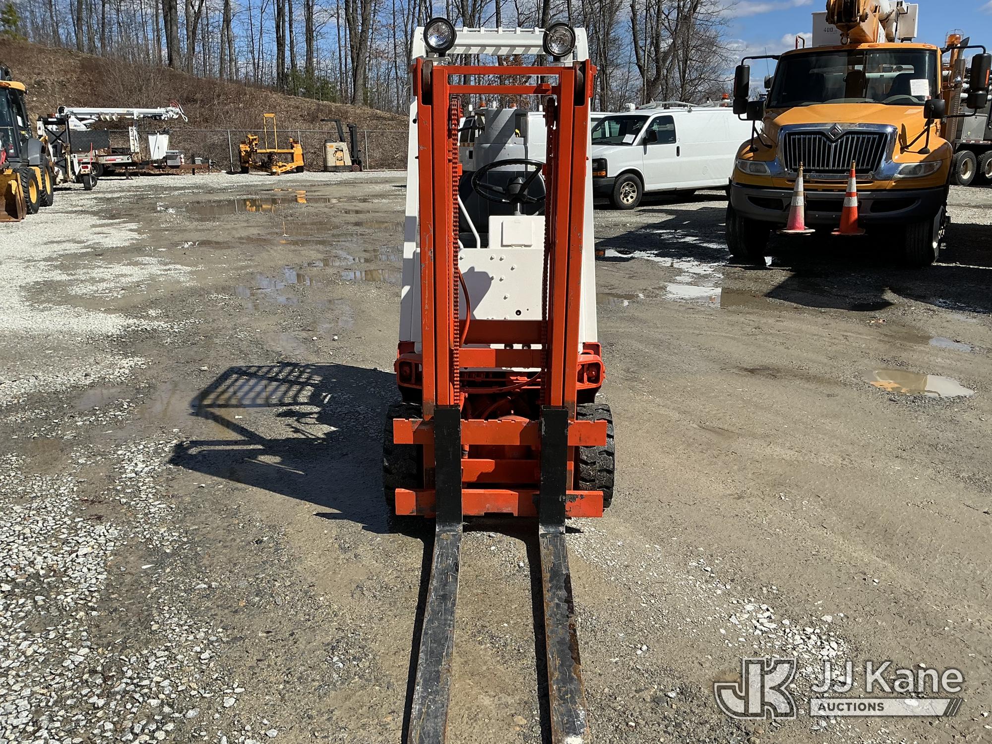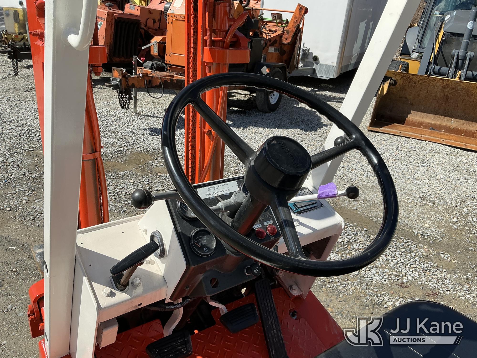 Nissan CF01A14V 2700 Solid Tired Forklift, s/n CF01-023195, Nissan LPG, Shuttle, with 2700 lb lift capacity, 106 max lift height & 4 ft. forks, (Runs, Moves & Operates) (LPG Tank Not Included In Sale) (Reads 5,107 hours)*