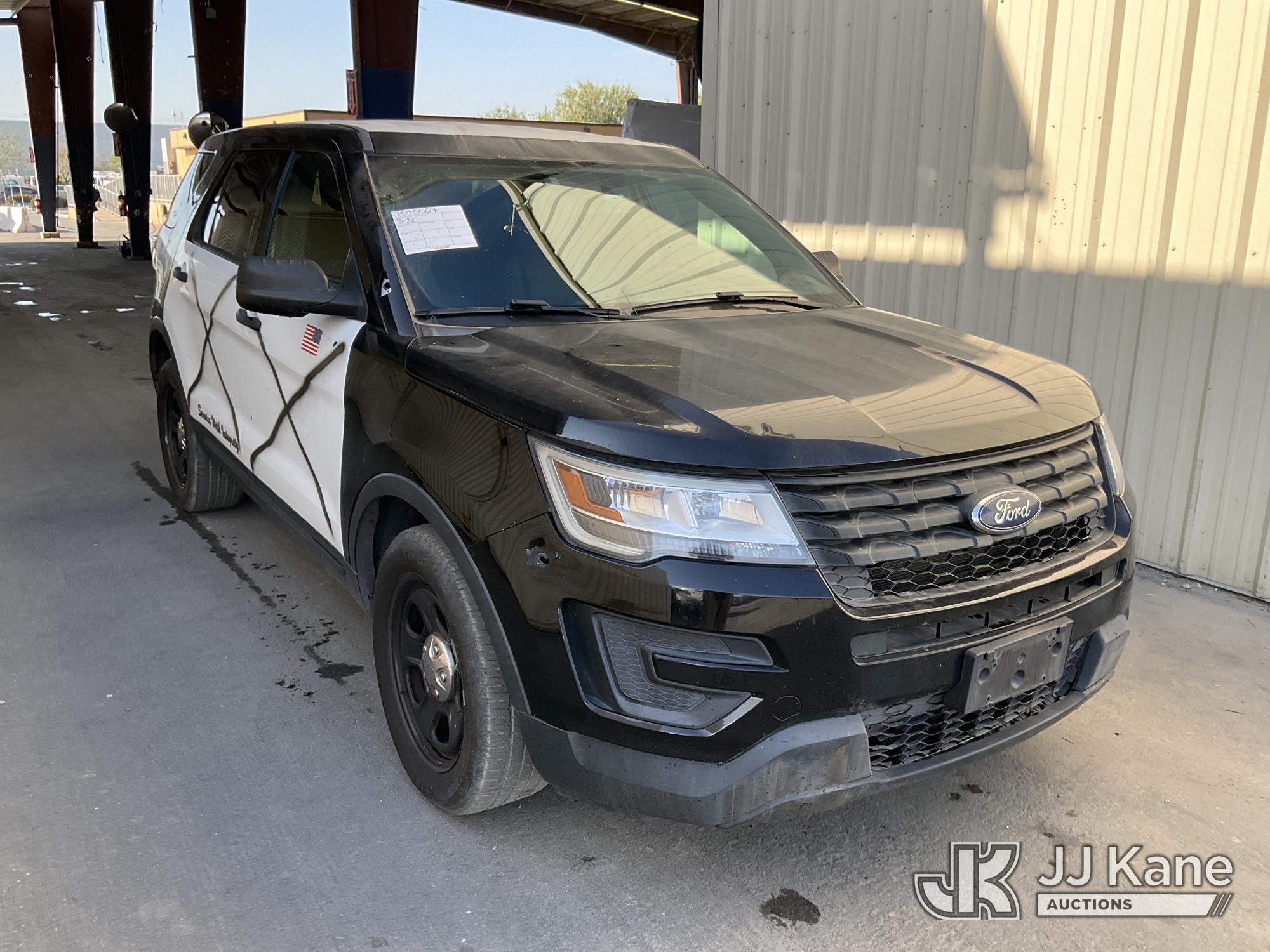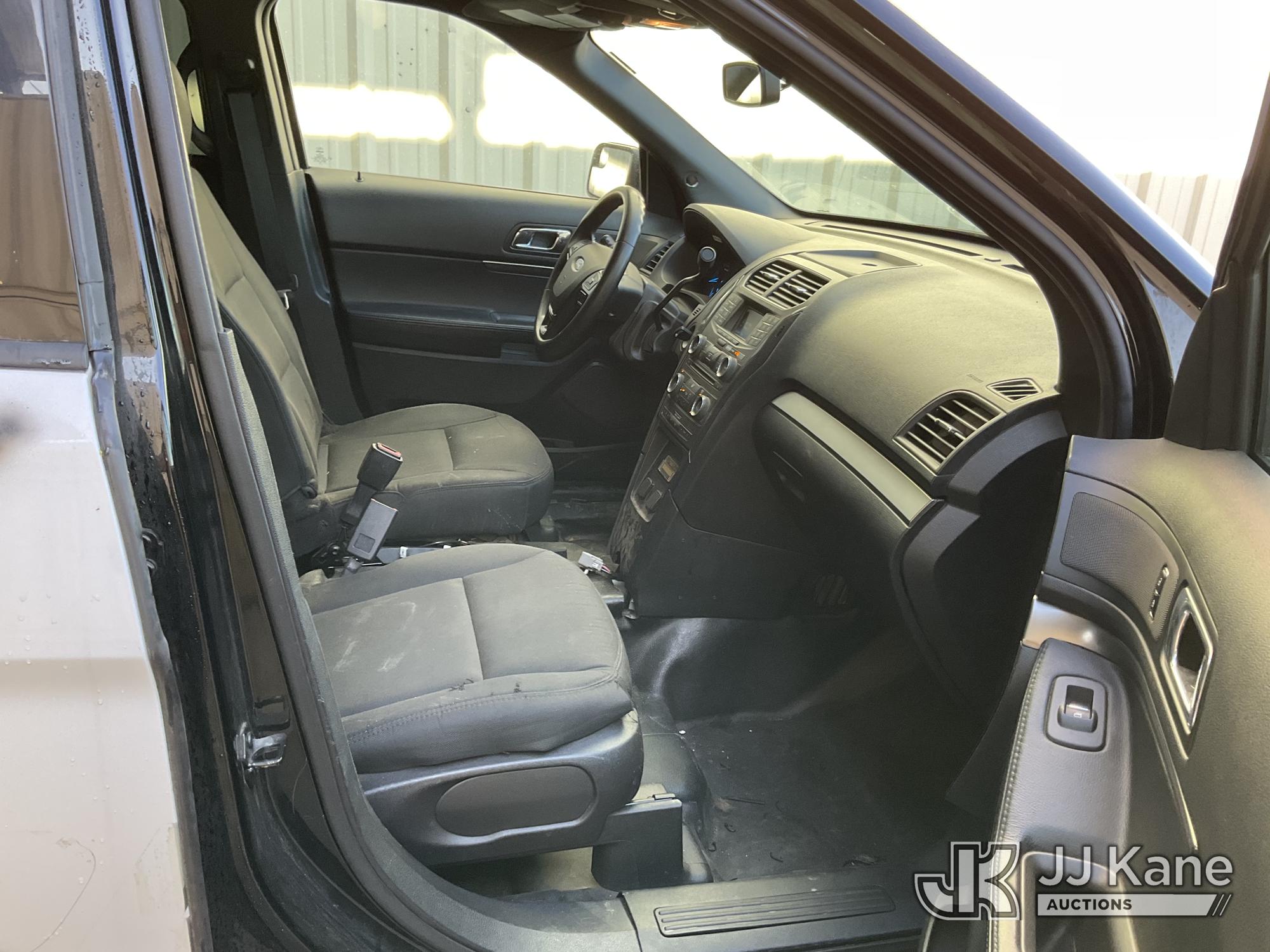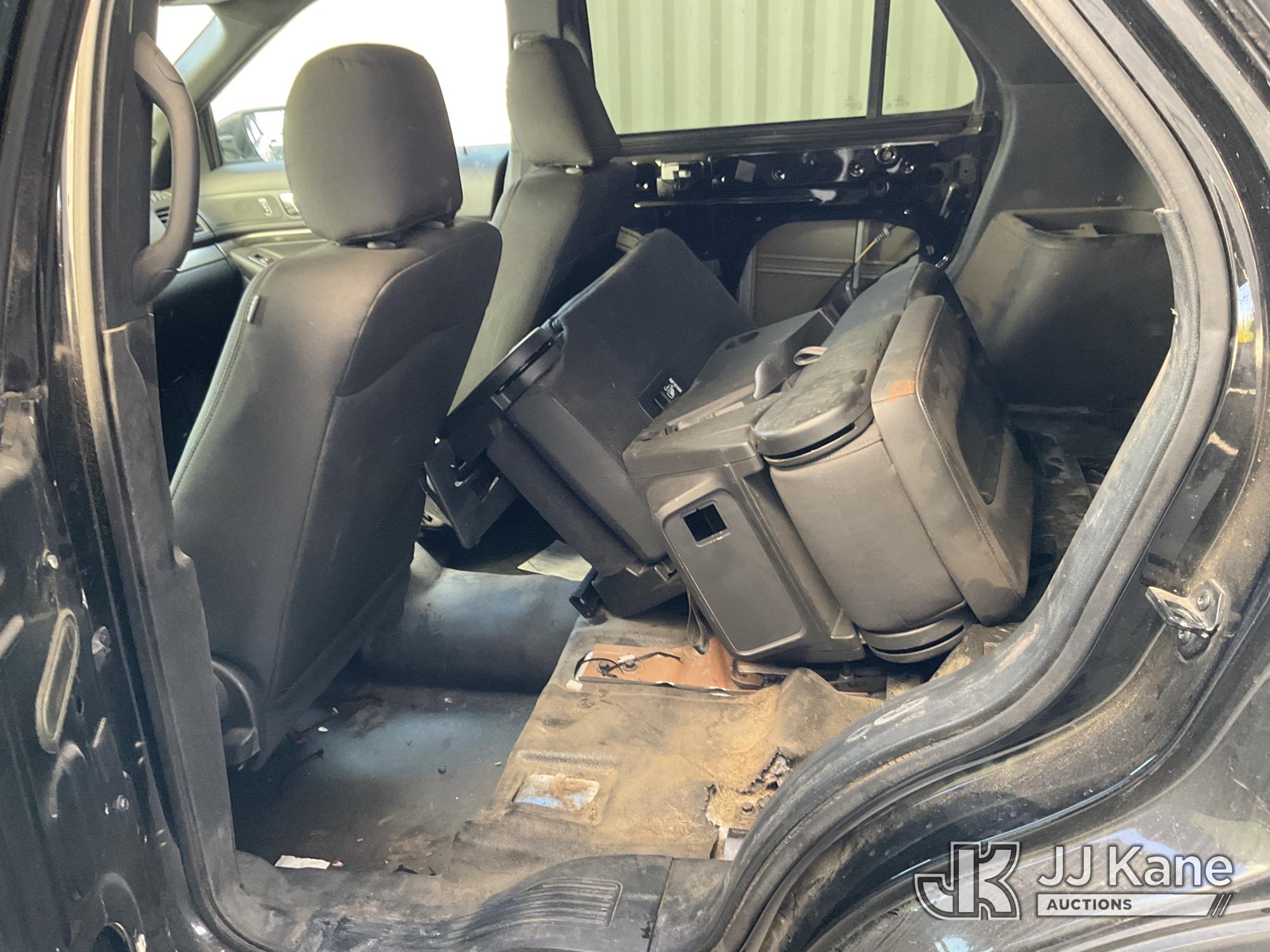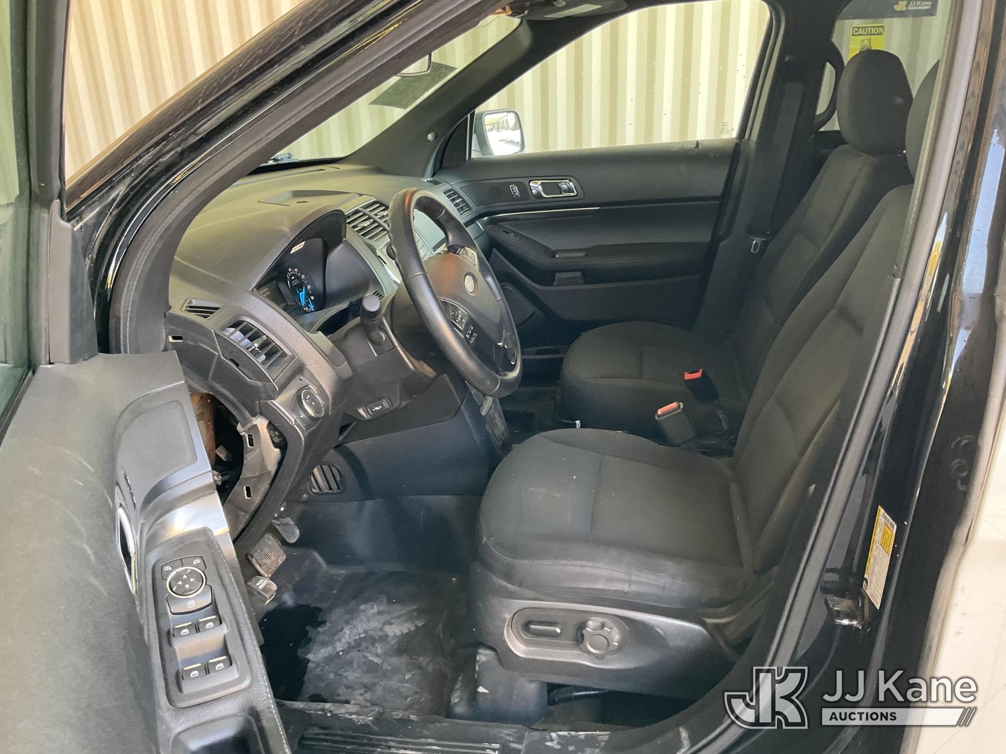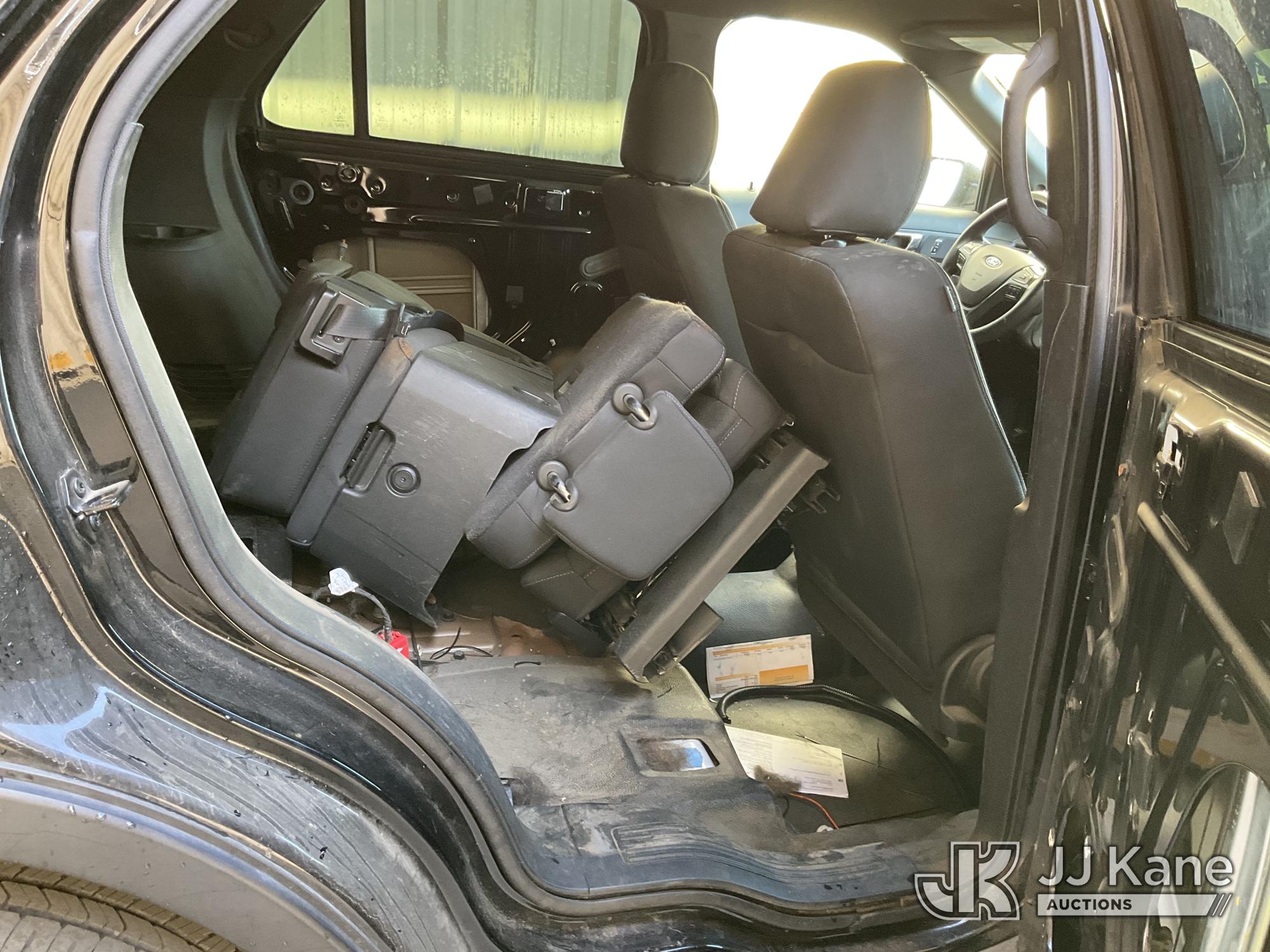 2018 Ford Explorer Police 4WD 4-Door Sport Utility Vehicle, s/n 1FM5K8AR6JGB12494, 3.7L V6 DOHC 24V GAS, 6-Speed Automatic, A/C, (87,068 miles) (Runs & Moves, Interior Stripped Of Parts, Open Recall, Remedy Not Yet Available, Vehicle is subject to an open NHTSA safety recall related to IN SOME OF THE AFFECTED VEHICLES, IT MAY BE POSSIBLE THAT SOME OF THE EXTERIOR A-PILLAR APPLIQUE TRIM CLIP ATTACHMENTS ARE NOT PROPERLY ENGAGED DUE TO IMPROPER ASSEMBLY OR REPAIR. IF THIS OCCURS, THE A-PILLAR APPLIQUE TRIM, WHICH BORDERS THE RIGHT AND LEFT SIDE OF THE WINDSHIELD, MAY BE LOOSE, MISSING OR BECOME DETACHED., but a remedy for this recall does not appear to be available. Dealer is not authorized to perform the recall repair. Periodically contact the manufacturer or check the VIN on the NHTSA website at www.safercar.govivin to determine whether a remedy for the recall is available. As soon as a remedy is available, arrange to have the recall remedied with a dealer from that make of car to make such repair.) (Bidding Restricted to Licensed Vehicle Dealers Only), This is a Titled Item*