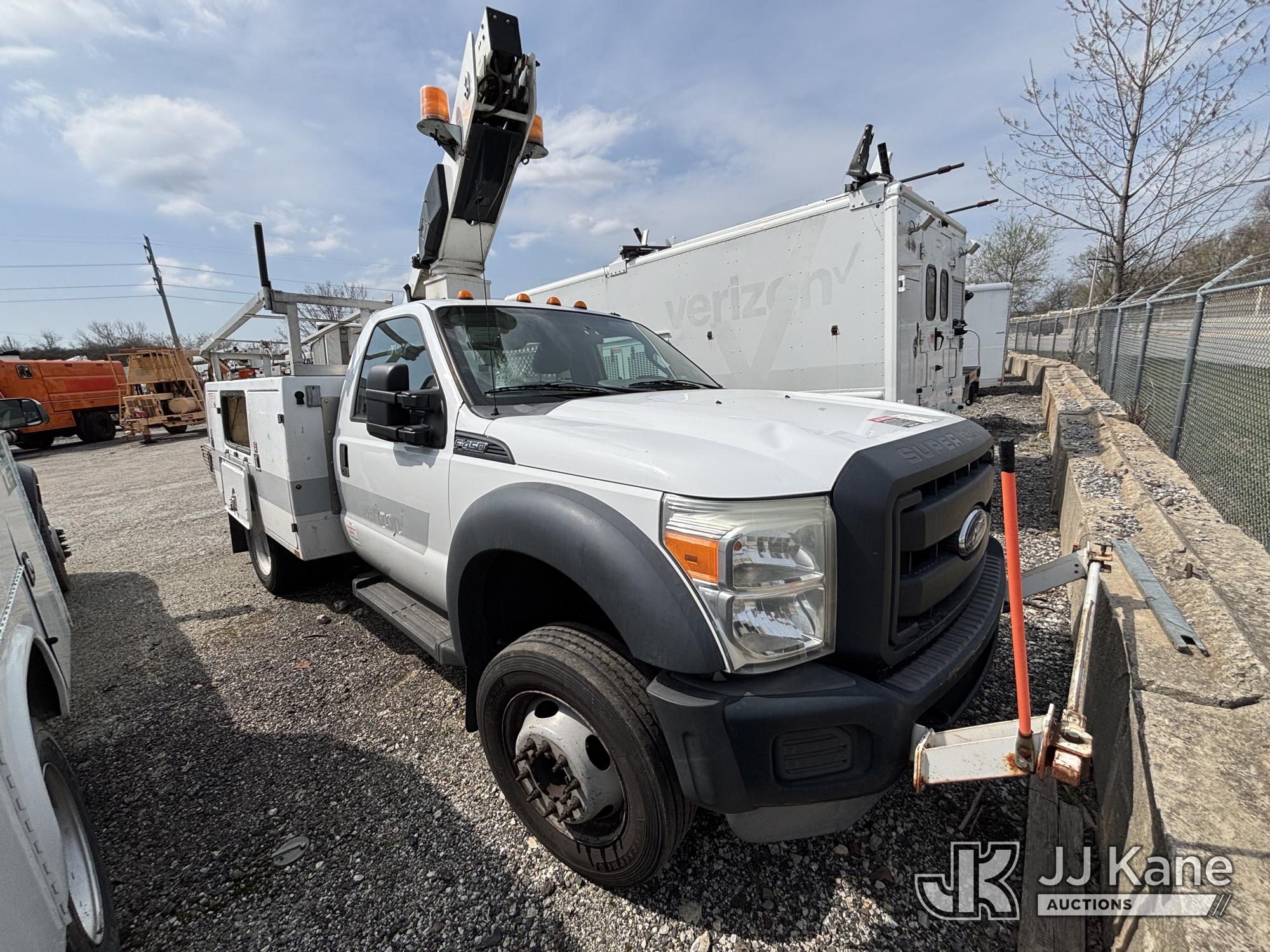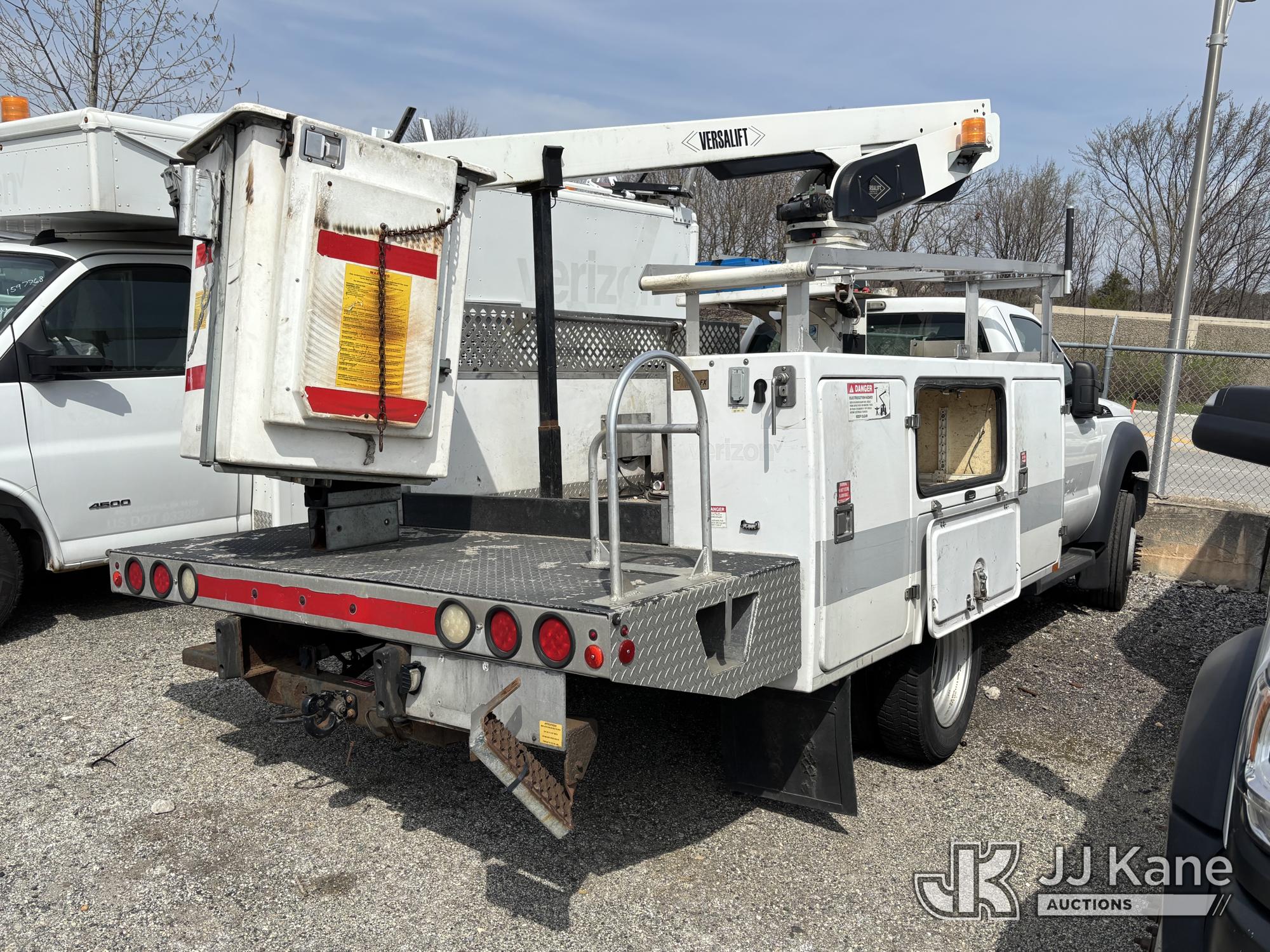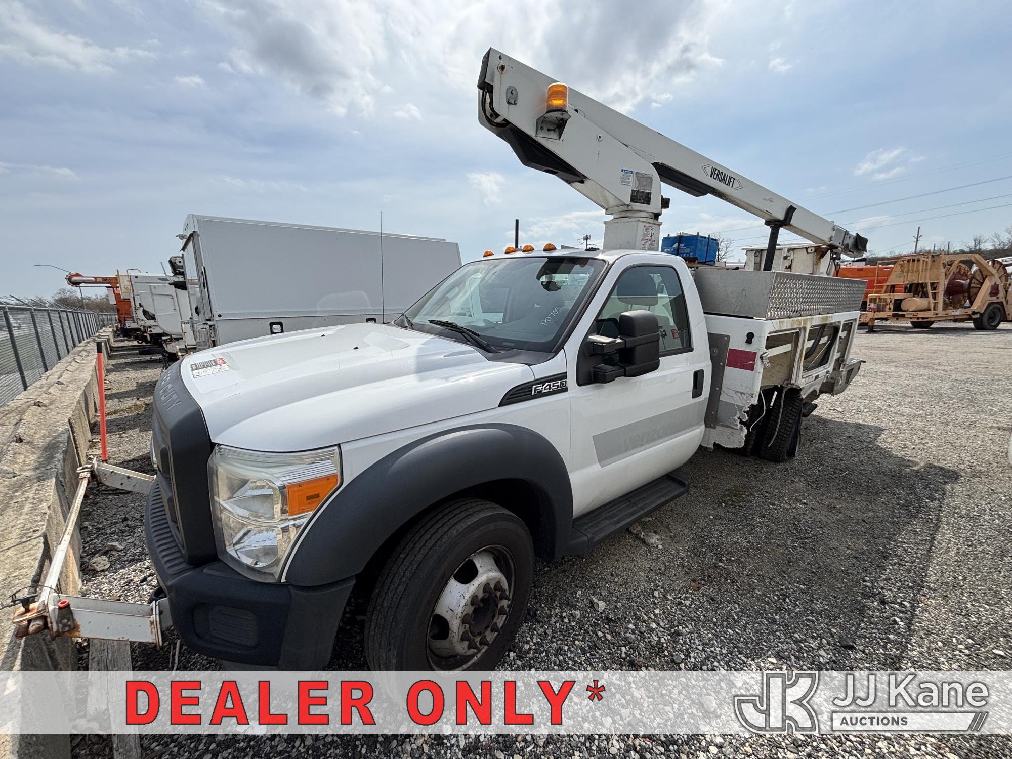 Versalift TEL29NE03, 34 ft, Telescopic Non-Insulated Bucket Truck s/n AG13113, with Single-Man Bucket, mounted behind cab on 2014 Ford F450 2WD Service Truck, 10-cyl gas, Auto, A/C, (177,132 miles) (**Dealer Only** Seller States: Accident- total loss, Frame Damage, Not Running Condition Unknown, Upper Condition Unknown, Must Tow, Buyer Must Load) (**Note** This item has been removed from service due to the listed safety repairs that were not completed. The safety items below must be completed by an approved upper OEM facility before the unit can return to service: UNIT WRECKED; REQUIRES MAJOR UNIT DAMAGE INSPECTION; COMPLETE ANY REQUIRED TESTING AND REPAIRS AFTER INSPECTIONS ARE COMPLETED.) (Bidding Restricted to Licensed Vehicle Dealers Only), This is a Titled Item*