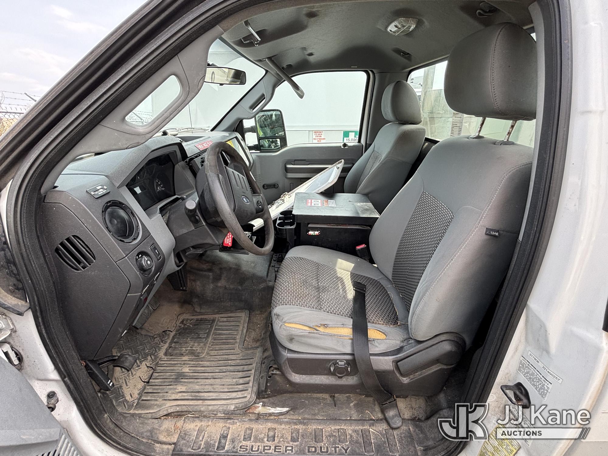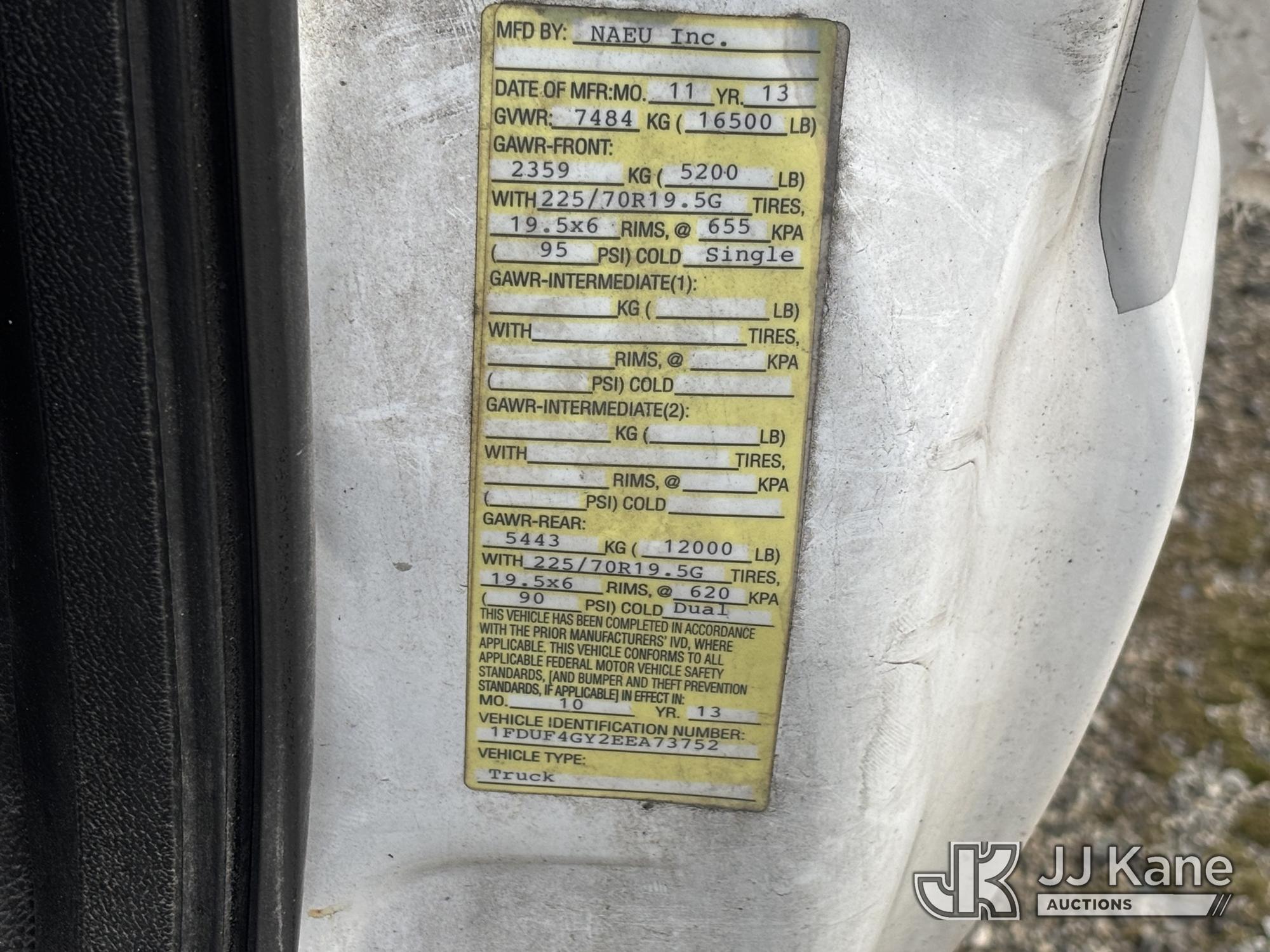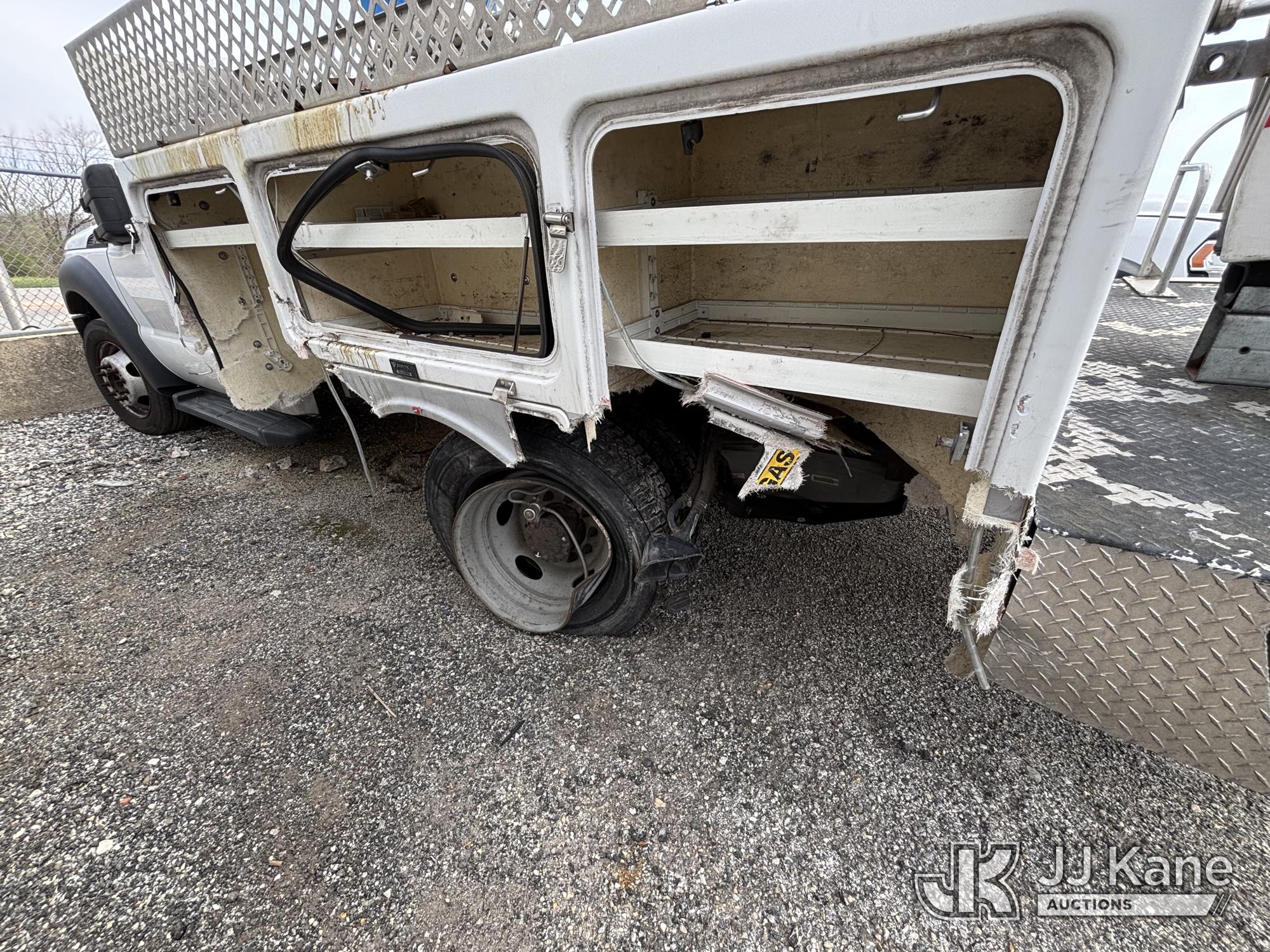 Versalift TEL29NE03, 34 ft, Telescopic Non-Insulated Bucket Truck s/n AG13113, with Single-Man Bucket, mounted behind cab on 2014 Ford F450 2WD Service Truck, 10-cyl gas, Auto, A/C, (177,132 miles) (**Dealer Only** Seller States: Accident- total loss, Frame Damage, Not Running Condition Unknown, Upper Condition Unknown, Must Tow, Buyer Must Load) (**Note** This item has been removed from service due to the listed safety repairs that were not completed. The safety items below must be completed by an approved upper OEM facility before the unit can return to service: UNIT WRECKED; REQUIRES MAJOR UNIT DAMAGE INSPECTION; COMPLETE ANY REQUIRED TESTING AND REPAIRS AFTER INSPECTIONS ARE COMPLETED.) (Bidding Restricted to Licensed Vehicle Dealers Only), This is a Titled Item*