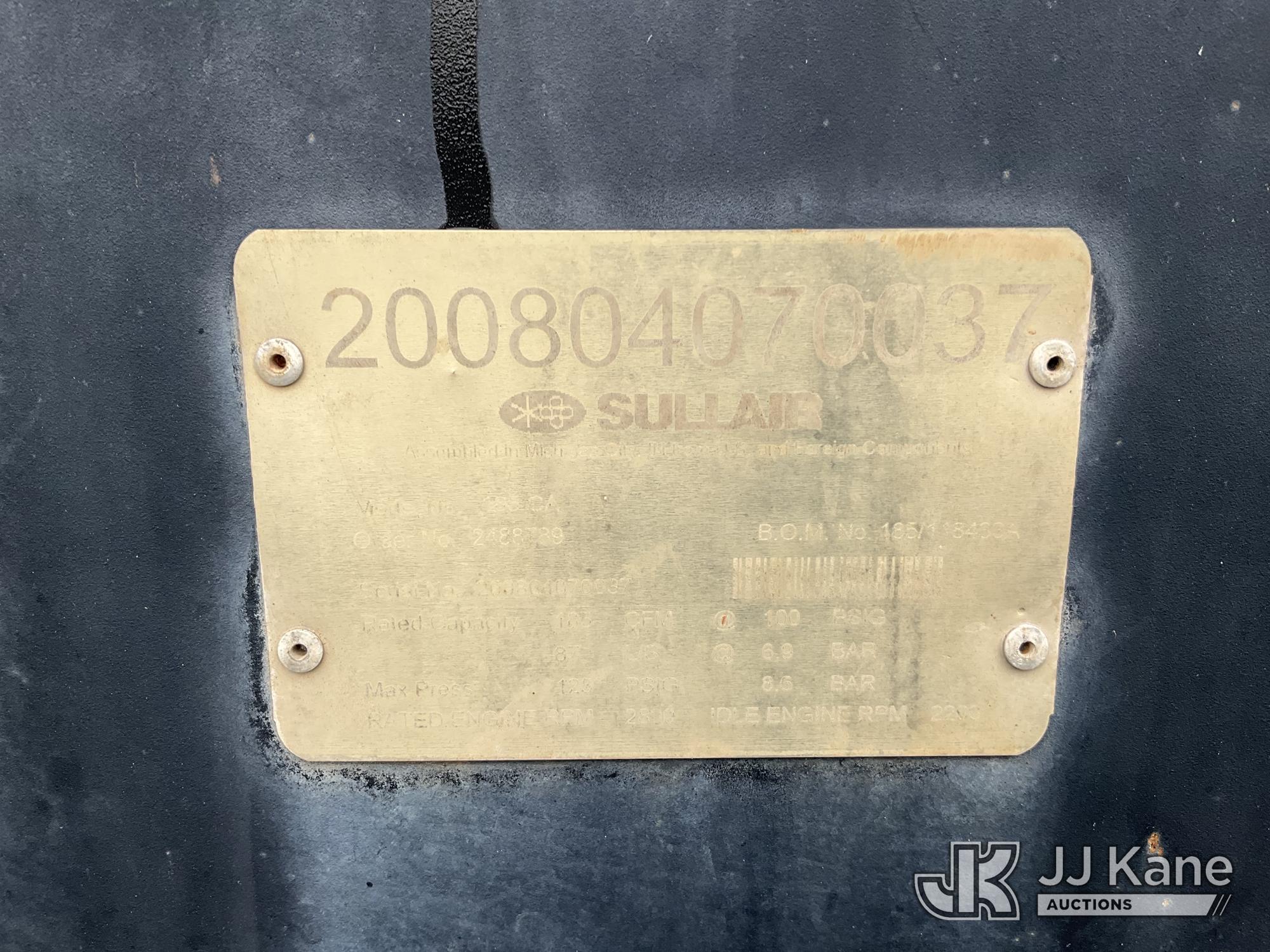 2008 Sullair 185DPQ-CAT Towable Air Compressor, s/n 200804070037, diesel, (No Title - Registration Only) (Not Running, Condition Unknown)(FL Residents Purchasing Titled Items – tax, title & registration fees will be collected at the maximum rate of $400.00 under 25,999 and $800.00 for Over 26,000 and $250.00 trailers – Proof of insurance is mandatory; Out of State Residents Purchasing Title Items – tax will be collected based upon your state rate.) (Reads 1,633 hours)*