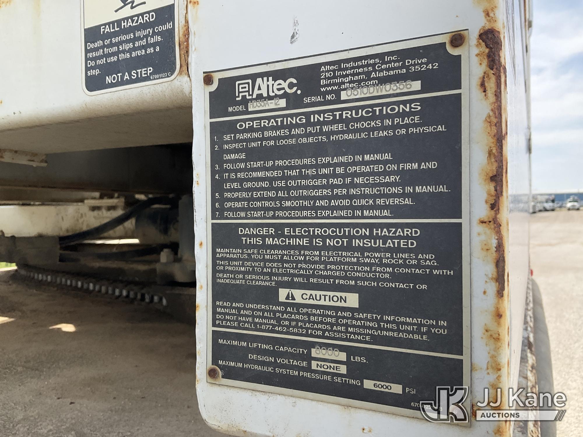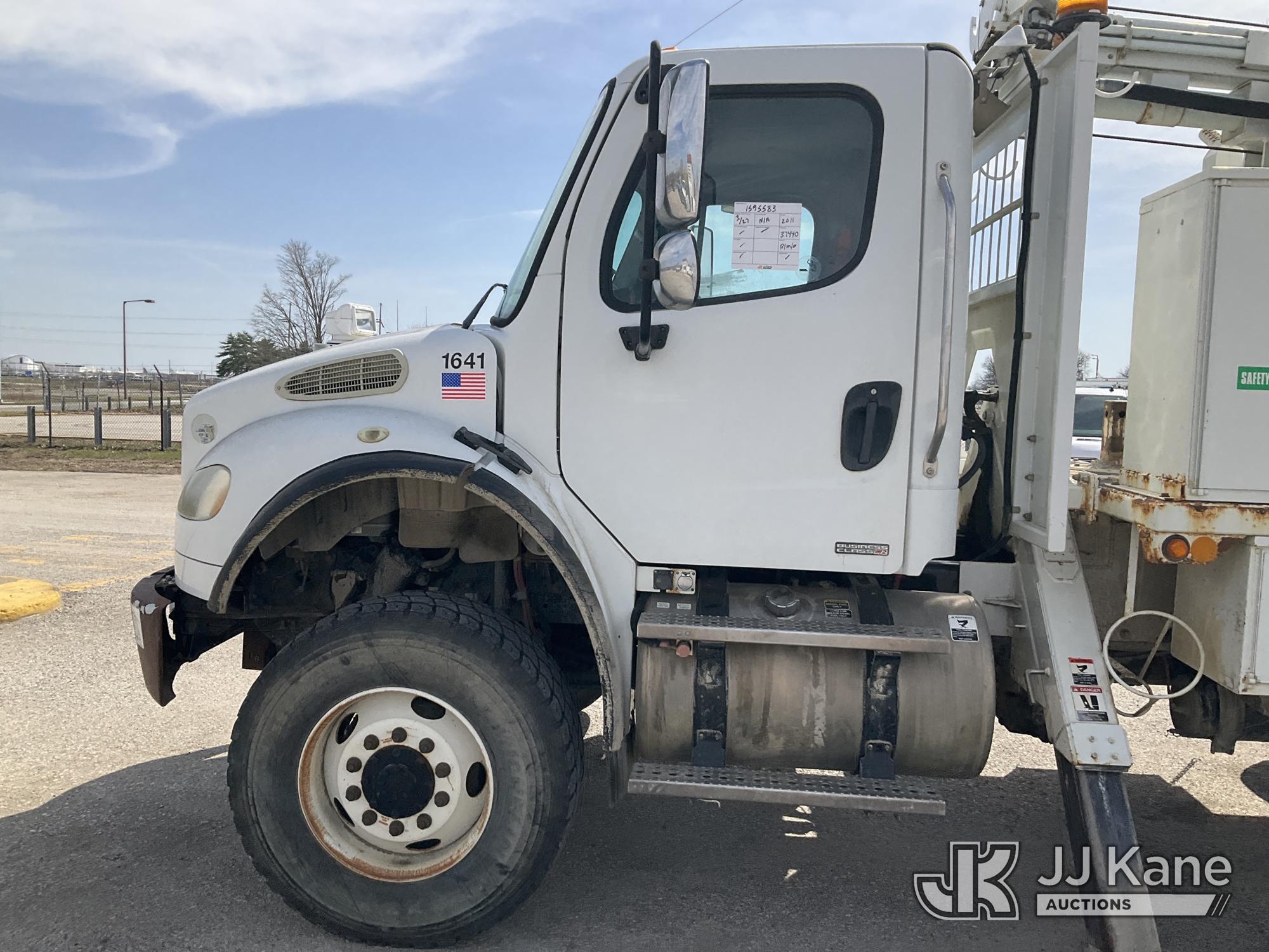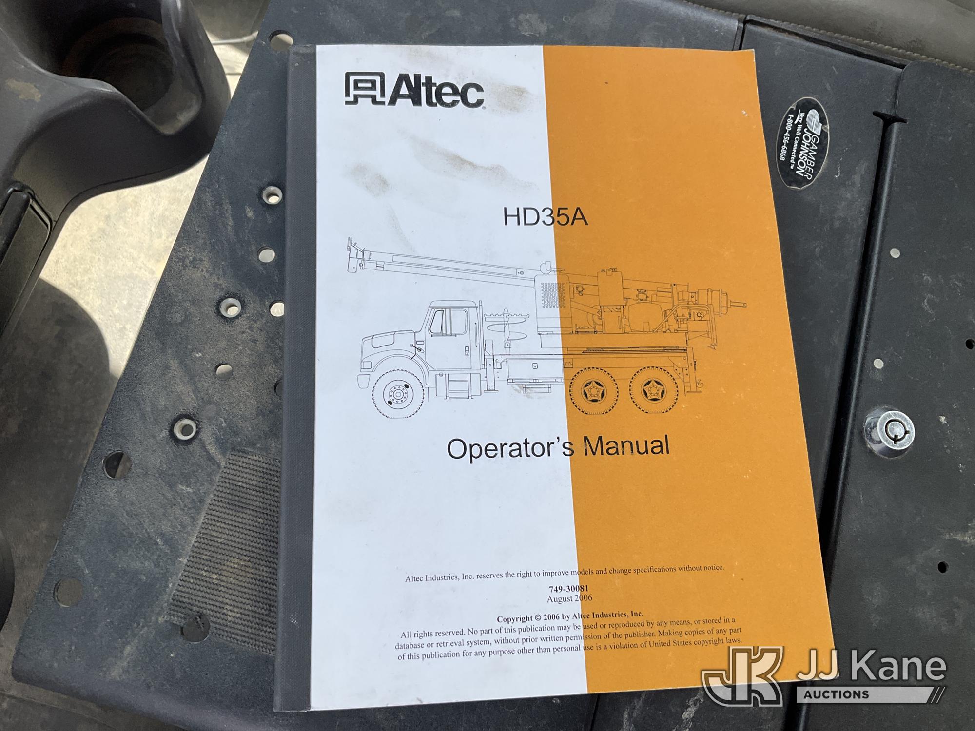 Altec HD35A-12, Pressure Digger s/n 0510DW03556, John Deere diesel, with 3.5 in. x 12 ft. Kelly Bar, rotating & extendable table, telescopic pole setter, pole grabs, winch, riding console & 4 hydraulic outriggers, center mounted on 2011 Freightliner M2 106 Medium Duty T/A Utility Truck, Cummins ICS Diesel 6X6, Auto, A/C, (37,441 miles) (Runs, Moves & Upper Operates) (Broken Latch On Passenger Side Hood) (Reads 2,184 hours) This is a Titled Item*