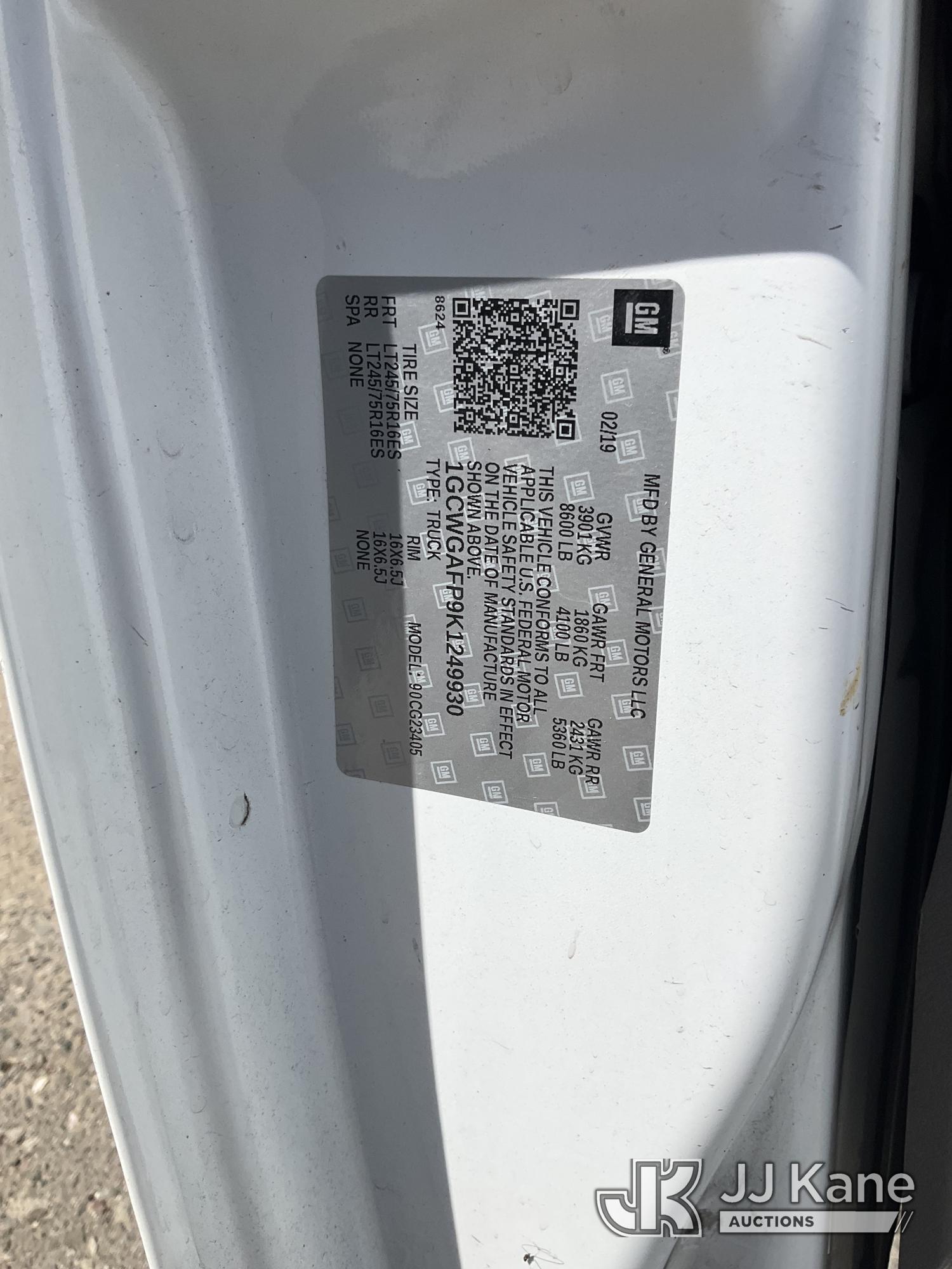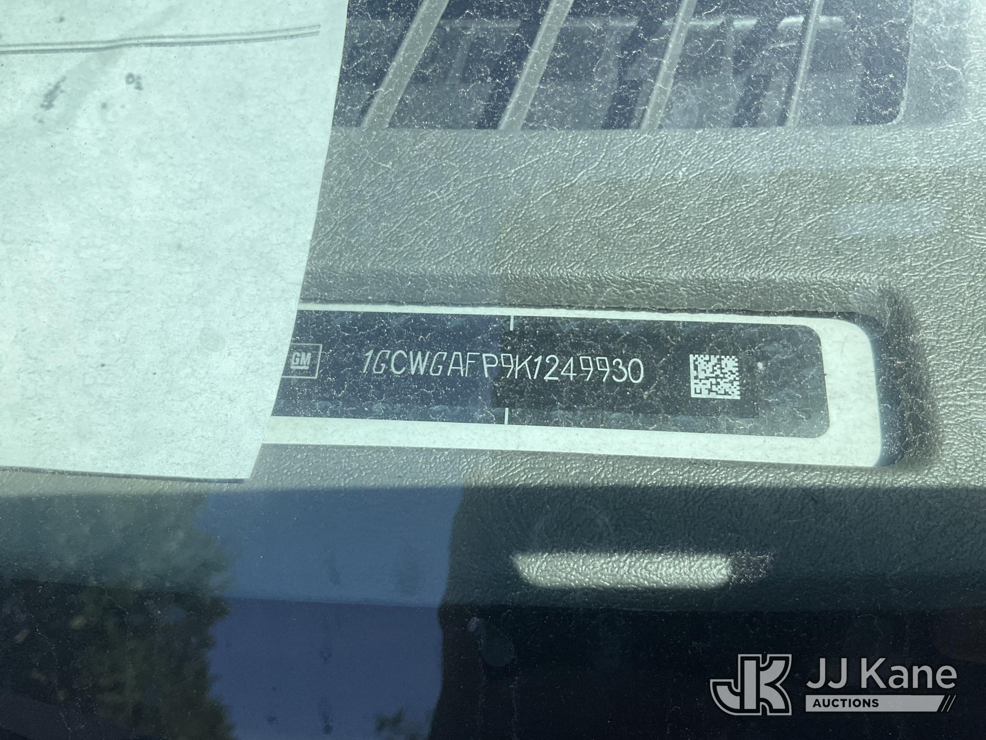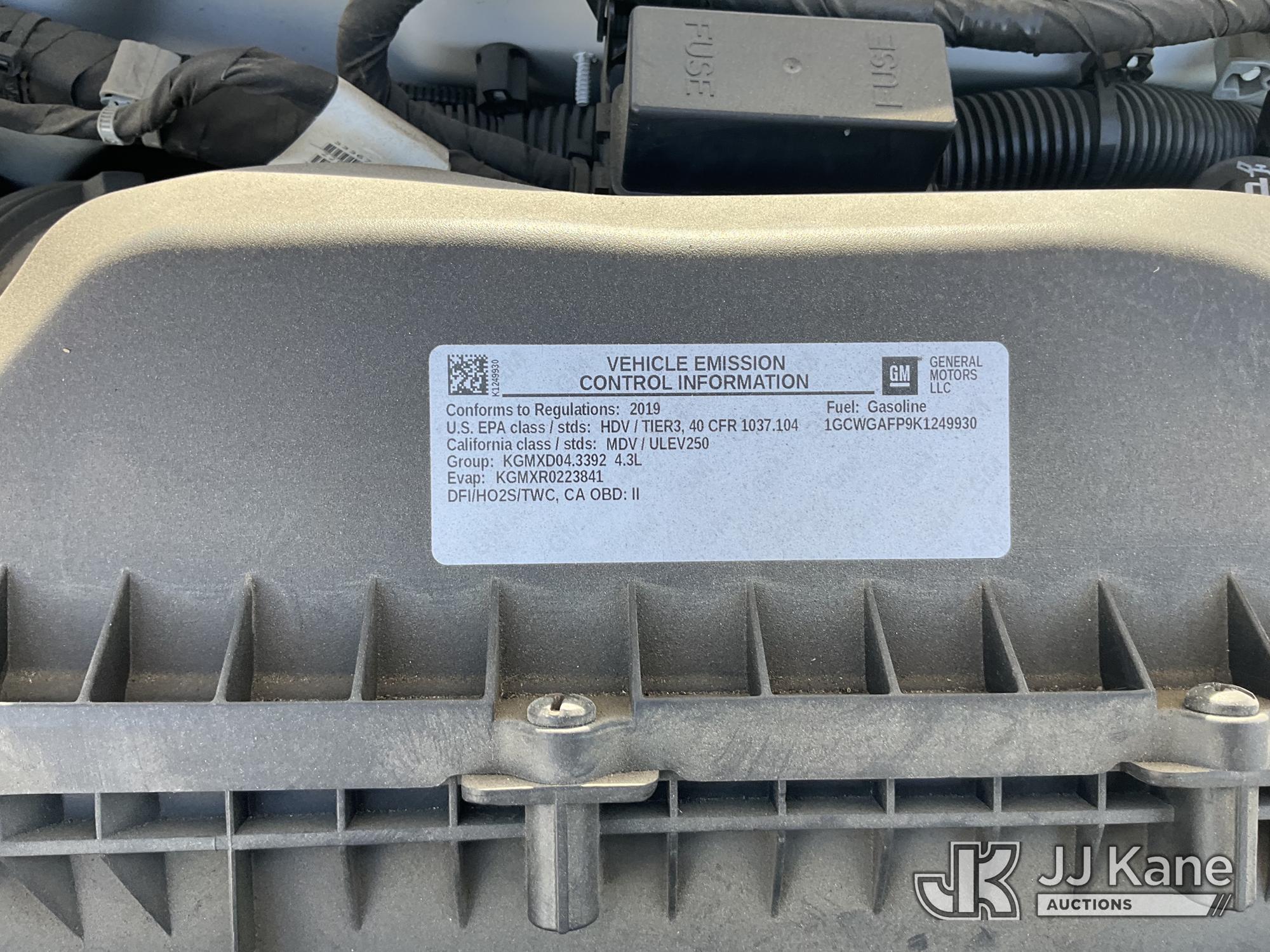 2019 Chevrolet Express 2500 Cargo Van, s/n 1GCWGAFP9K1249930, 4.3L V6 RWD, GAS, 6-Speed Automatic, A/C, with Roof rack, (67,571 miles) (Runs & Moves)(Service Airbag Light Comes On Arbitrarily ) (Bidding Restricted to Licensed Vehicle Dealers Only), This is a Titled Item*