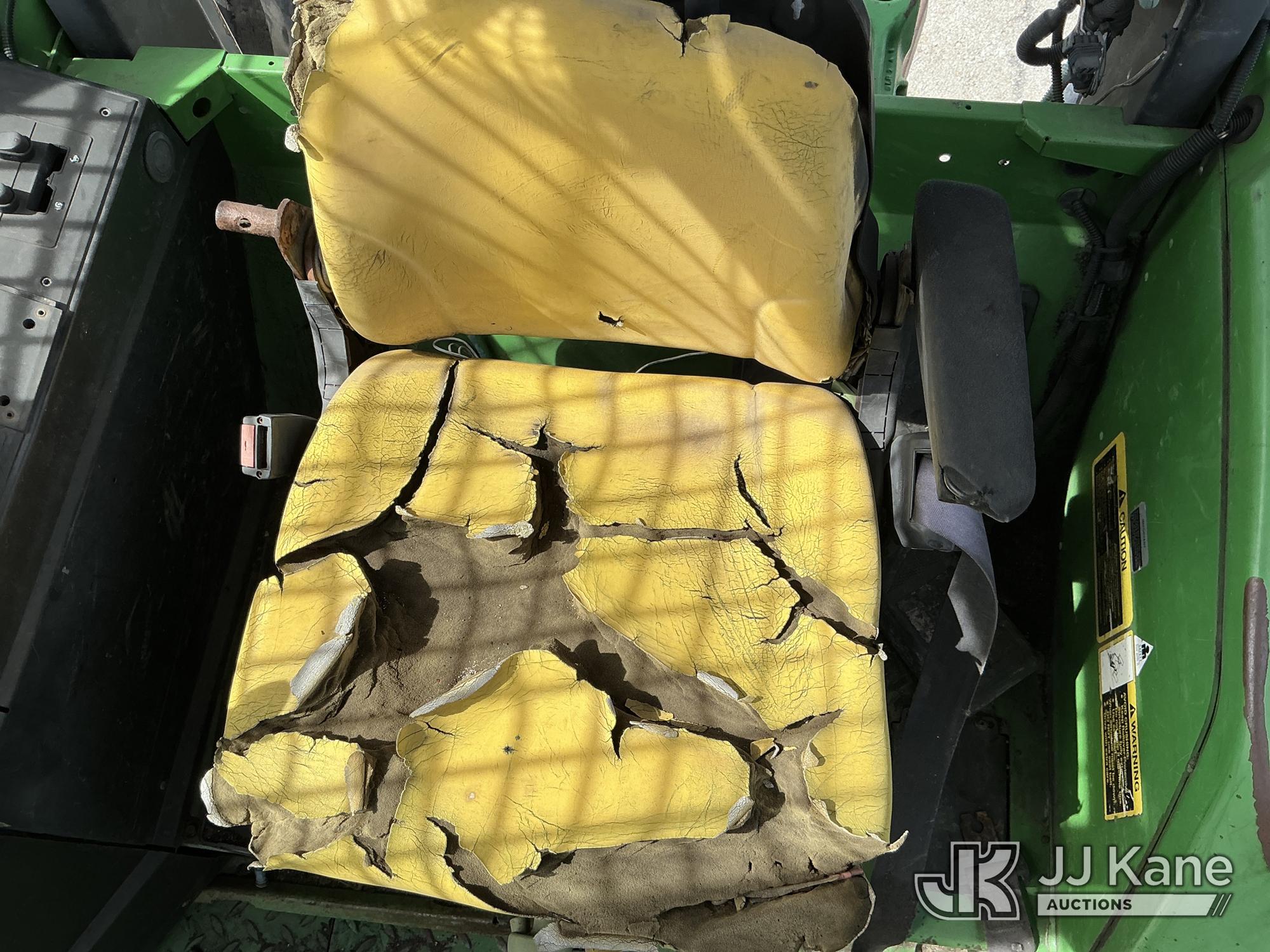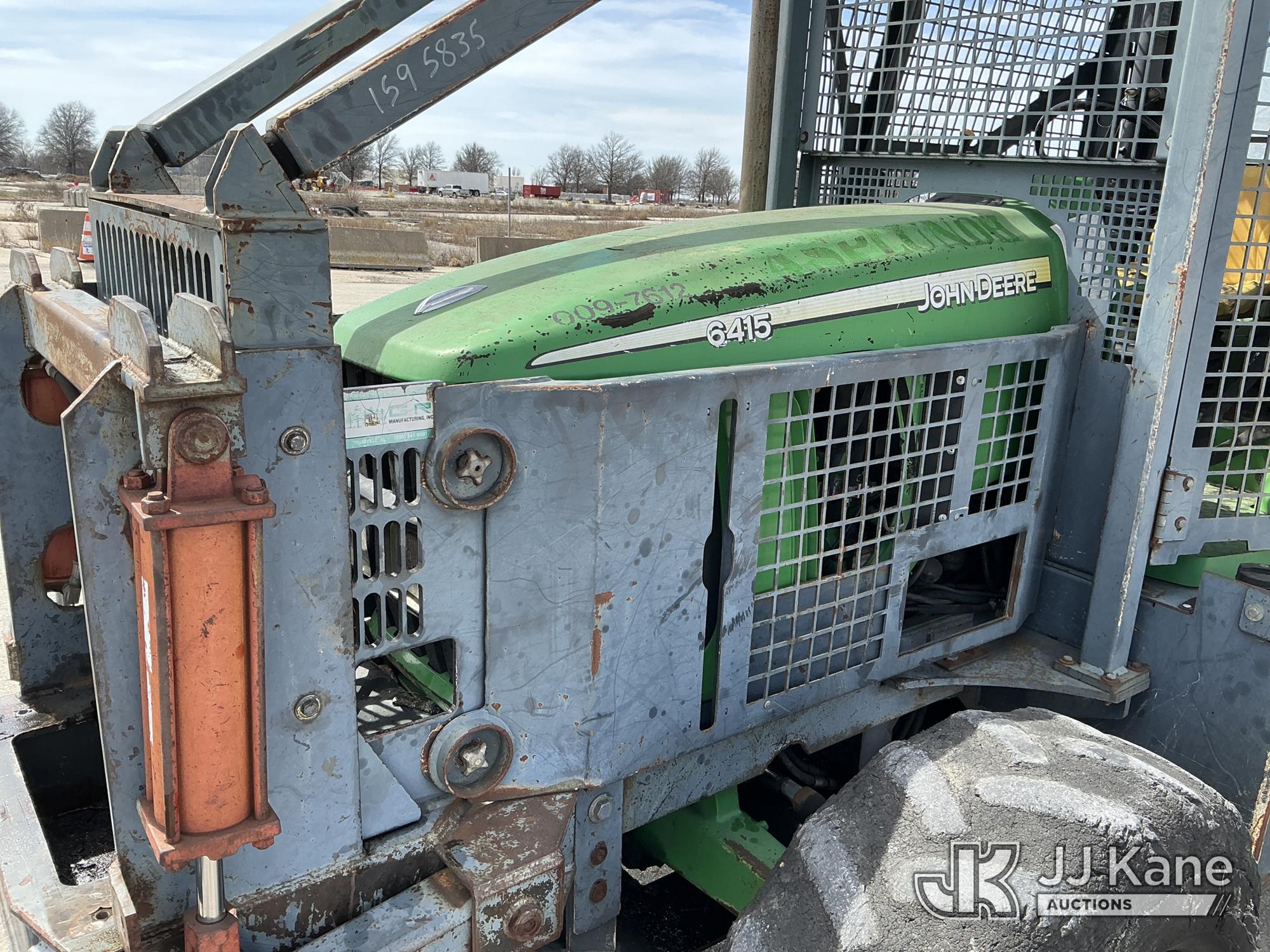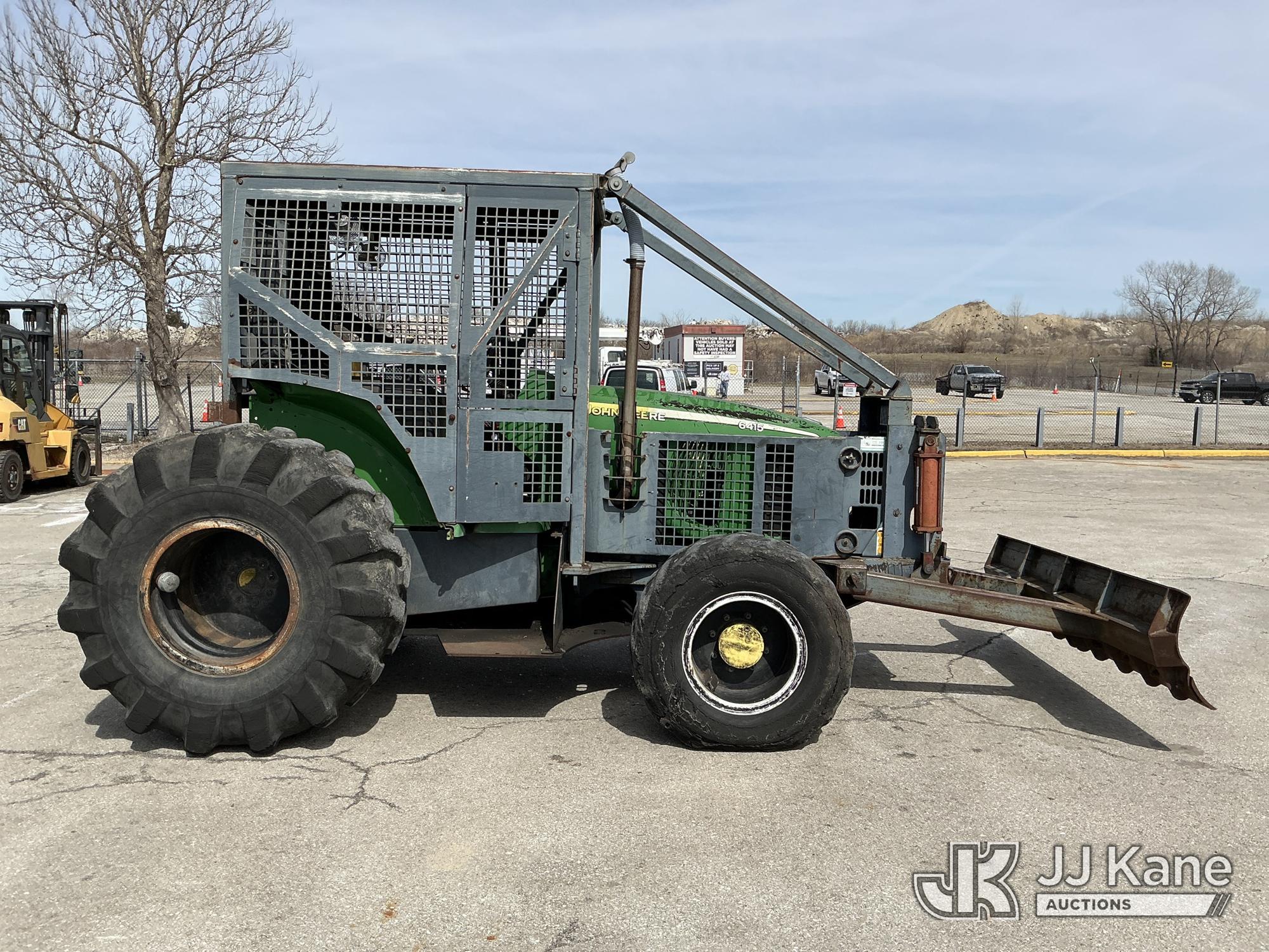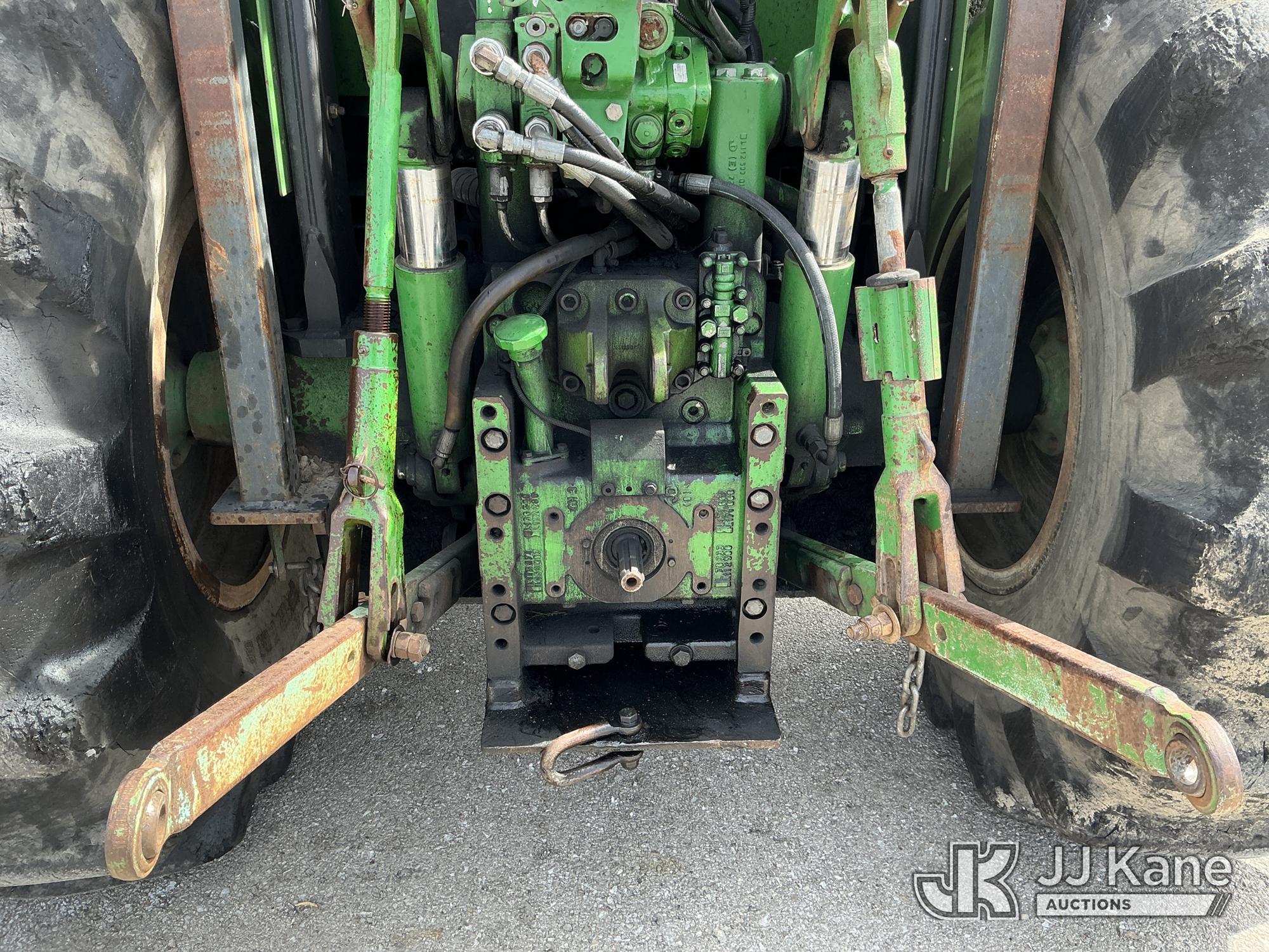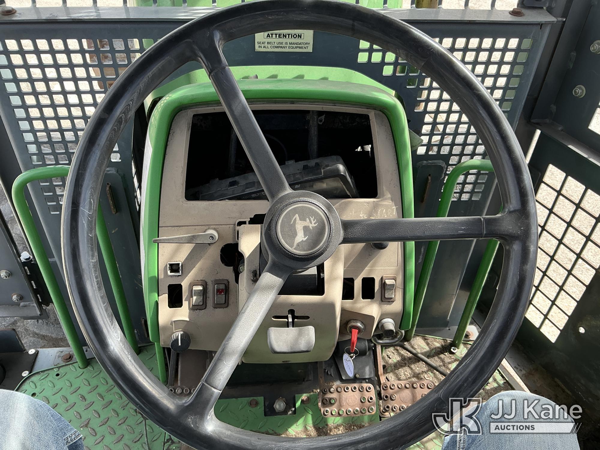 2007 John Deere 6415 Utility Tractor, s/n 0000L06415A539351, John Deere 4wd, diesel, quad range, with Front Blade, 2 Hydraulic Remotes, Brush Cage, EROPS, (Certificate of Origin Runs & Moves) (Jump To Start, Dash Cluster Does Not Light Up) ( Hours Unknown) Tires Worn, Seat Damage, Dash Cluster Not Attached, Front Blade Will Go Up But Will Only Go Down With Hydraulic Control In Float Position, Seller States Steering & Hydraulic Remote Issues)*