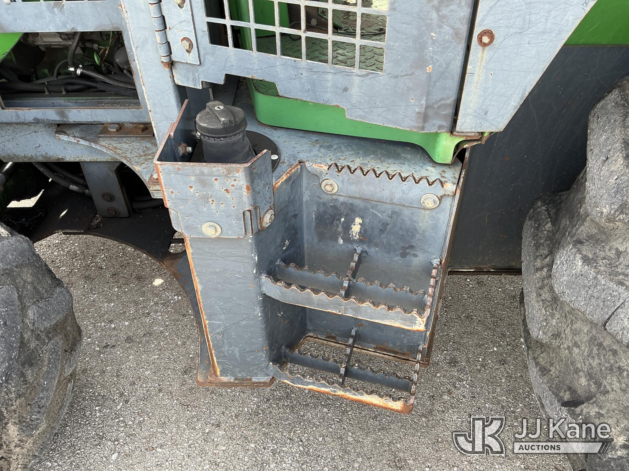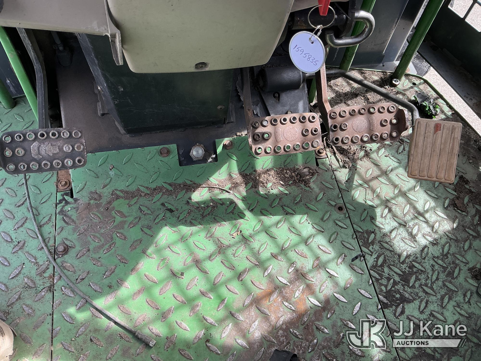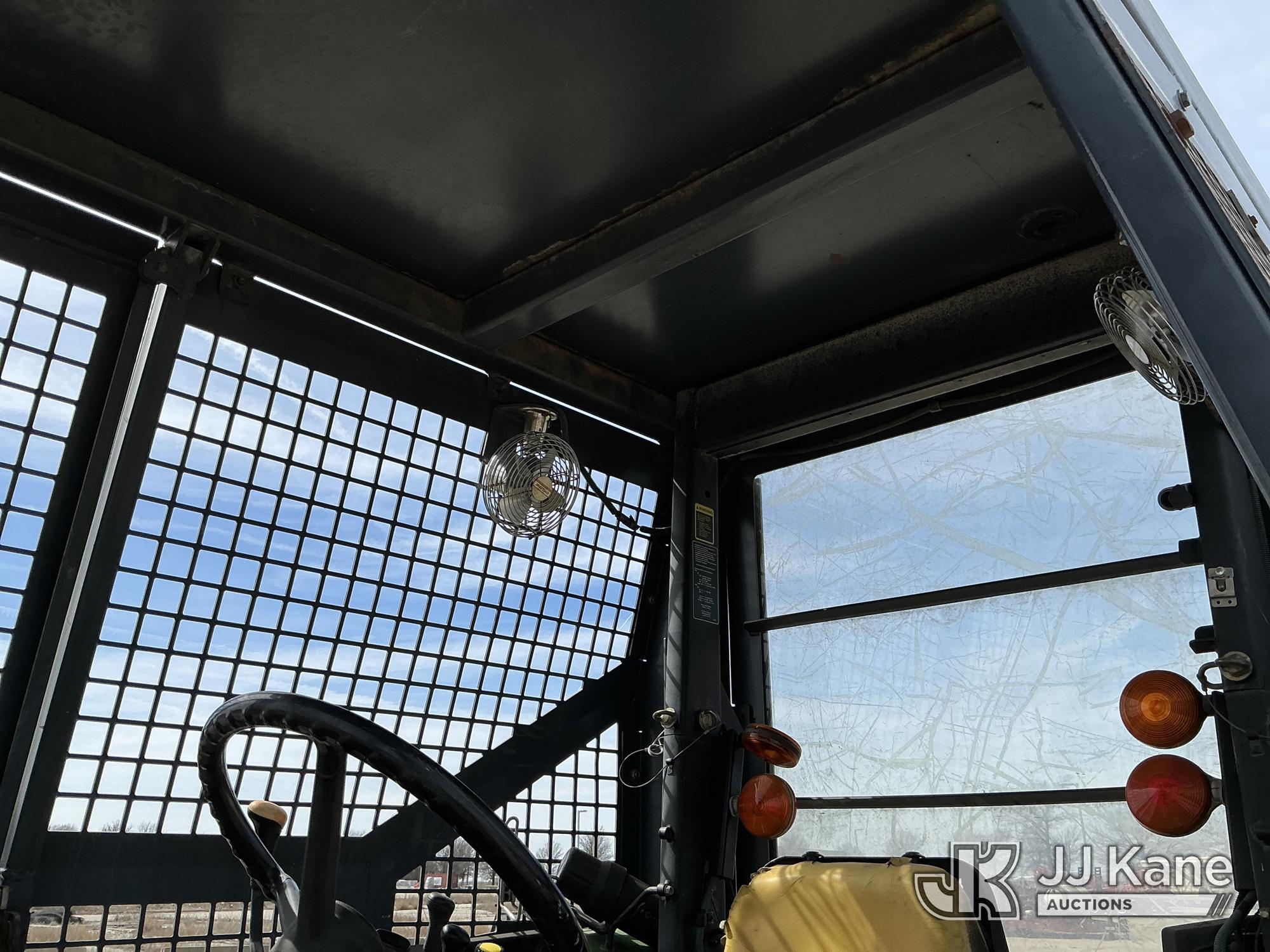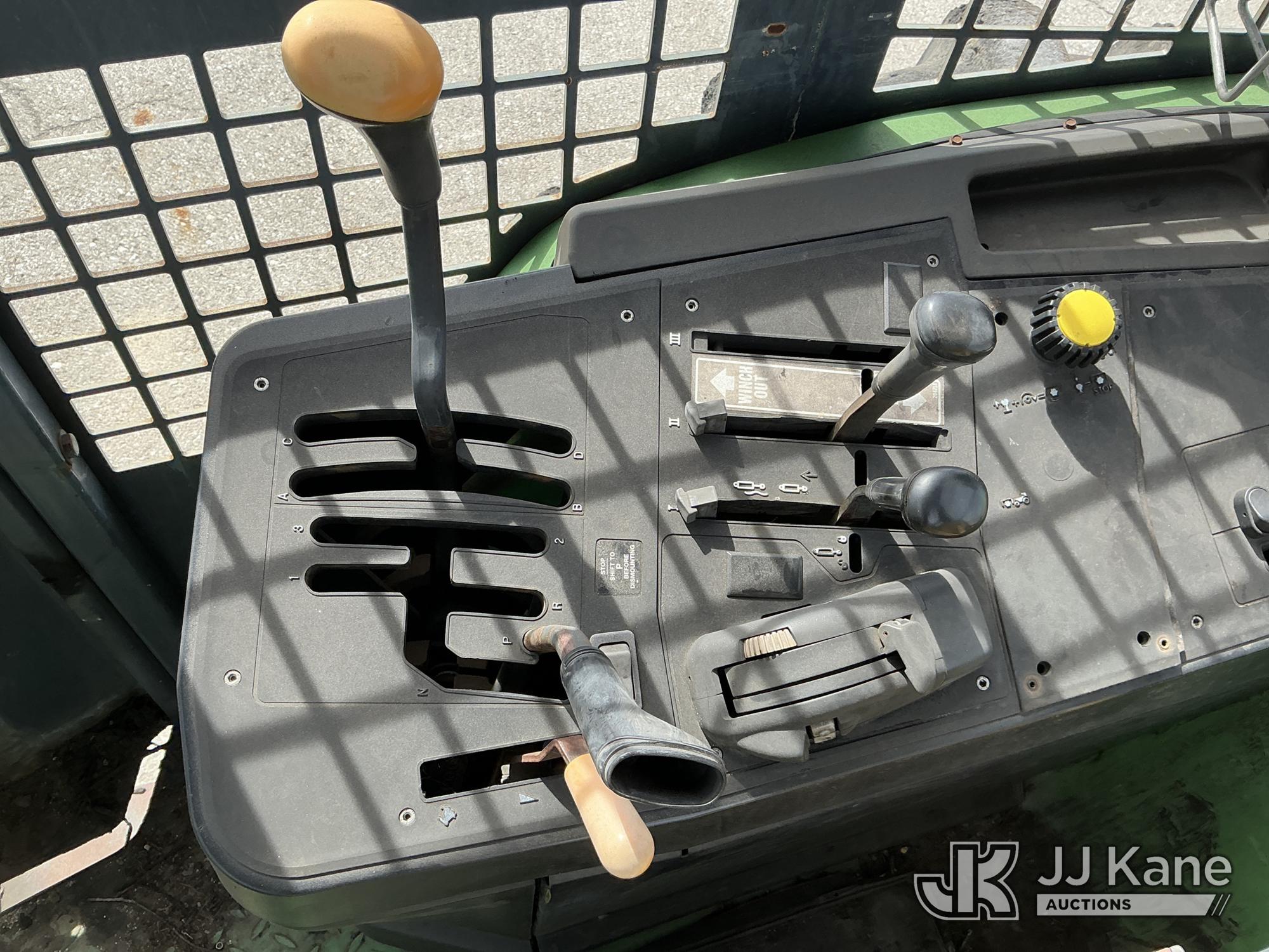 2007 John Deere 6415 Utility Tractor, s/n 0000L06415A539351, John Deere 4wd, diesel, quad range, with Front Blade, 2 Hydraulic Remotes, Brush Cage, EROPS, (Certificate of Origin Runs & Moves) (Jump To Start, Dash Cluster Does Not Light Up) ( Hours Unknown) Tires Worn, Seat Damage, Dash Cluster Not Attached, Front Blade Will Go Up But Will Only Go Down With Hydraulic Control In Float Position, Seller States Steering & Hydraulic Remote Issues)*
