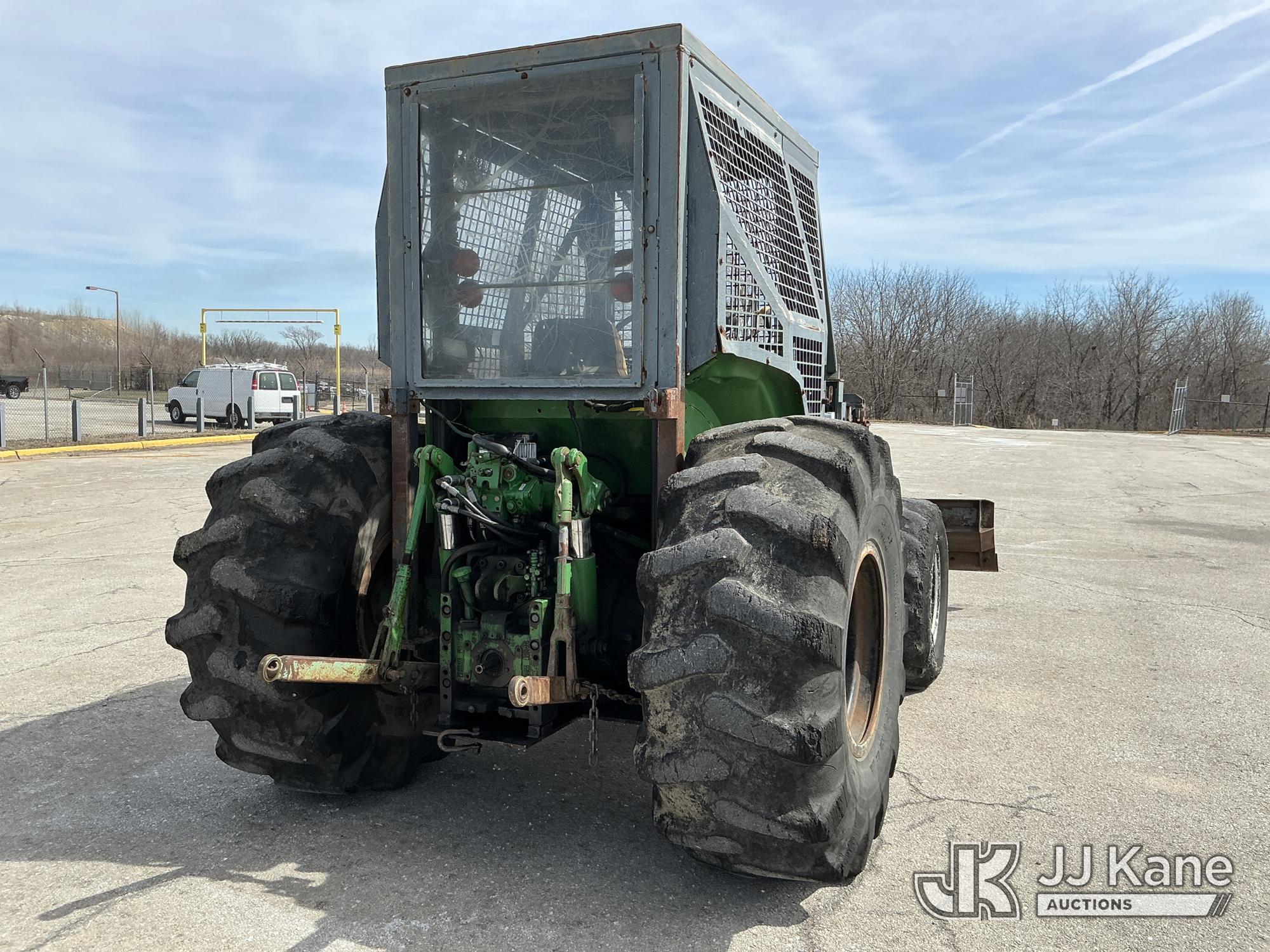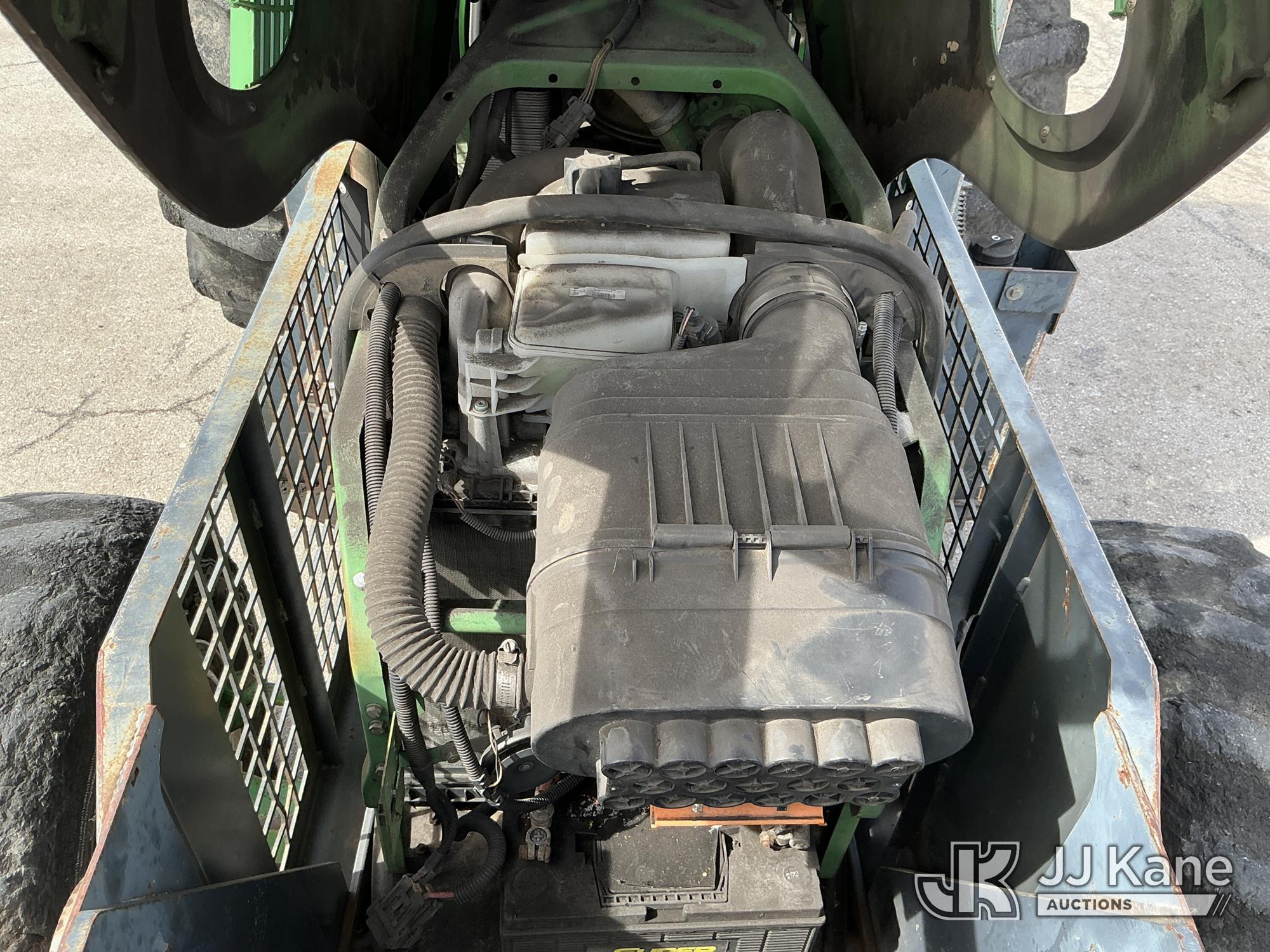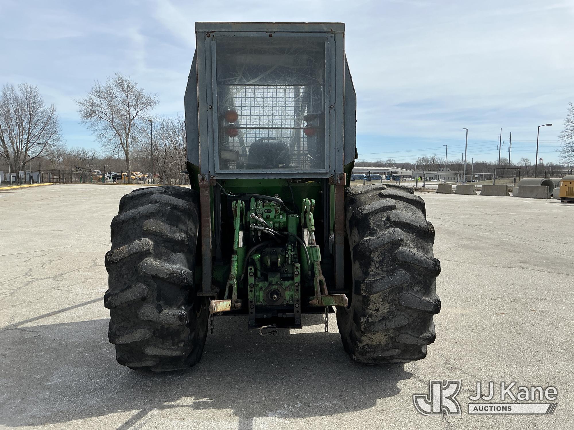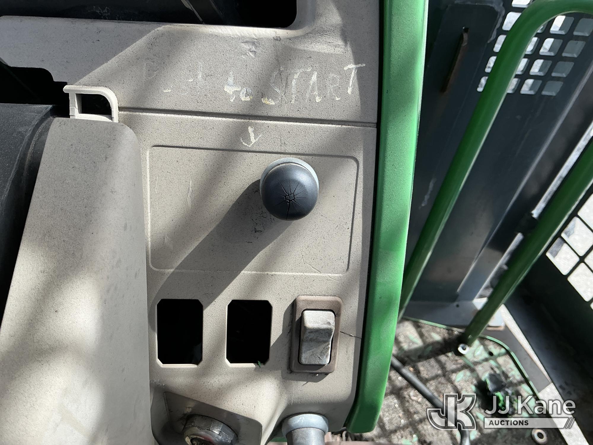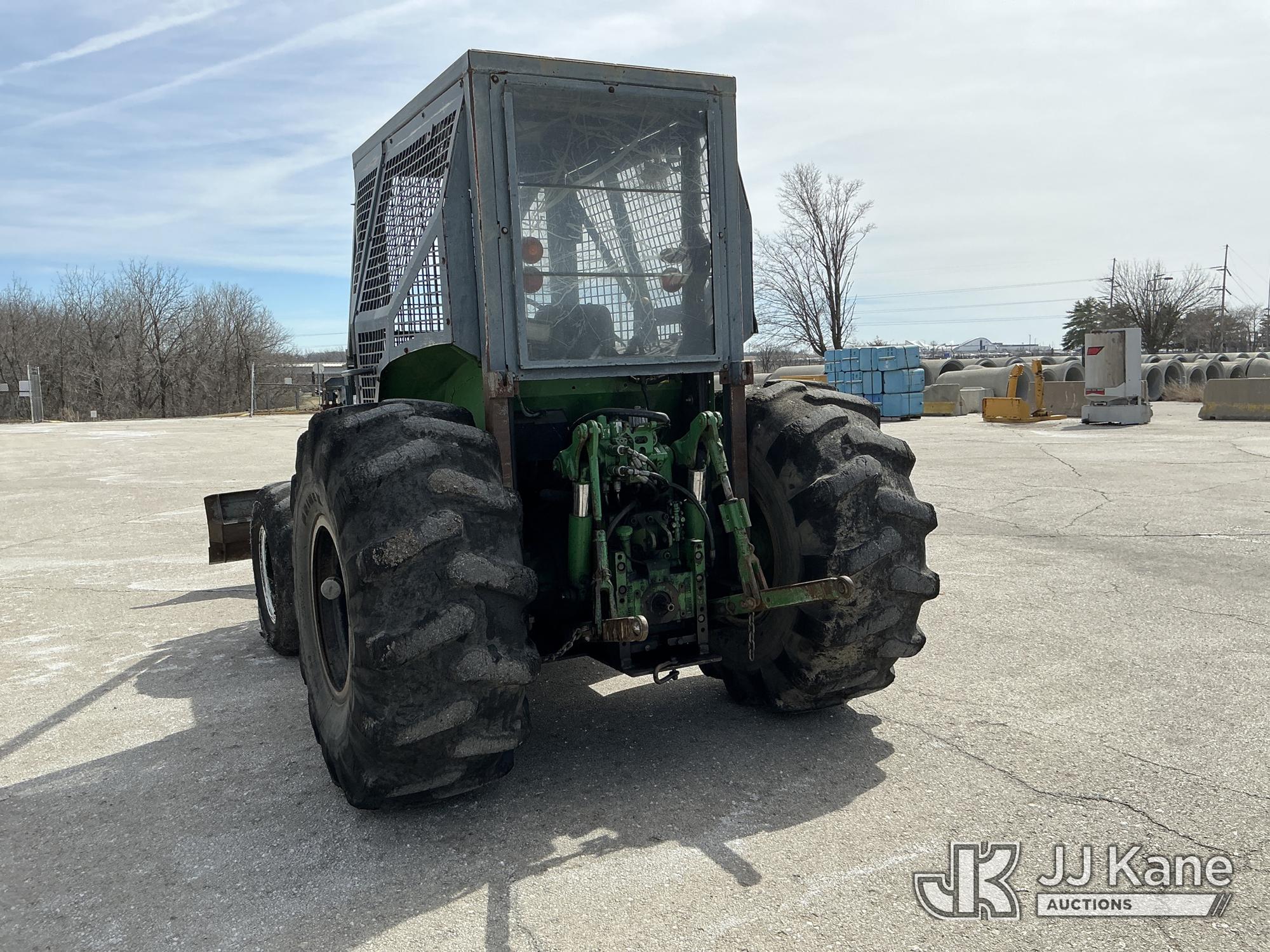 2007 John Deere 6415 Utility Tractor, s/n 0000L06415A539351, John Deere 4wd, diesel, quad range, with Front Blade, 2 Hydraulic Remotes, Brush Cage, EROPS, (Certificate of Origin Runs & Moves) (Jump To Start, Dash Cluster Does Not Light Up) ( Hours Unknown) Tires Worn, Seat Damage, Dash Cluster Not Attached, Front Blade Will Go Up But Will Only Go Down With Hydraulic Control In Float Position, Seller States Steering & Hydraulic Remote Issues)*