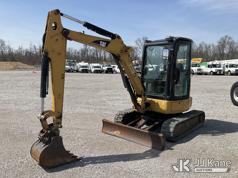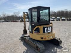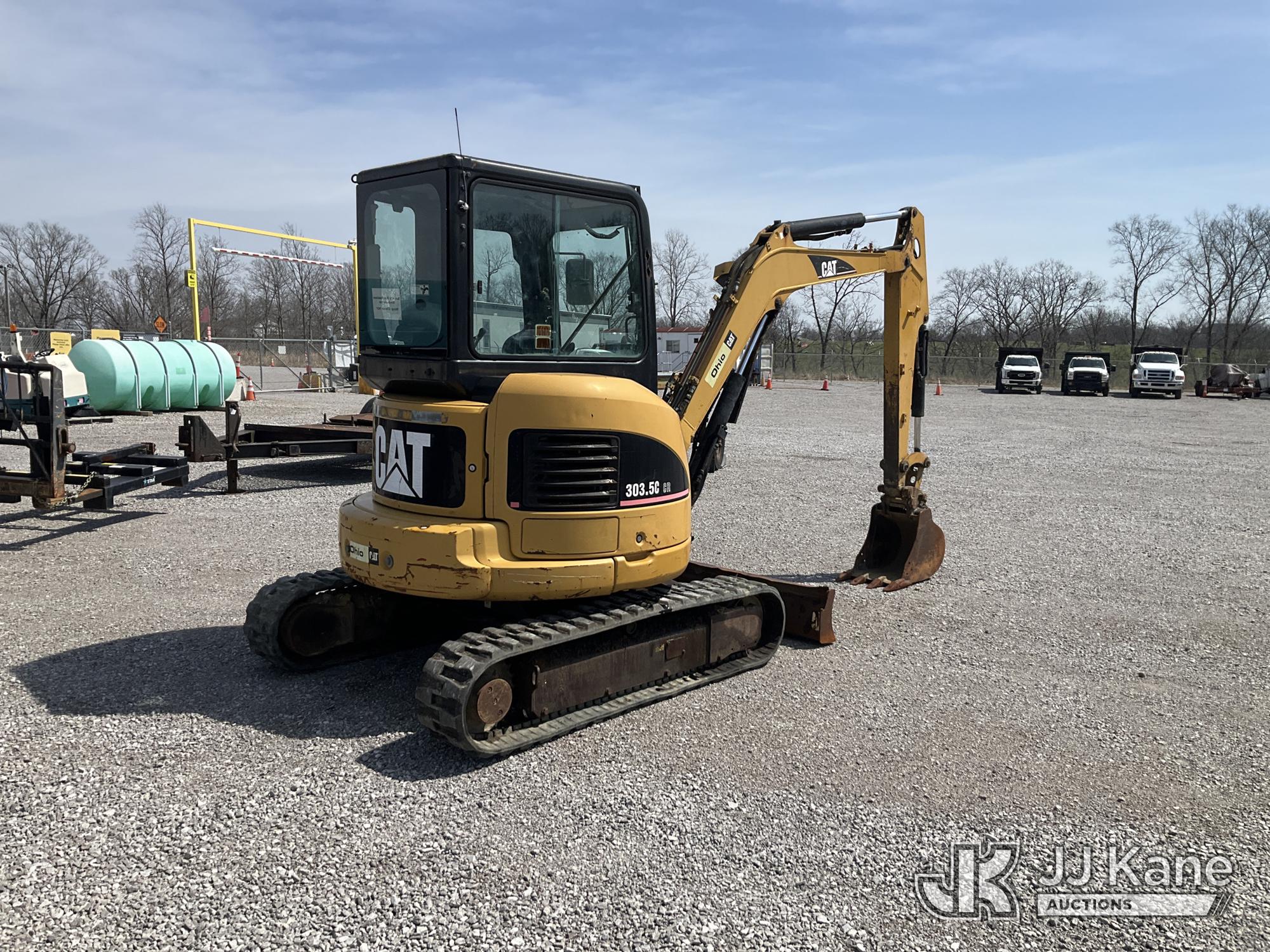 2007 Caterpillar 303.5C CR Mini Hydraulic Excavator, s/n CAT3035CCDMY00356, Mitsubishi diesel, Hydraulic Driven, with digging bucket, backfill blade, rubber tracks & climate controlled EROPS, (Runs, Moves & Operates) (Hyd. Leak In Under Pan, Glass Broken) (Reads 4,816 hours)*