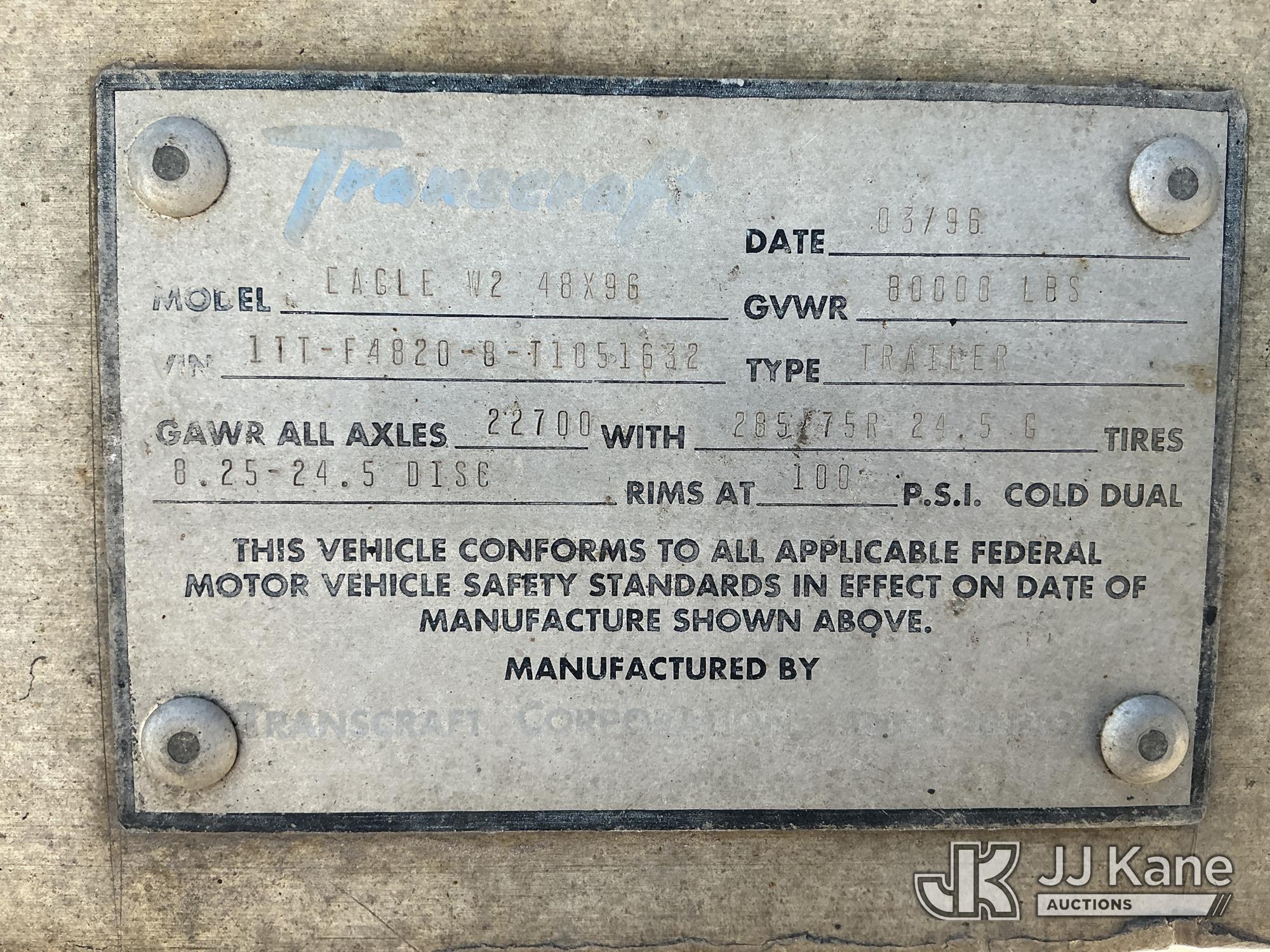 1996 Transcraft Eagle W2-48x96 High Flatbed Trailer, with GVWR 80,000 LBS, This is a Titled Item*