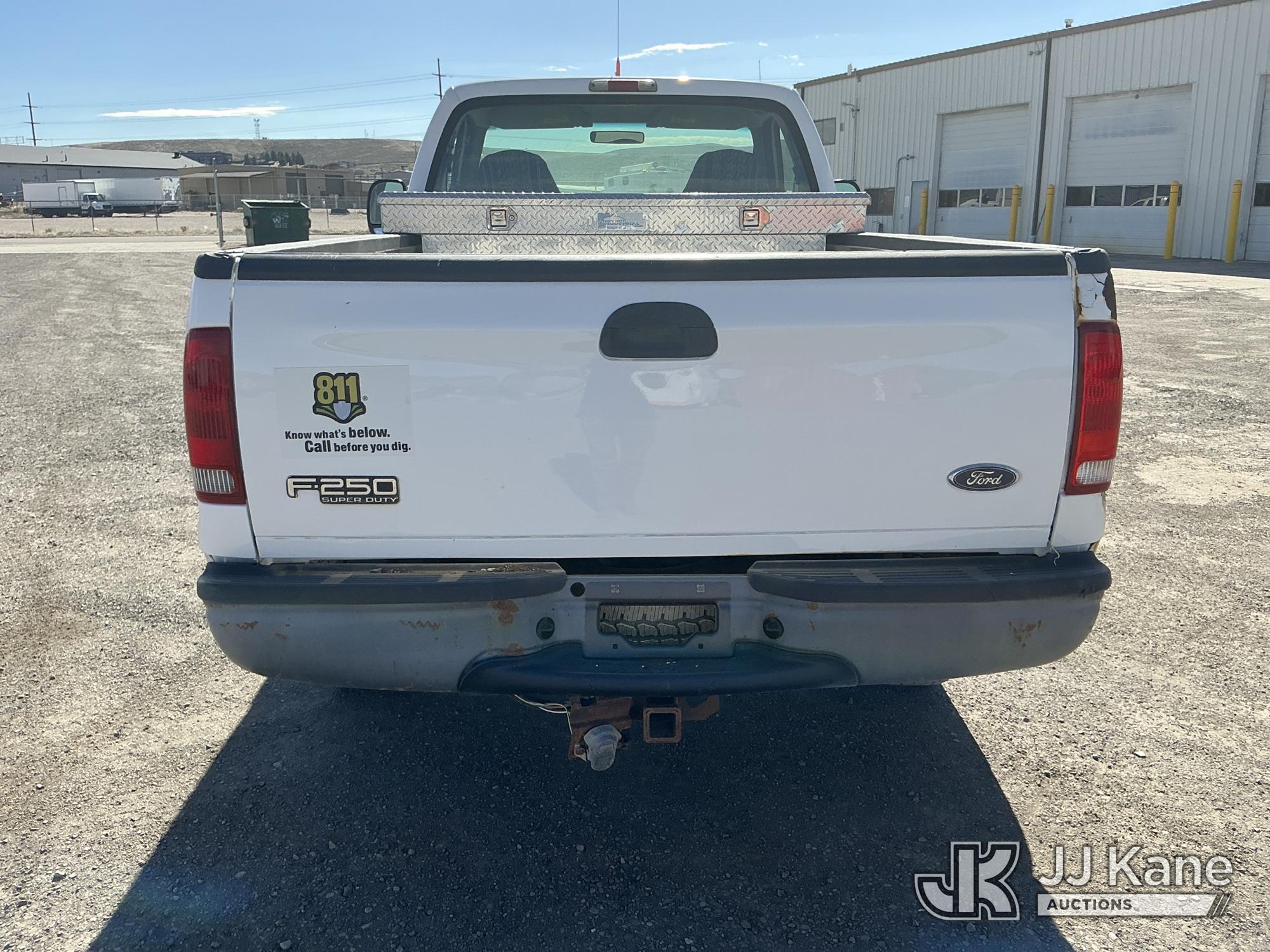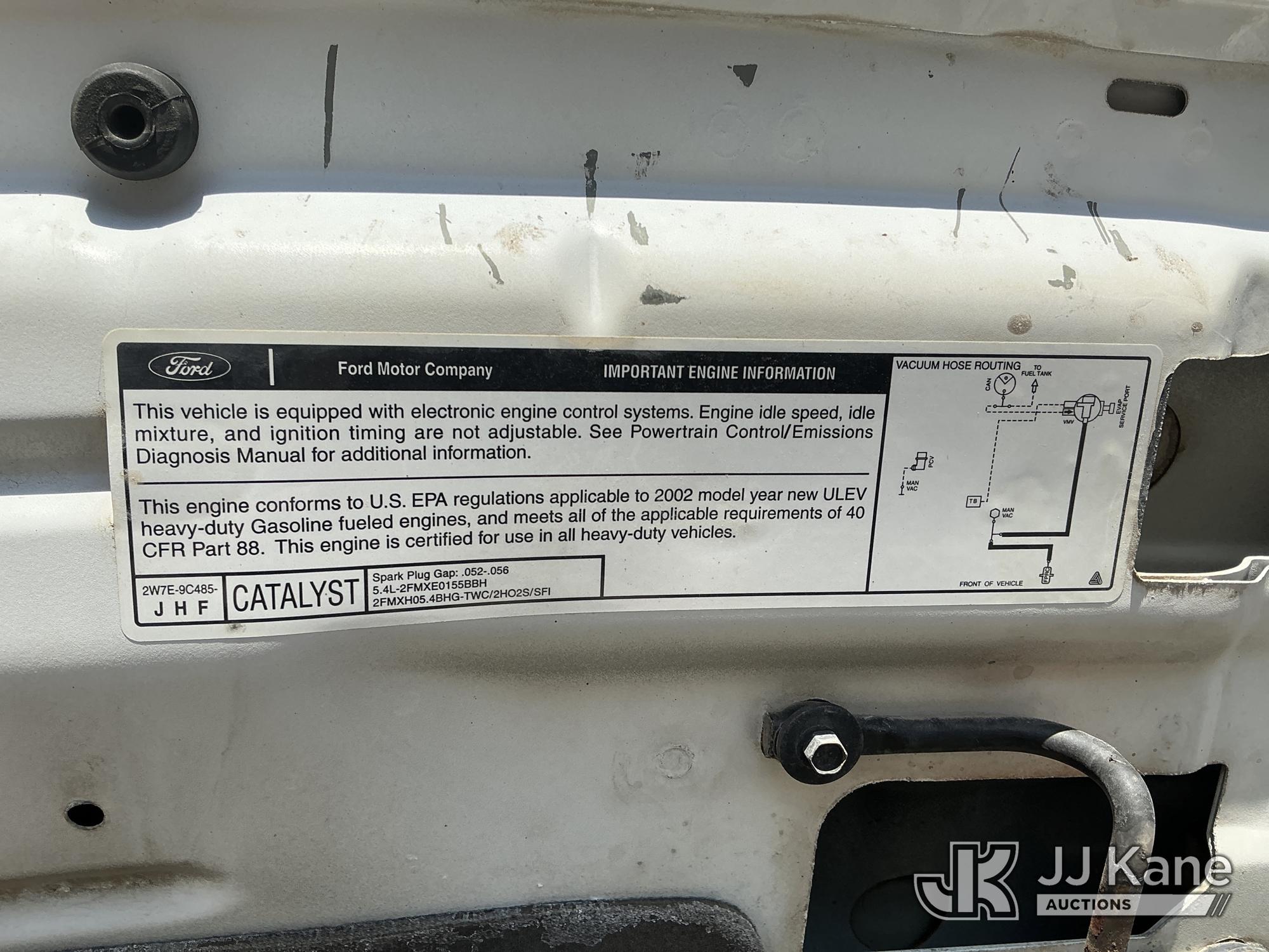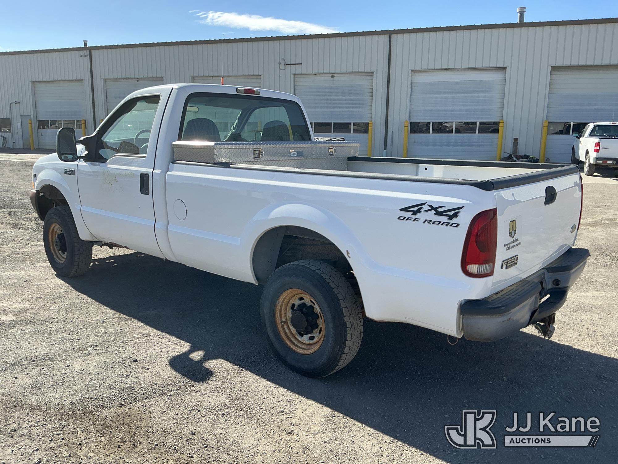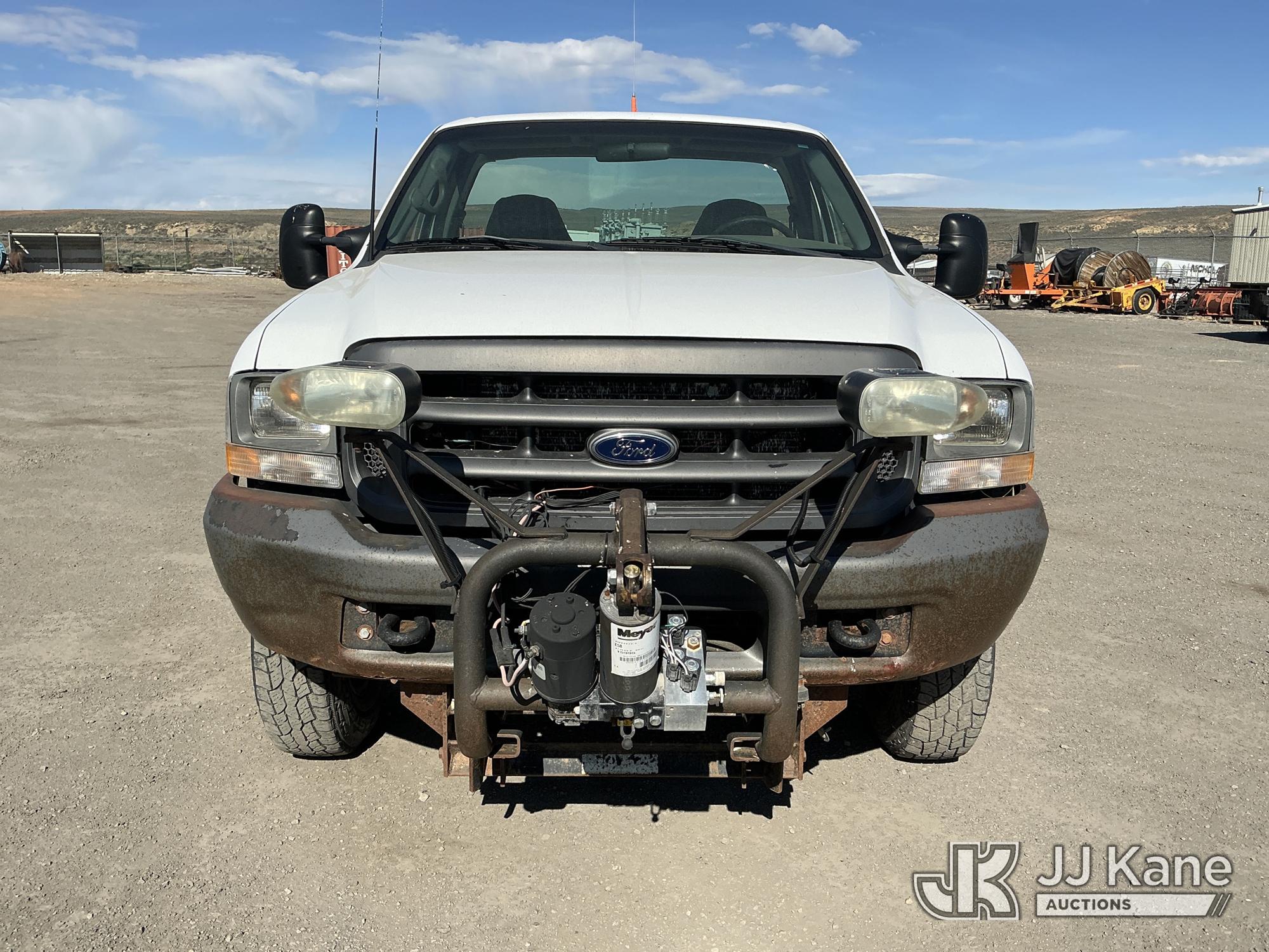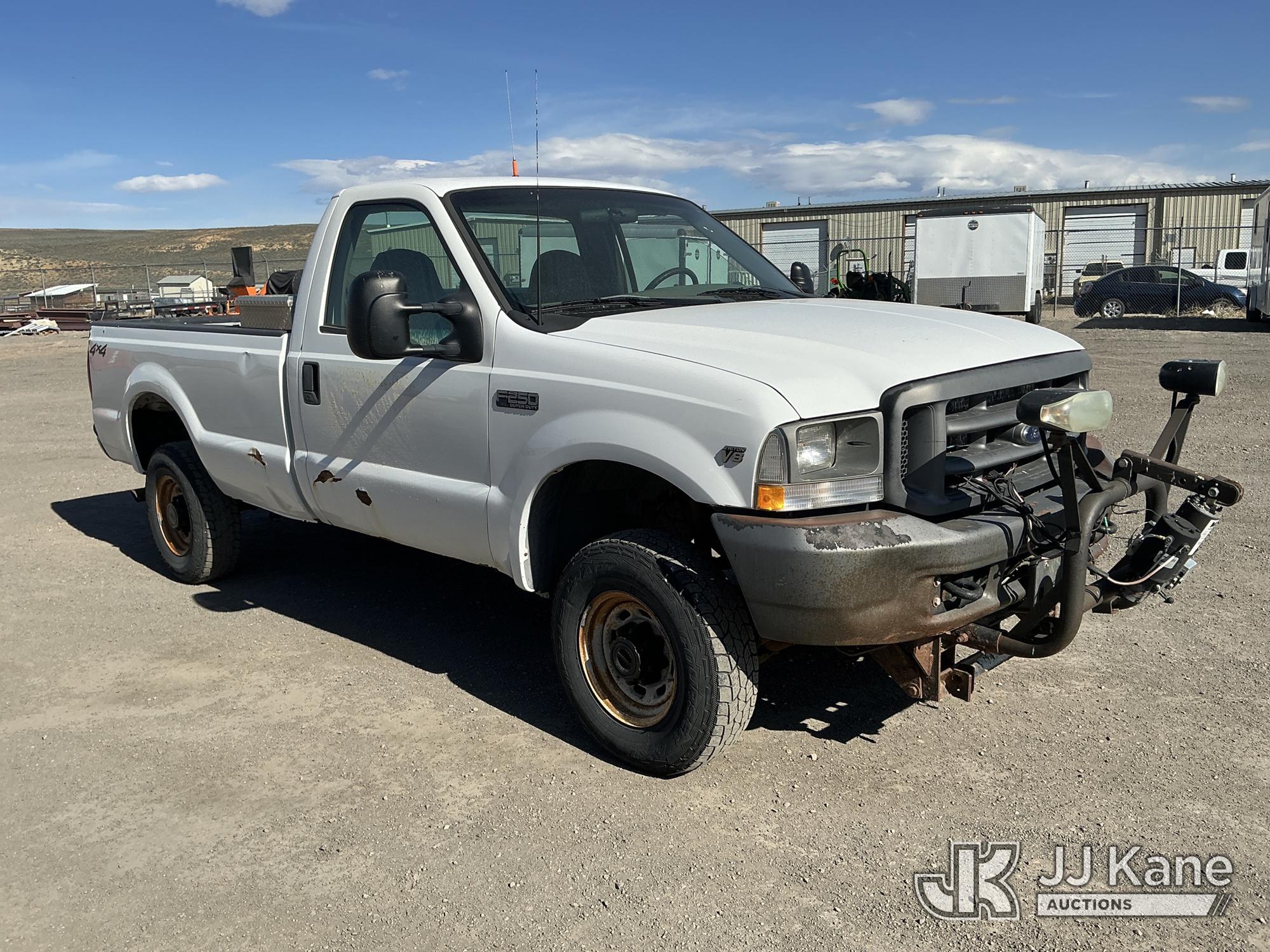 2002 Ford F-250 SD Pickup Truck, 8-cyl gas, 4WD, Auto, A/C, with Front End Snow Plow Mount & Plow, (Exempt from Odometer Disclosure - Reads 125,551 miles) (Runs & Moves) (Engine Light On) (Seller States: Cylinder 2 Spark Plug Blown Out, Transmission Leaks, Stabilizer Shock Leaking, Plow Mount Inoperable) This is a Titled Item*