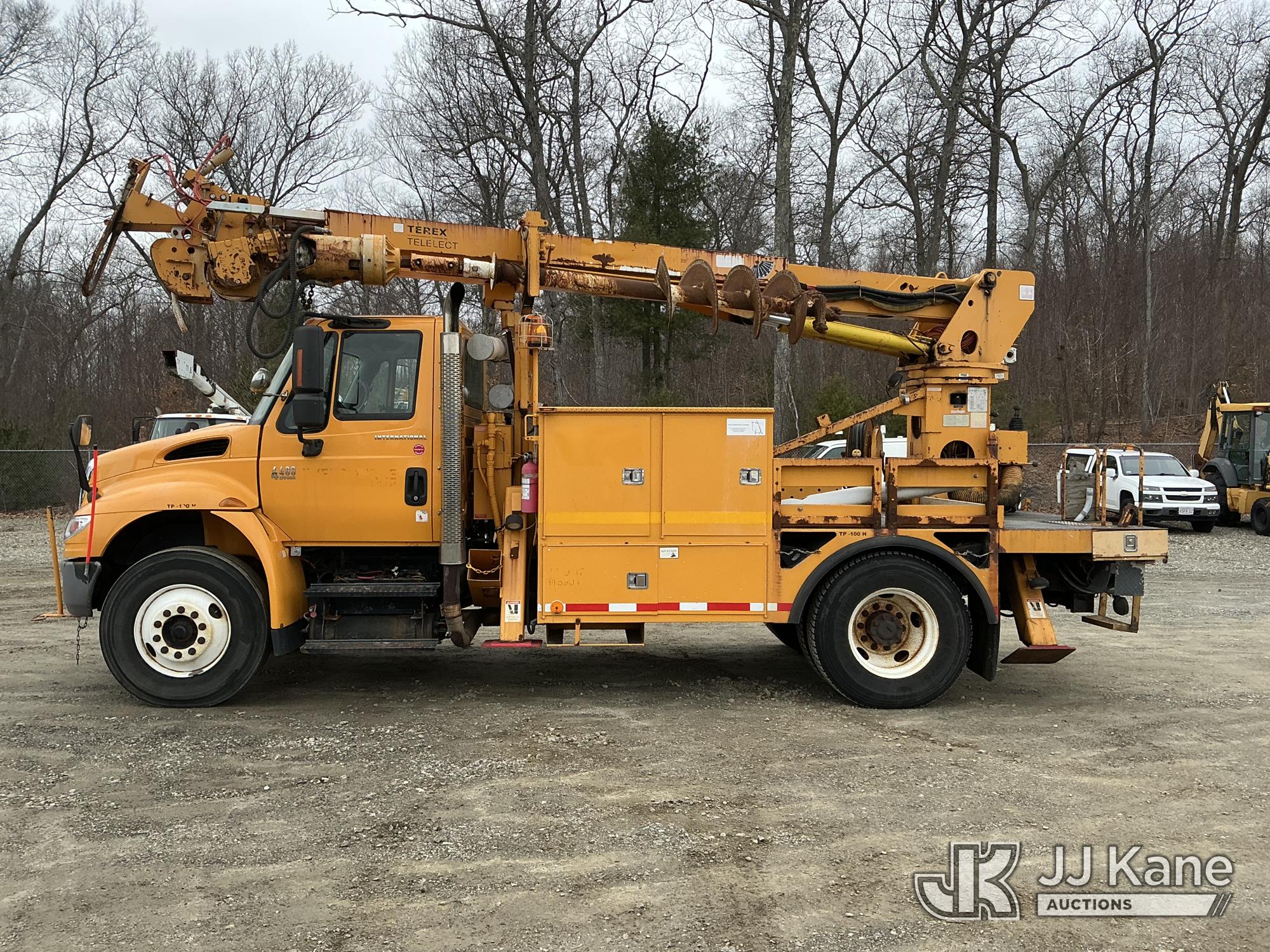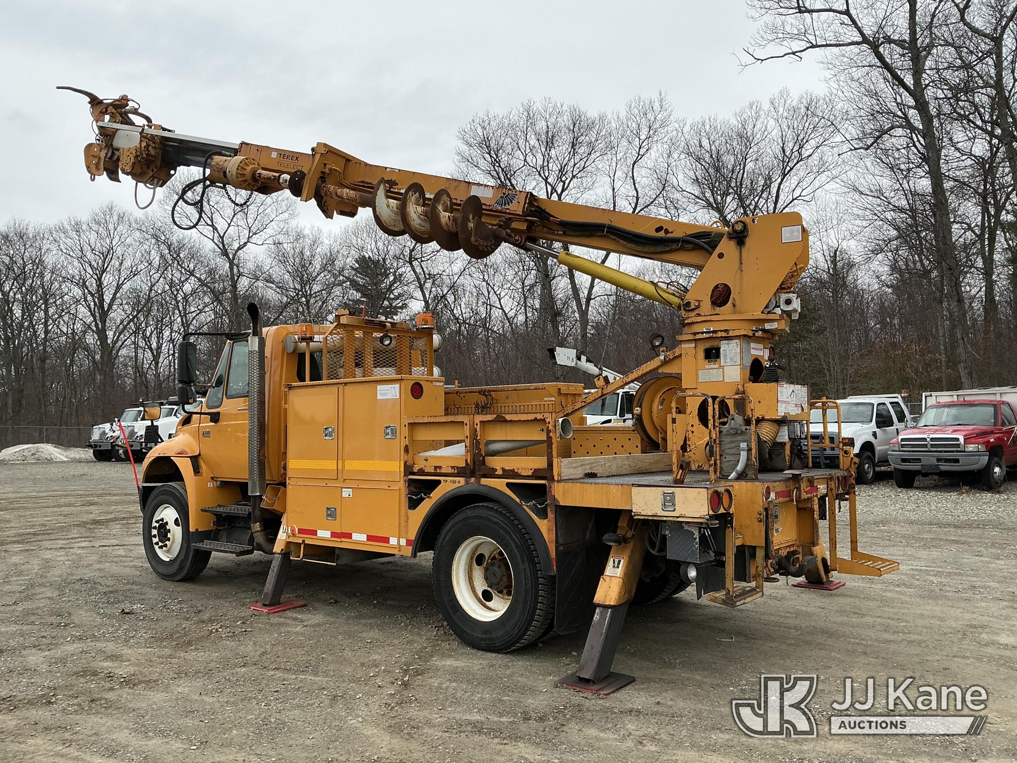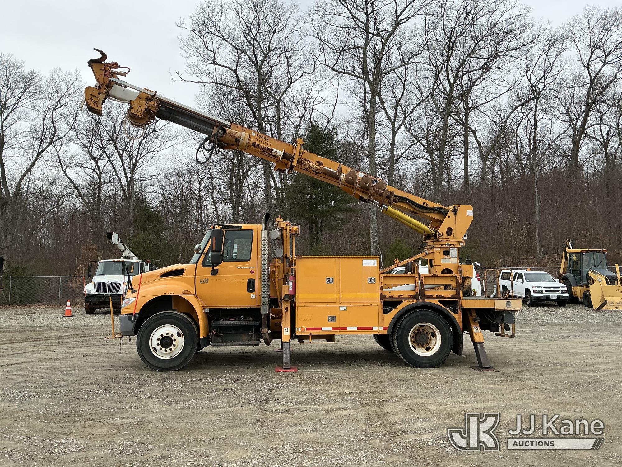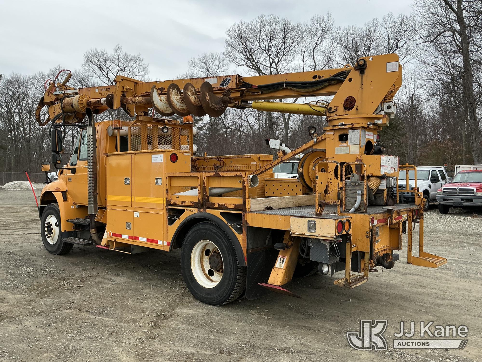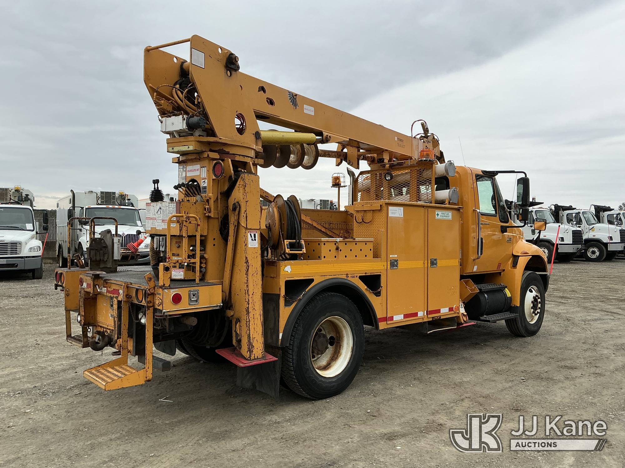 Terex/Telelect Commander C4047, 18,890 Lb Digger Derrick s/n 2060329700, with 47 ft sheave height, 2-spd digger, tip winch, pole grabs & stand up controls, corner mounted on 2007 International 4400 Flatbed/Utility Truck, DT466 4X2, diesel, Auto, A/C, (114,052 miles) (Runs, Moves & Upper Operates) (Reads 11,983 hours) This is a Titled Item*