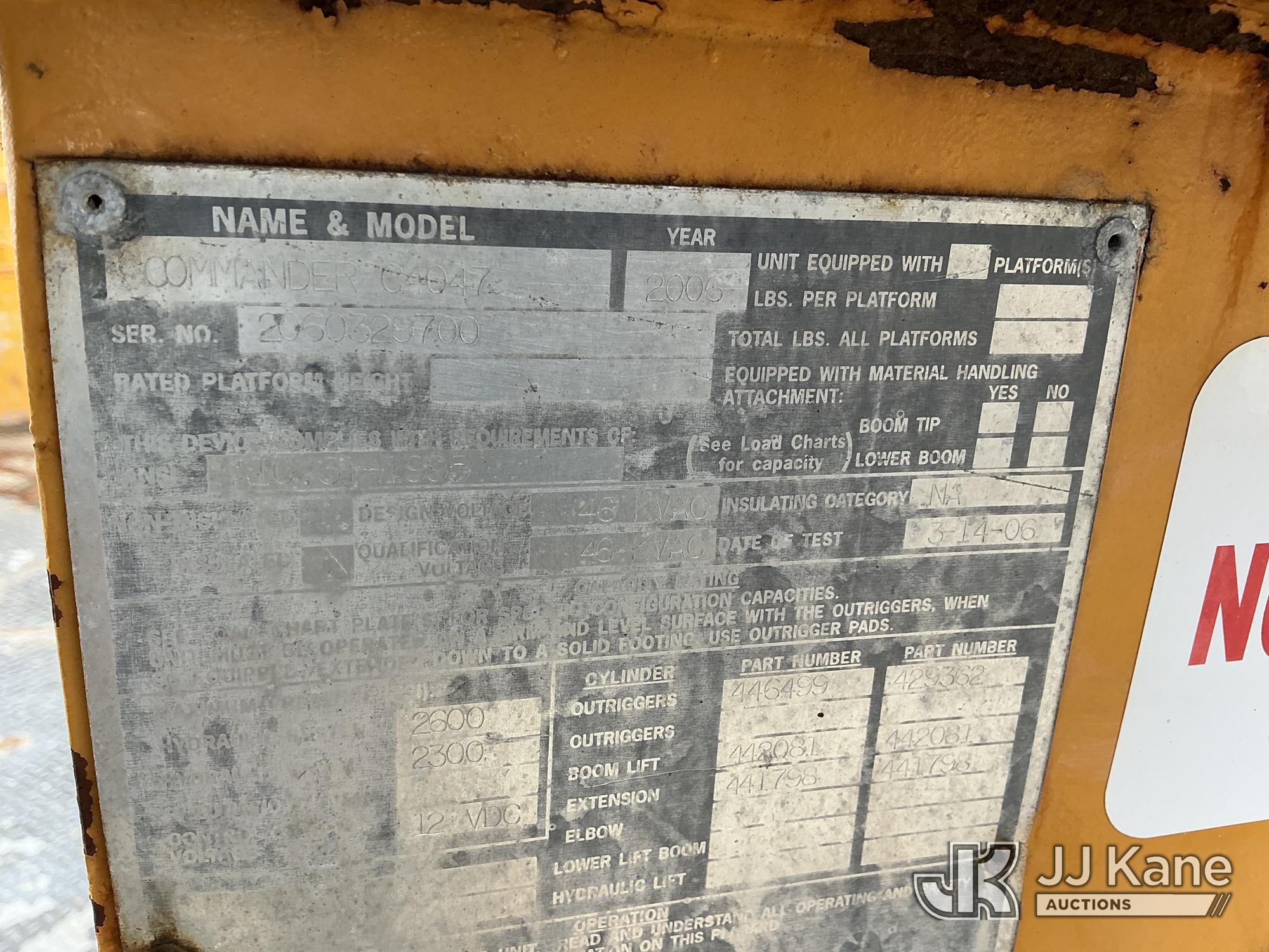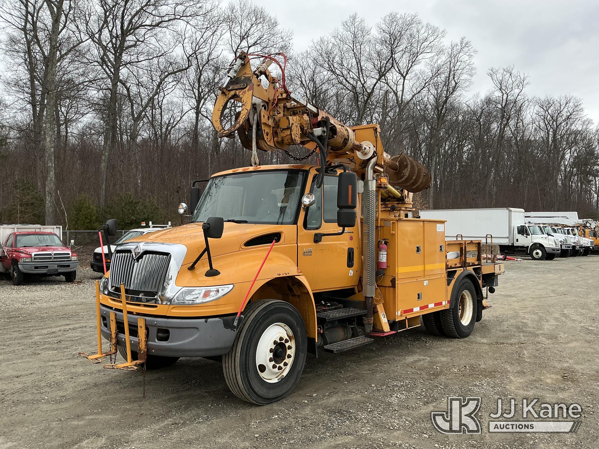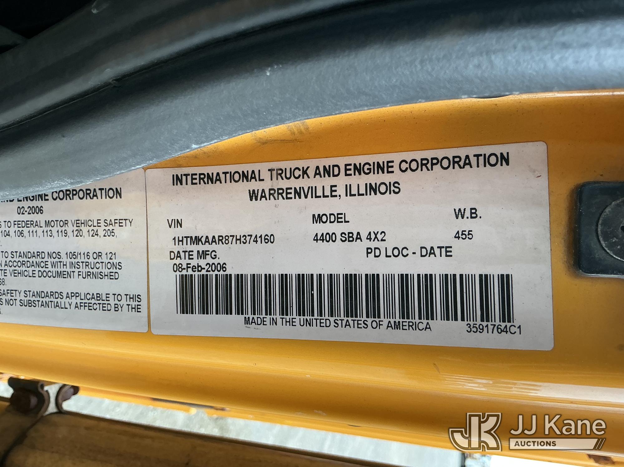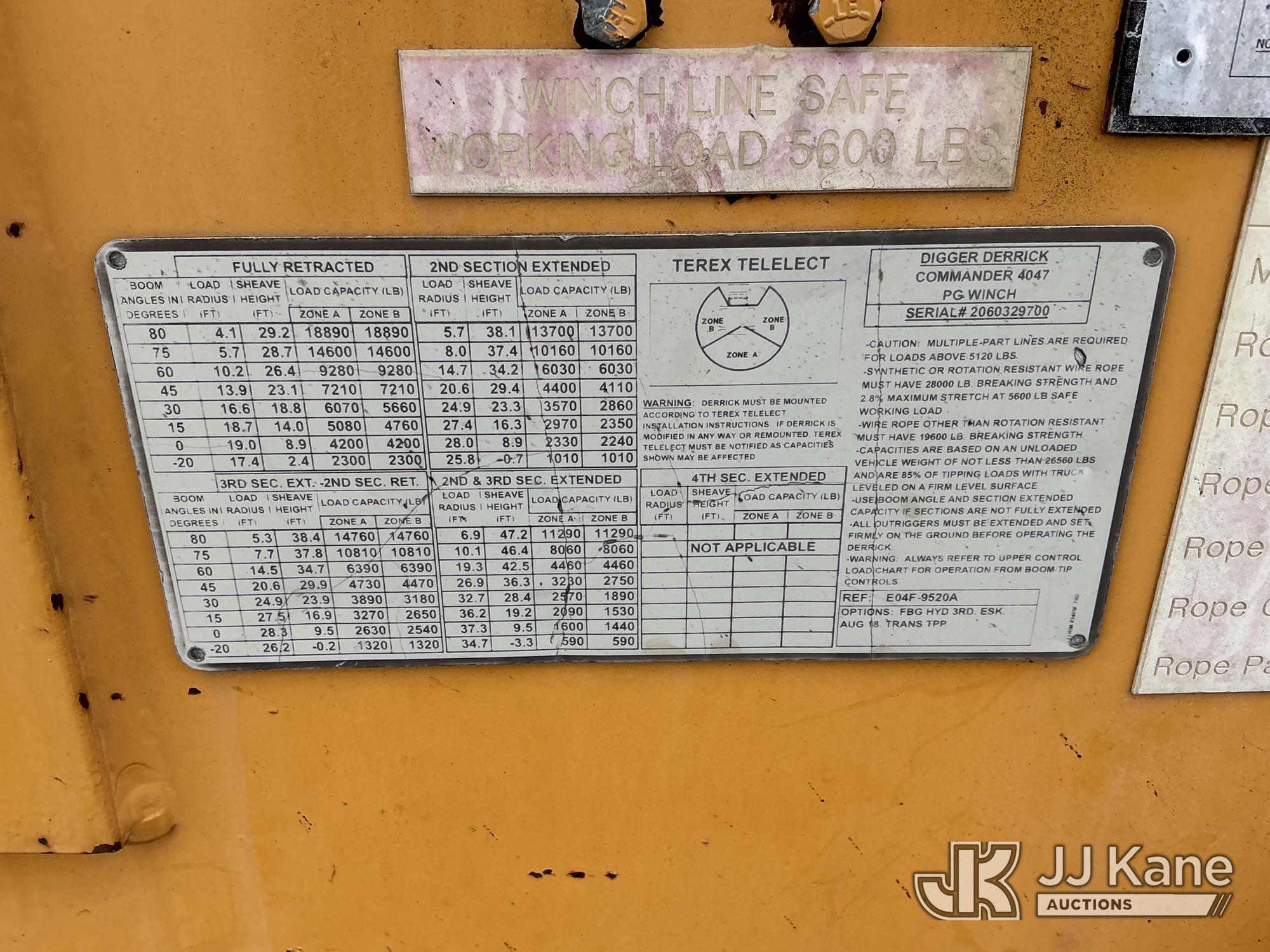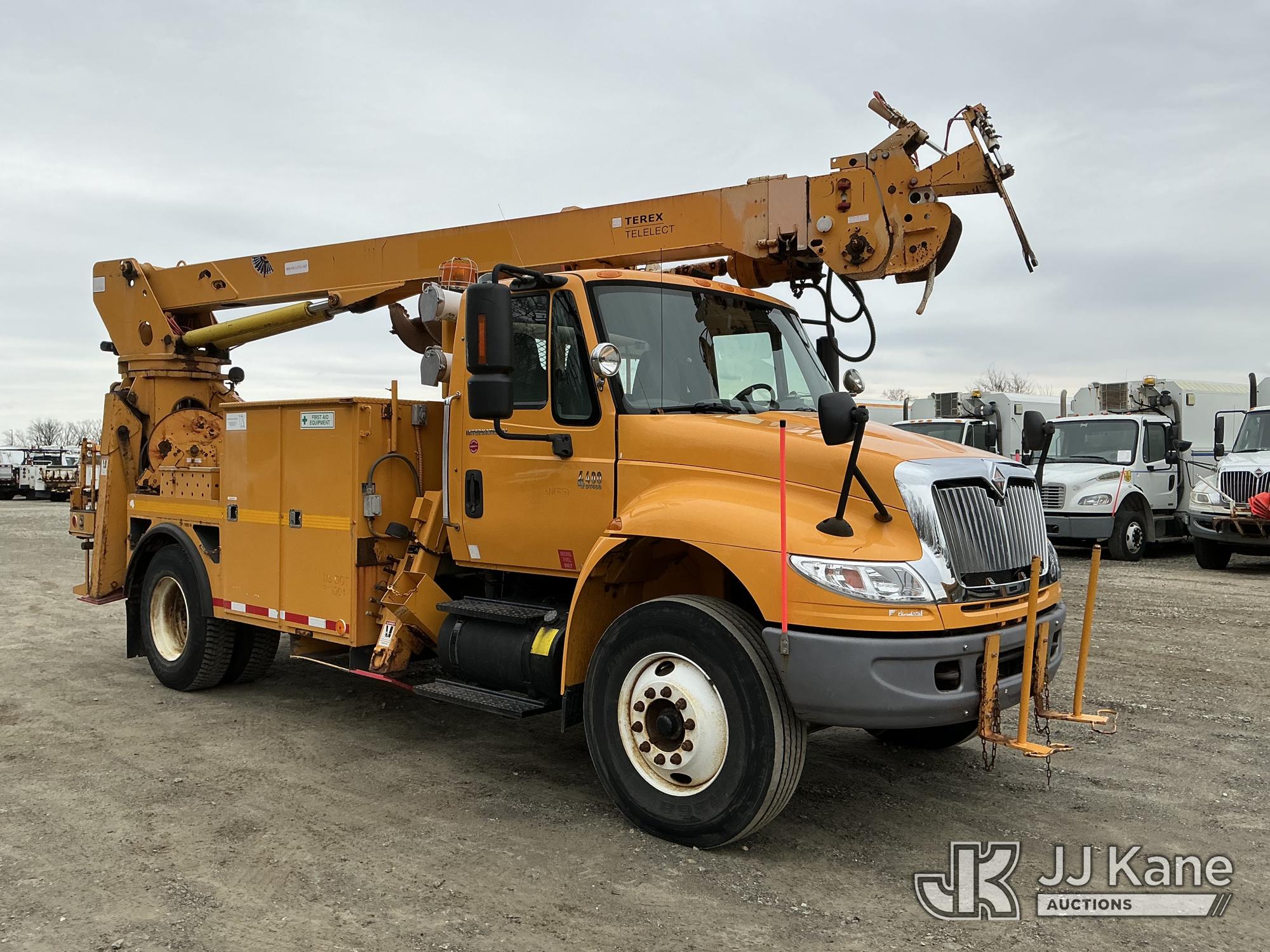 Terex/Telelect Commander C4047, 18,890 Lb Digger Derrick s/n 2060329700, with 47 ft sheave height, 2-spd digger, tip winch, pole grabs & stand up controls, corner mounted on 2007 International 4400 Flatbed/Utility Truck, DT466 4X2, diesel, Auto, A/C, (114,052 miles) (Runs, Moves & Upper Operates) (Reads 11,983 hours) This is a Titled Item*