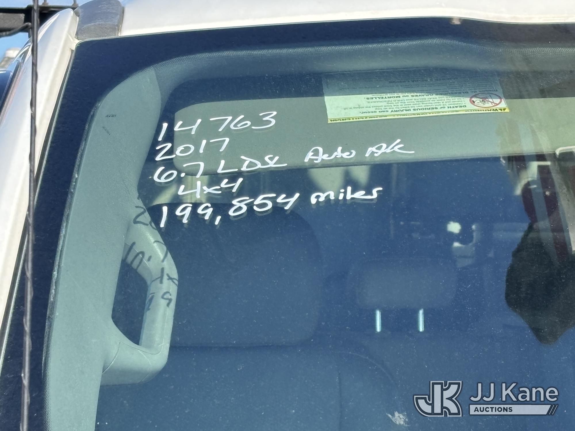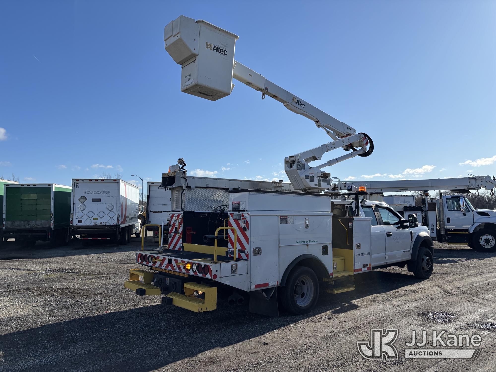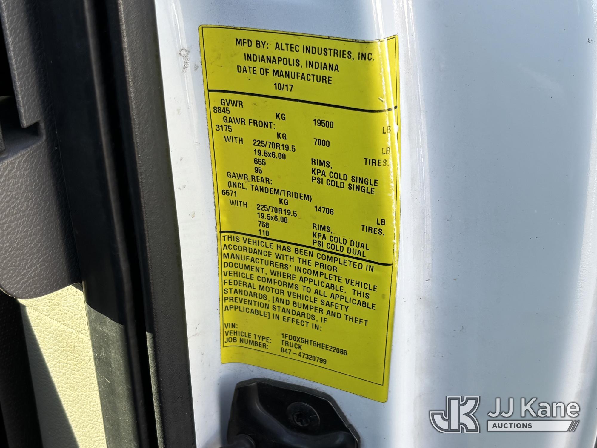 Altec AT40G, 45 ft, Articulating & Telescopic Bucket Truck s/n 0717EY2703, with Single-Man Bucket, mounted behind cab on 2017 Ford F550 4x4 Extended-Cab Service Truck, 6.7L diesel, Auto, A/C, (199,854 miles) (Runs, Moves & Upper Operates, Engine Light On, Front Bumper Dented) This is a Titled Item*