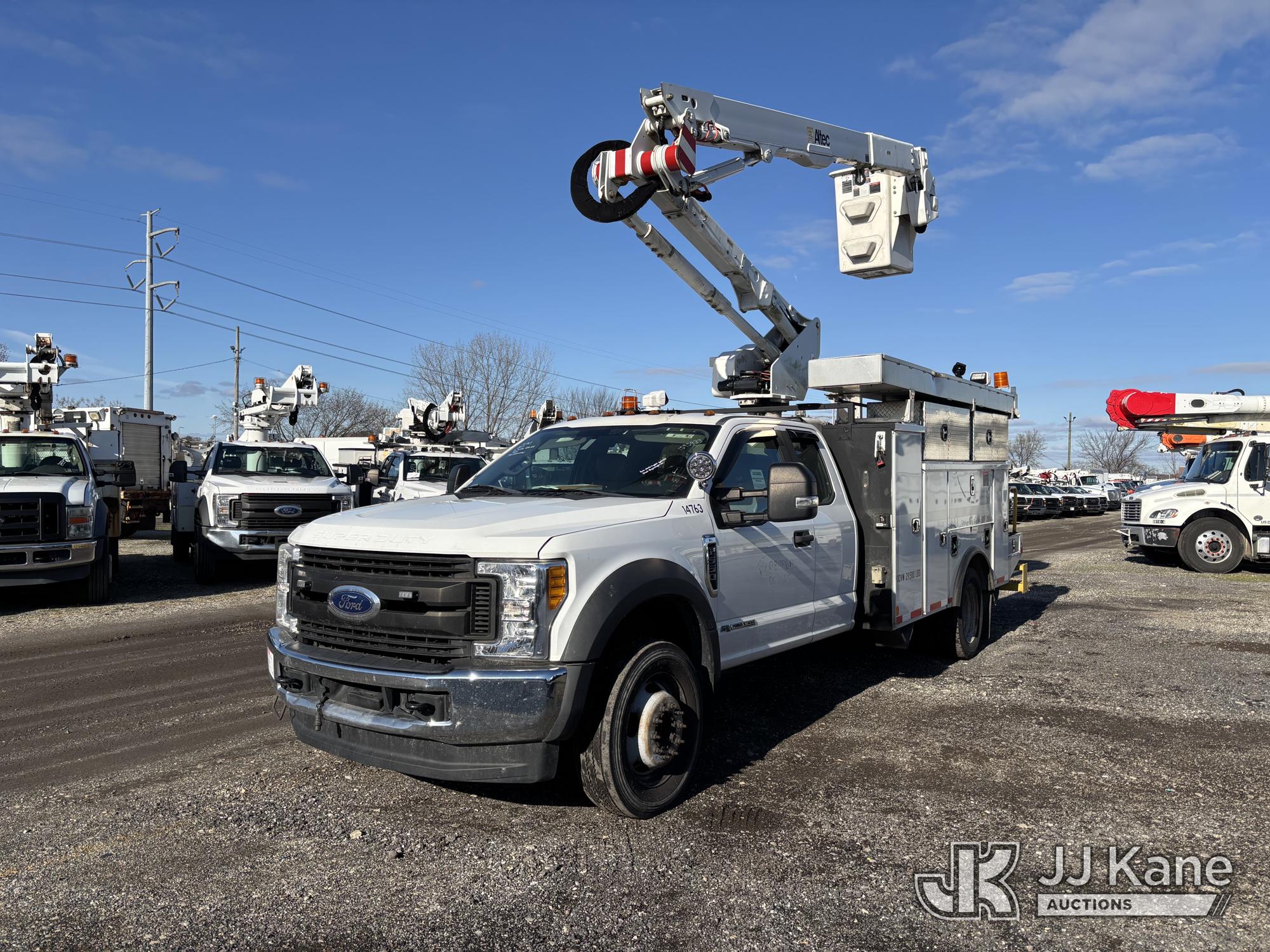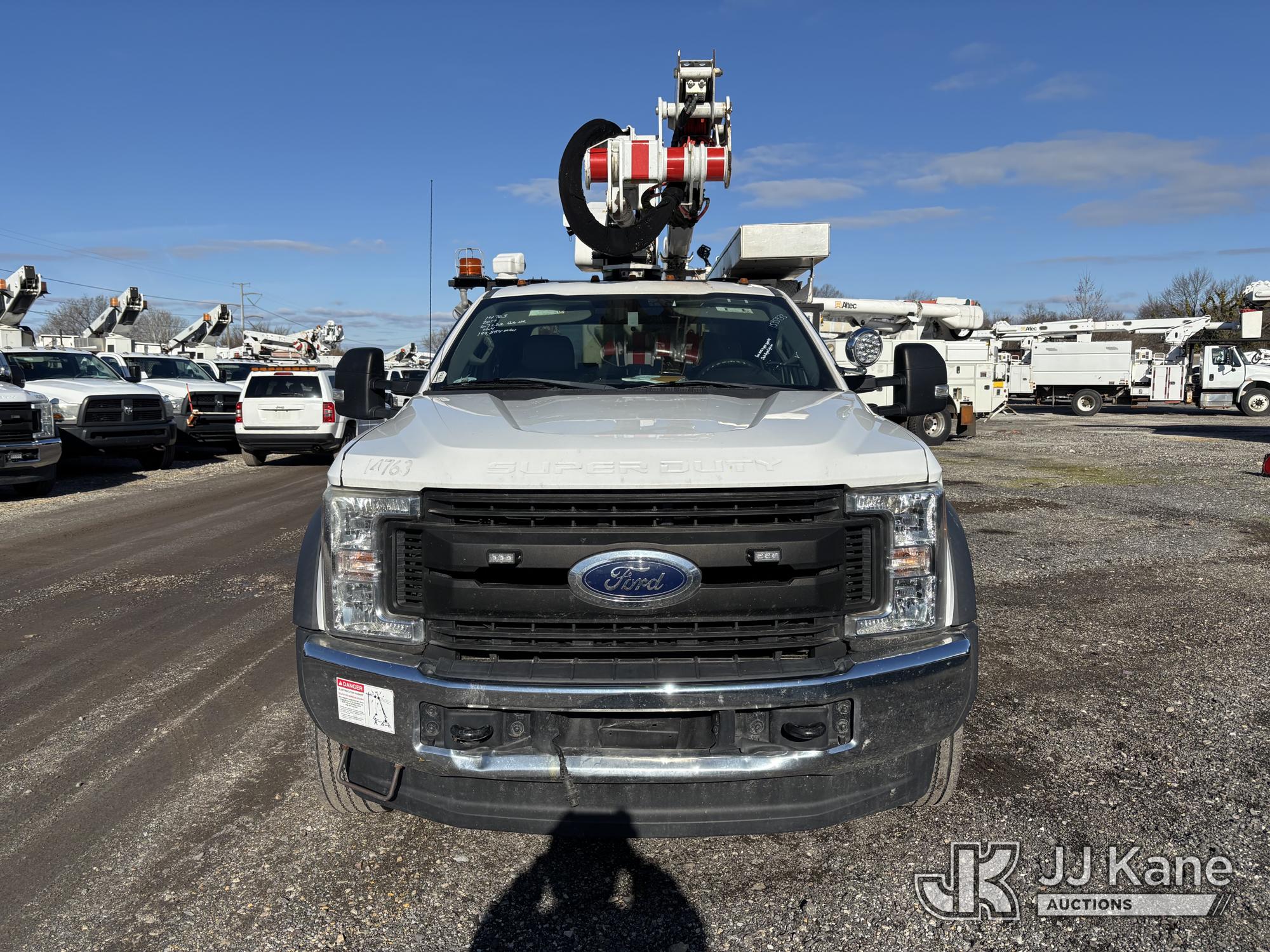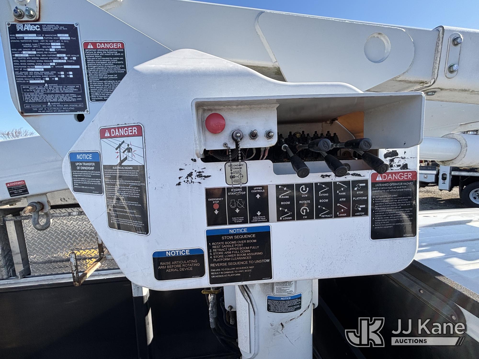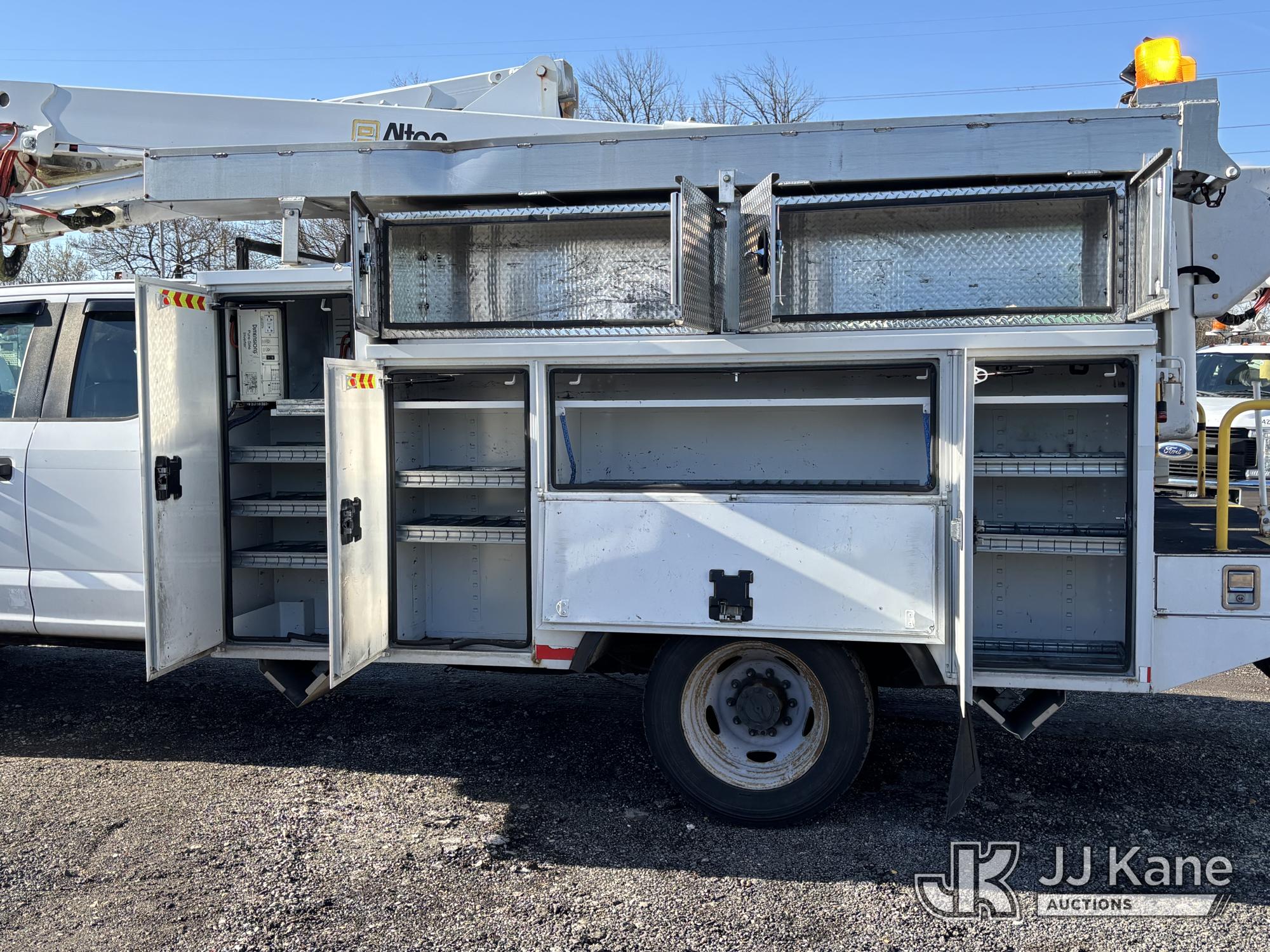 Altec AT40G, 45 ft, Articulating & Telescopic Bucket Truck s/n 0717EY2703, with Single-Man Bucket, mounted behind cab on 2017 Ford F550 4x4 Extended-Cab Service Truck, 6.7L diesel, Auto, A/C, (199,854 miles) (Runs, Moves & Upper Operates, Engine Light On, Front Bumper Dented) This is a Titled Item*