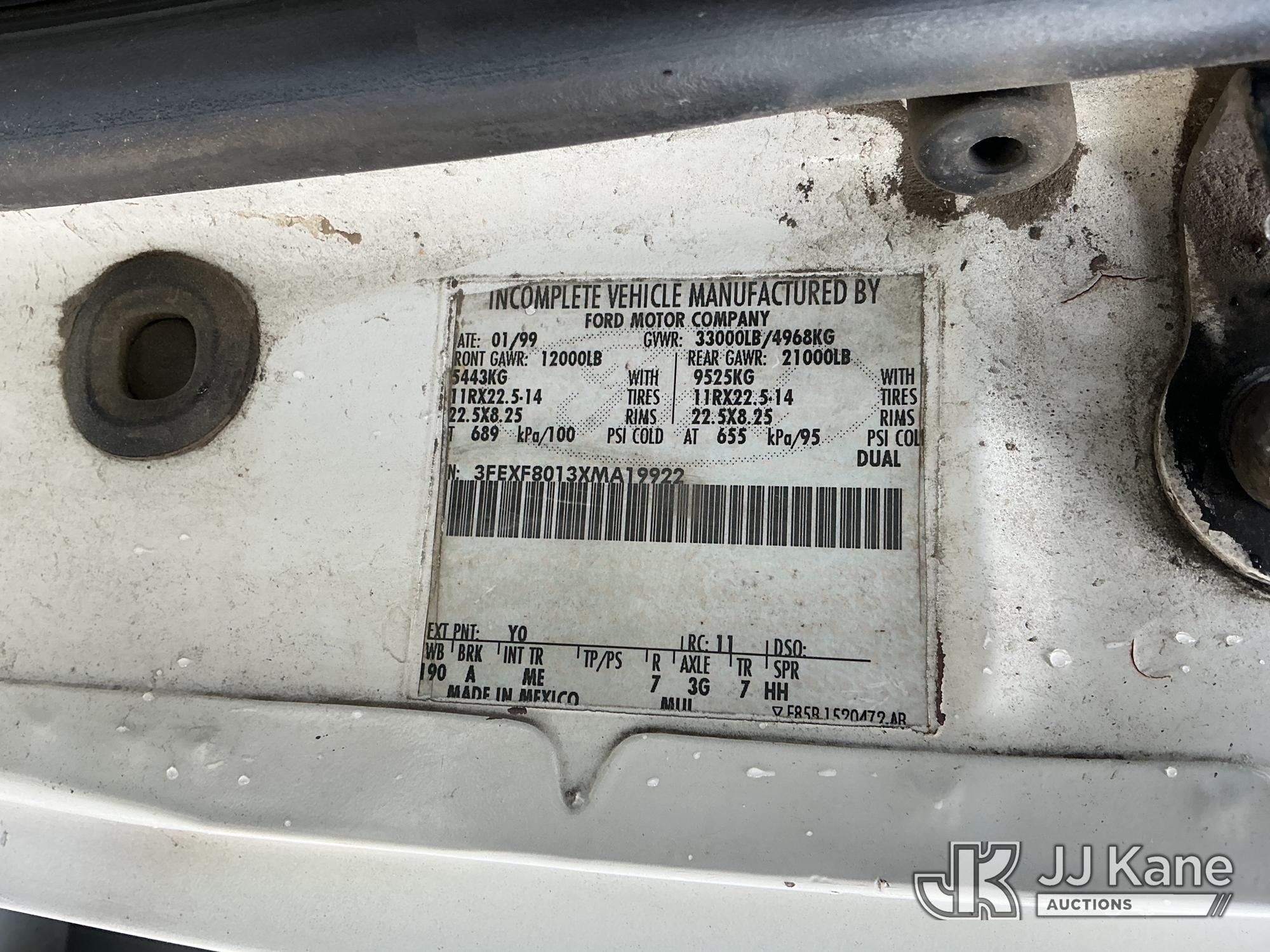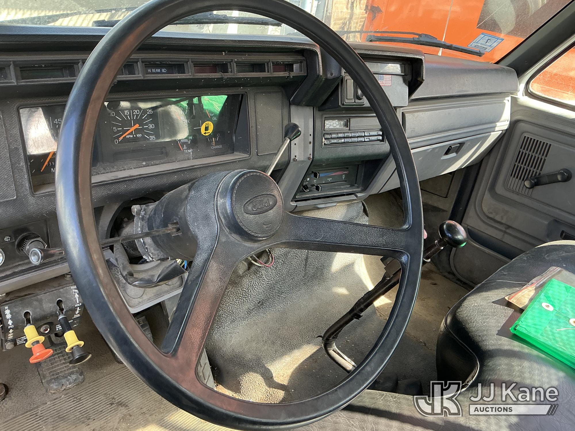 1999 Ford F800 Chipper Dump Truck, Cummins 5.9L 4X2, diesel, (Exempt from Odometer Disclosure - Reads 135,432 miles) (Not Running, No Crank, Ignition Issues, Drivetrain & Dump Conditions Unknown) This is a Titled Item*