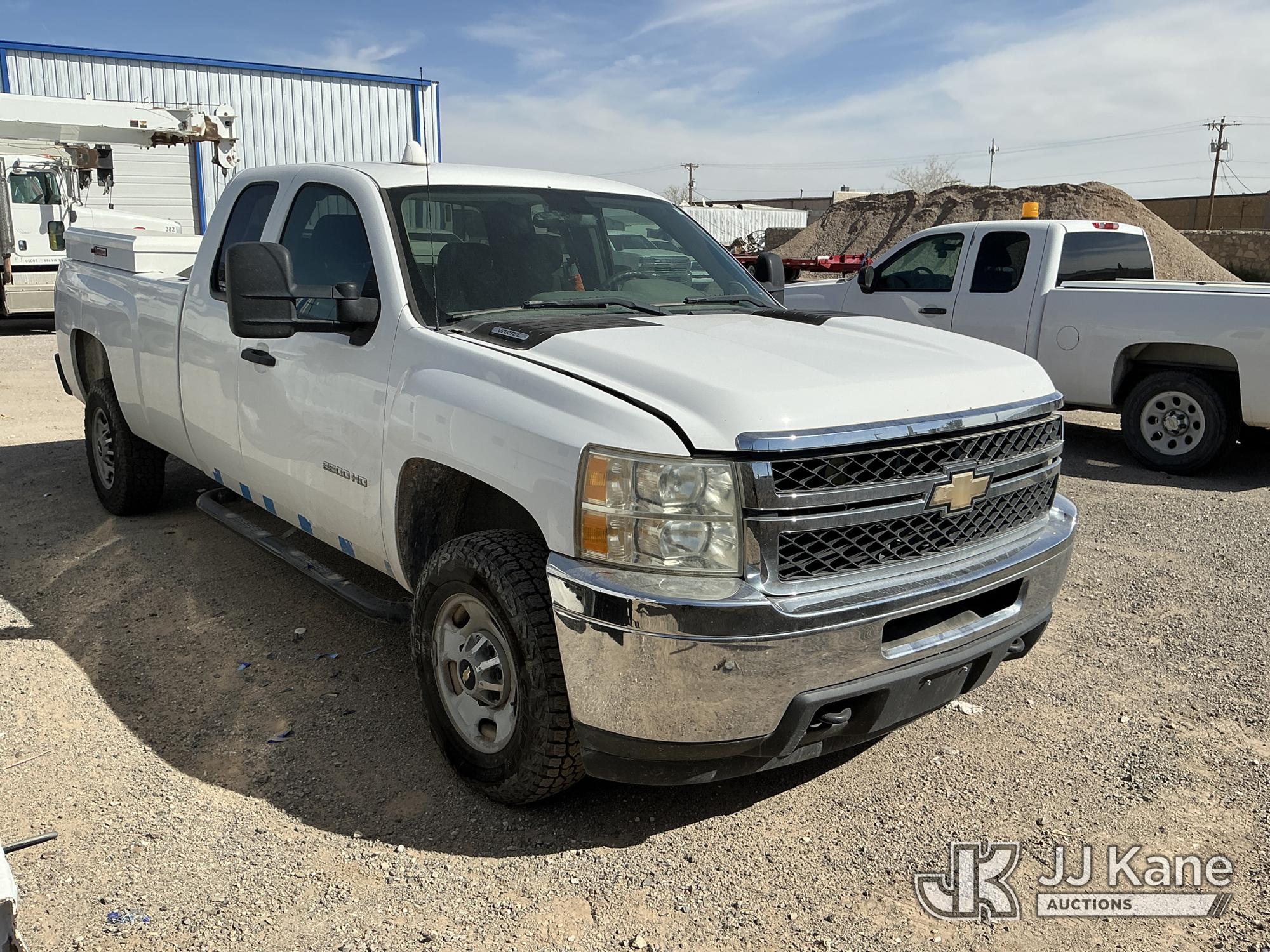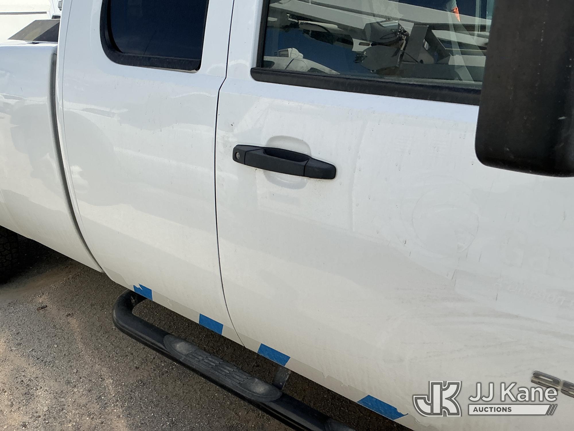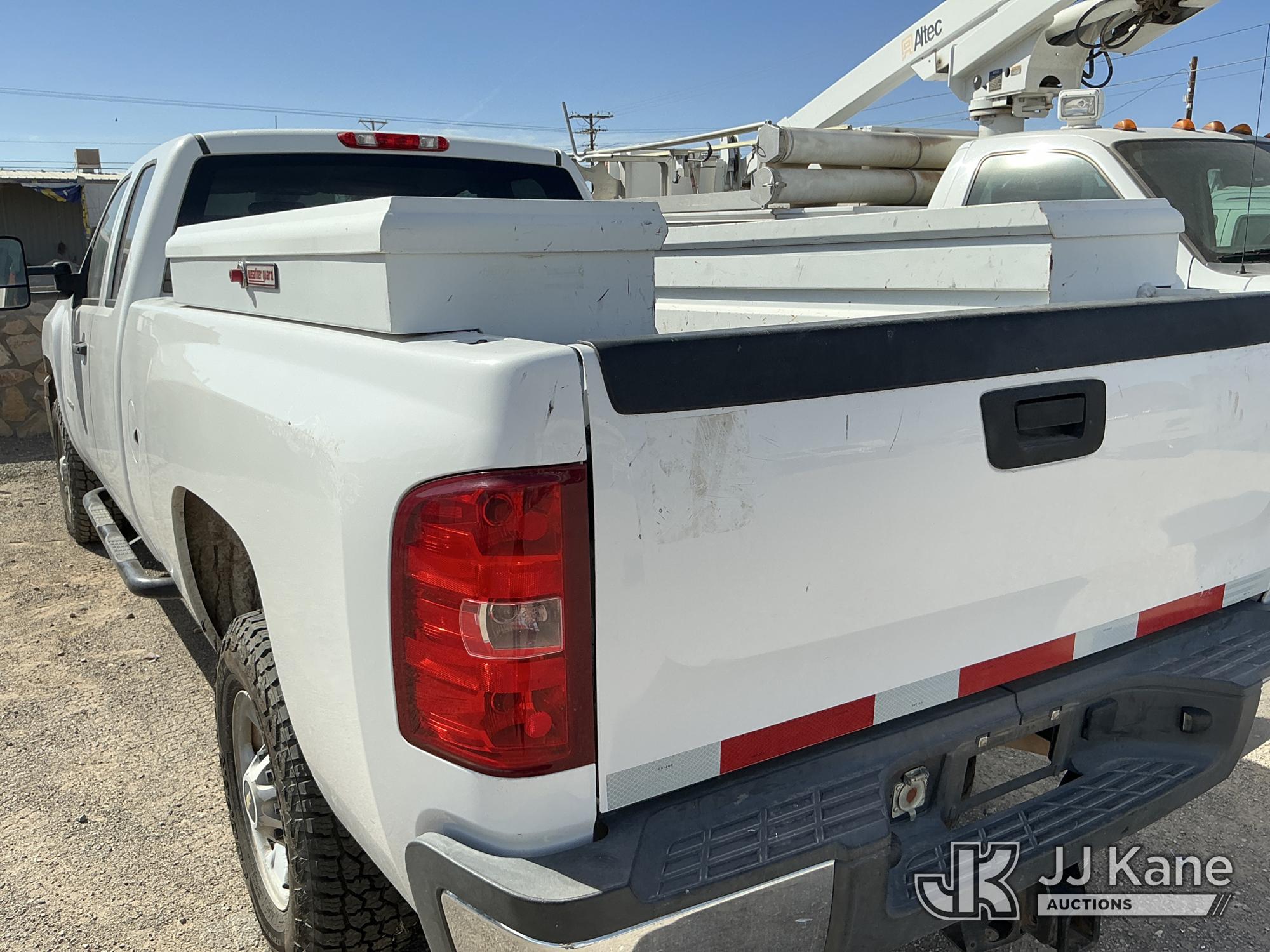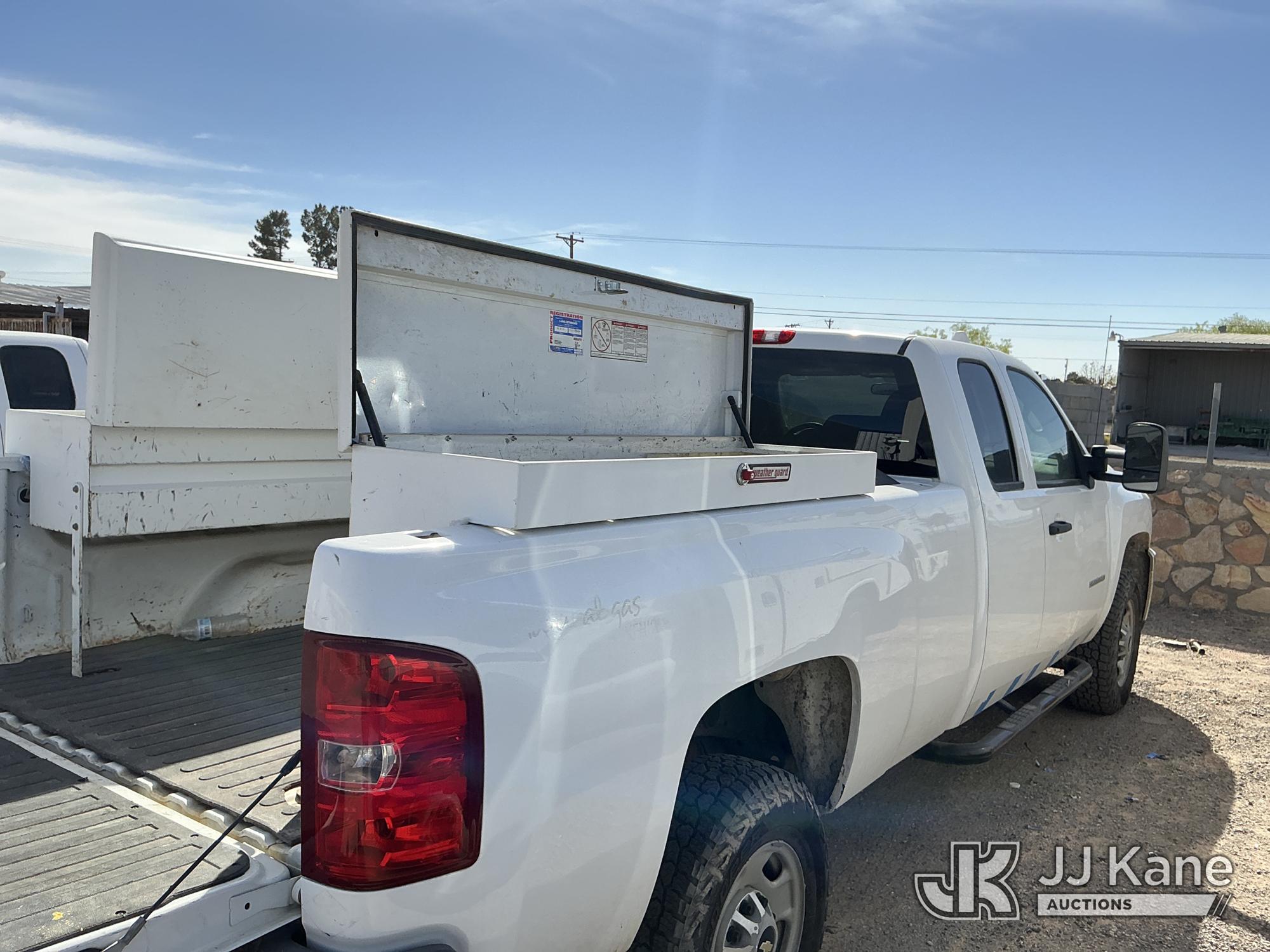 2011 Chevrolet Silverado 2500HD Extended-Cab Pickup Truck, 8-cyl gas, 4WD, 6-Speed Automatic, A/C, with two bed mounted toolboxes, bed mounted gas or chemical container enclosed inside of a metallic box , (177,242 miles) (Not Running, Condition Unknown, Cranks, Check Engine Light On, Paint & Body Damage) This is a Titled Item*