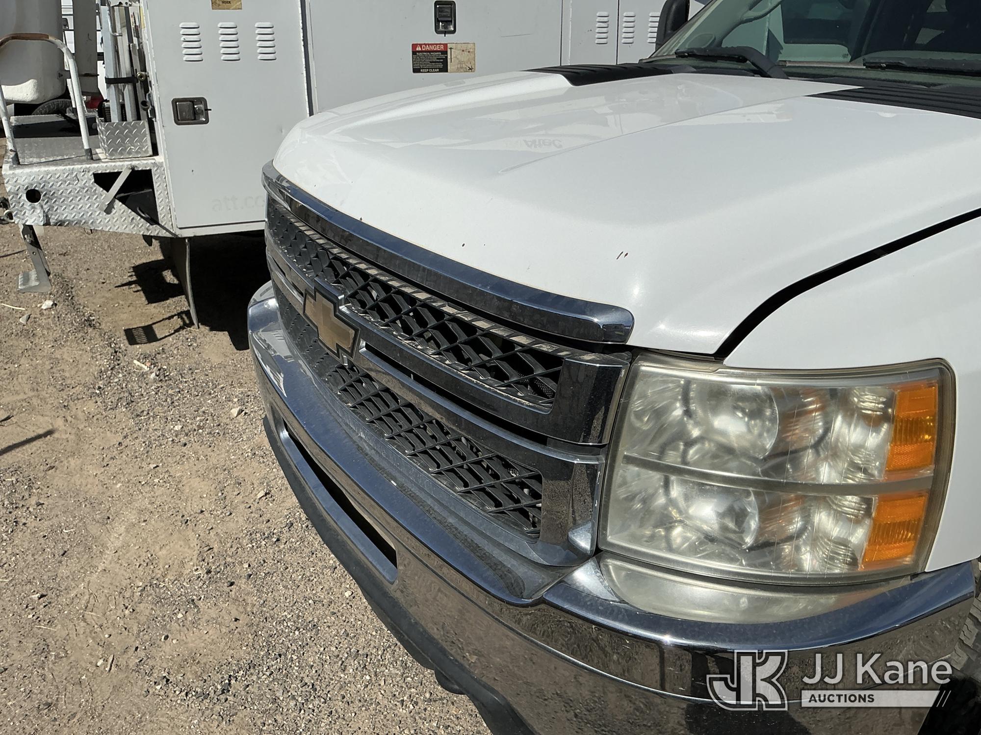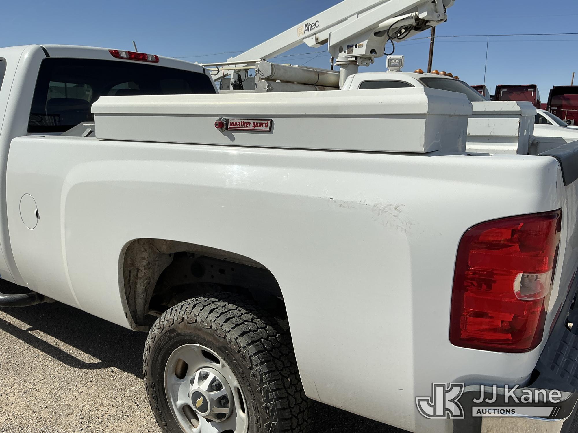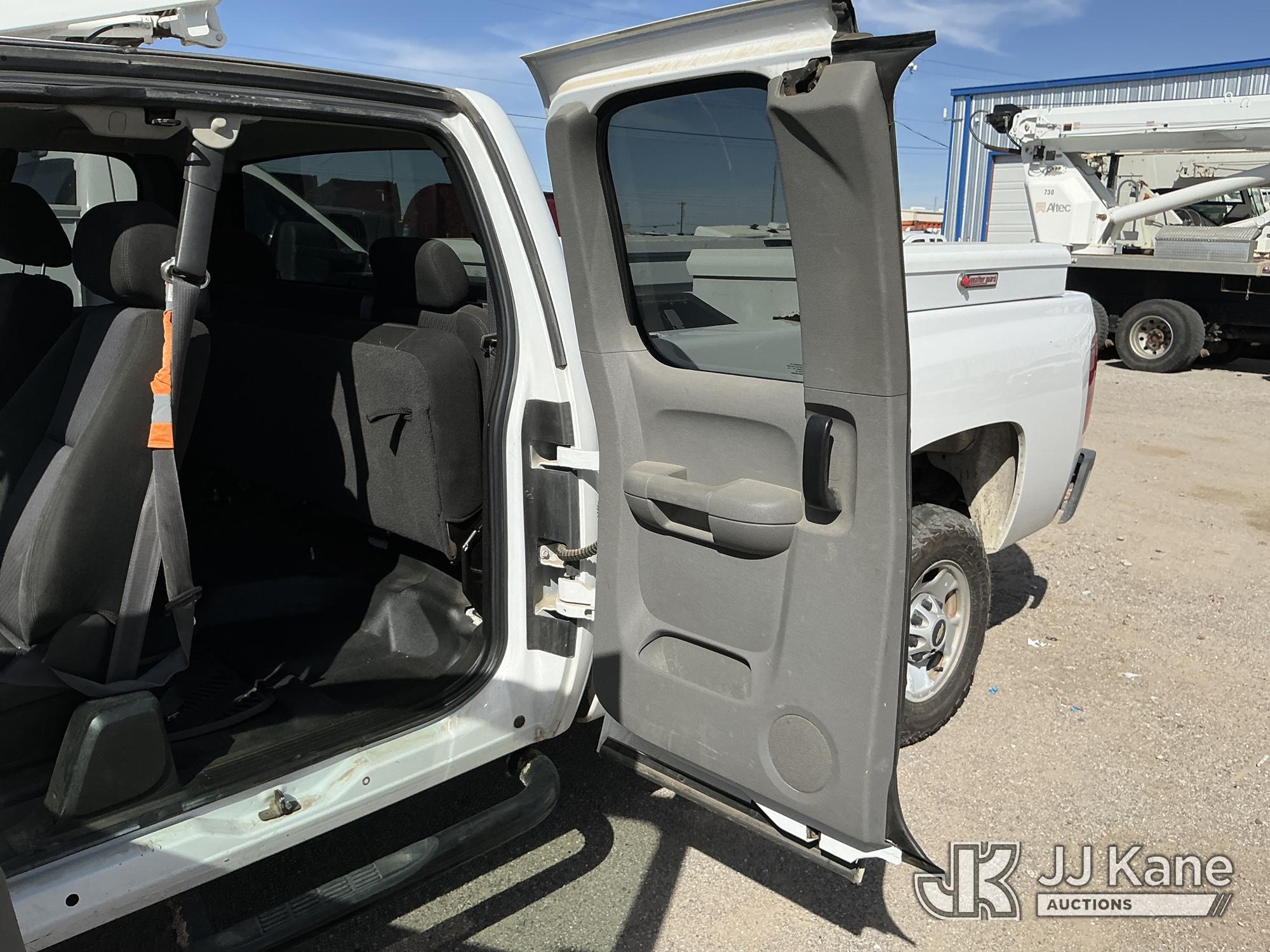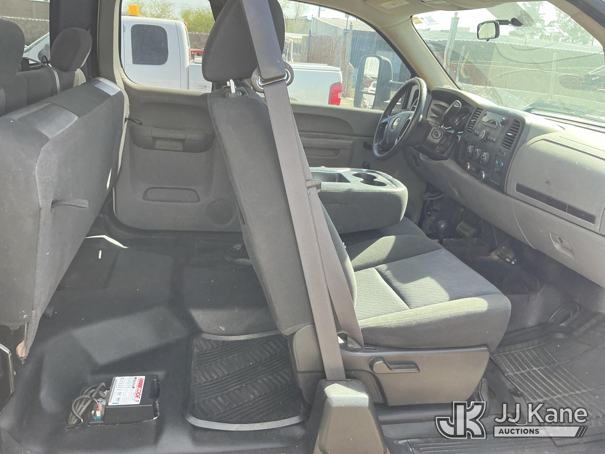 2011 Chevrolet Silverado 2500HD Extended-Cab Pickup Truck, 8-cyl gas, 4WD, 6-Speed Automatic, A/C, with two bed mounted toolboxes, bed mounted gas or chemical container enclosed inside of a metallic box , (177,242 miles) (Not Running, Condition Unknown, Cranks, Check Engine Light On, Paint & Body Damage) This is a Titled Item*