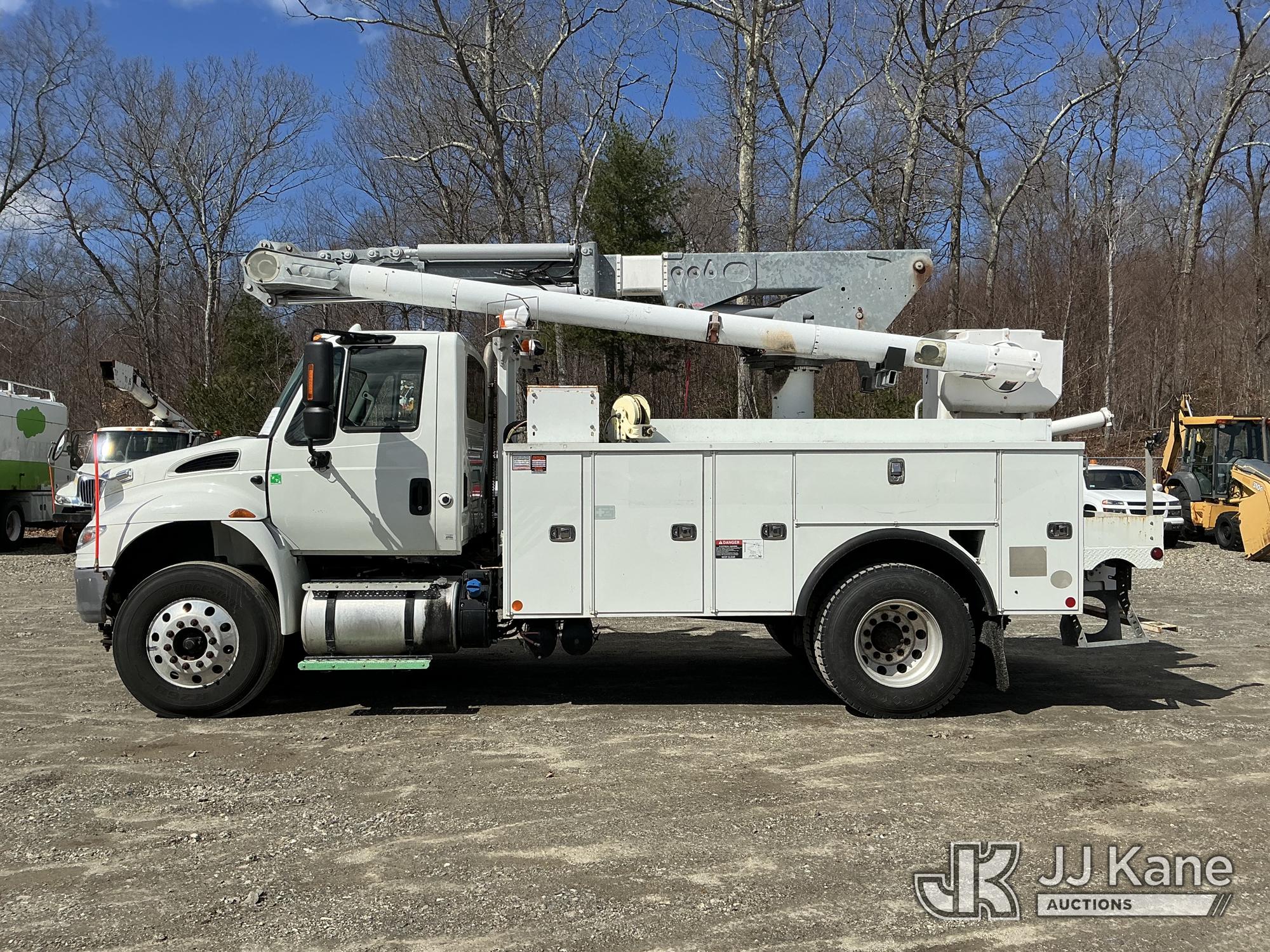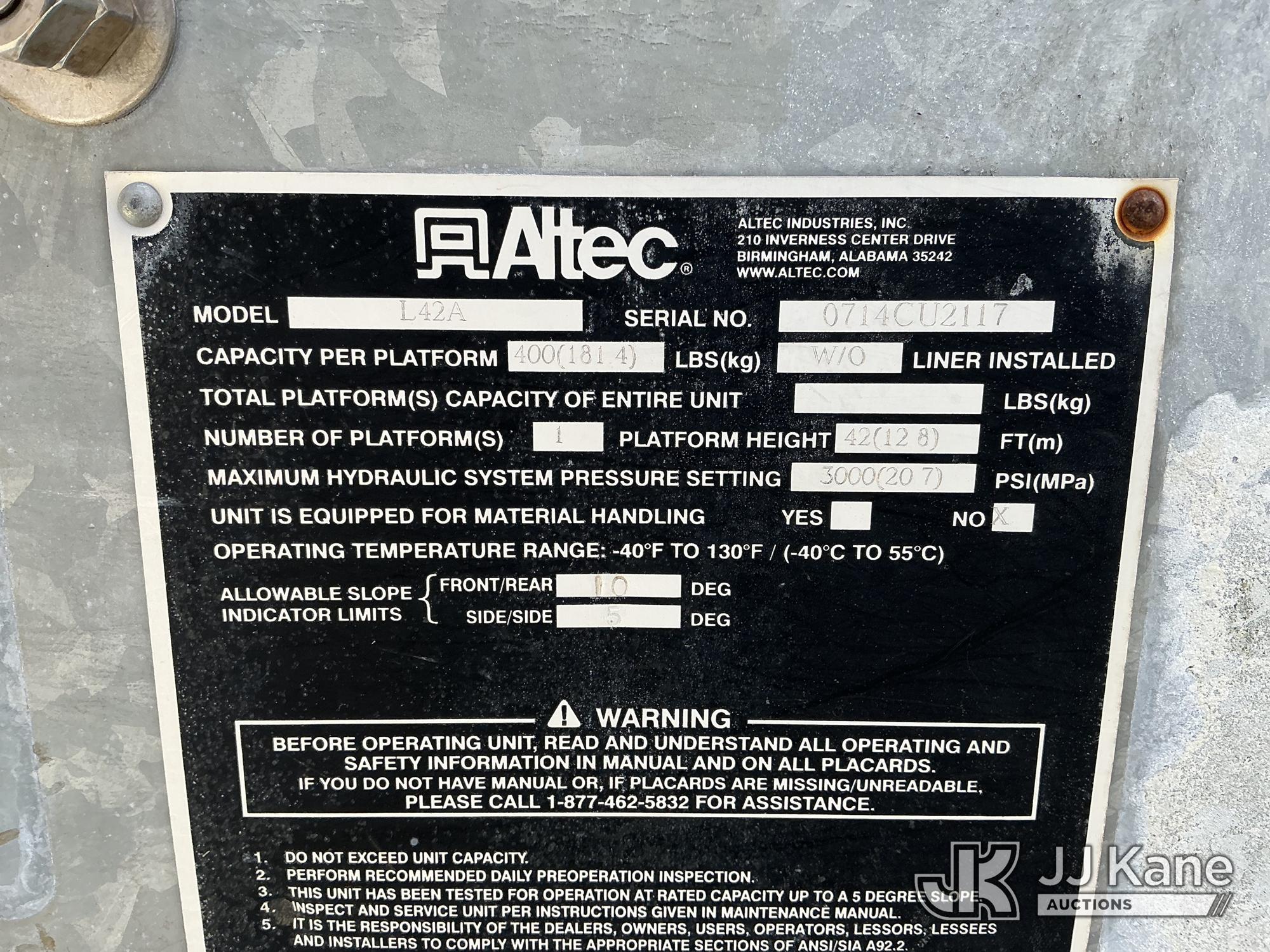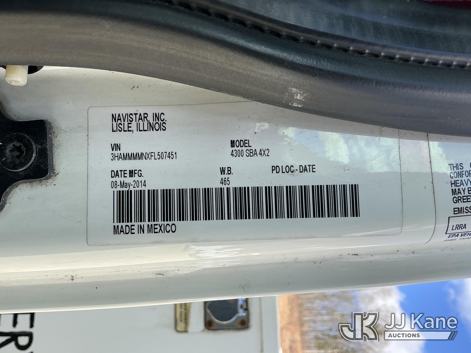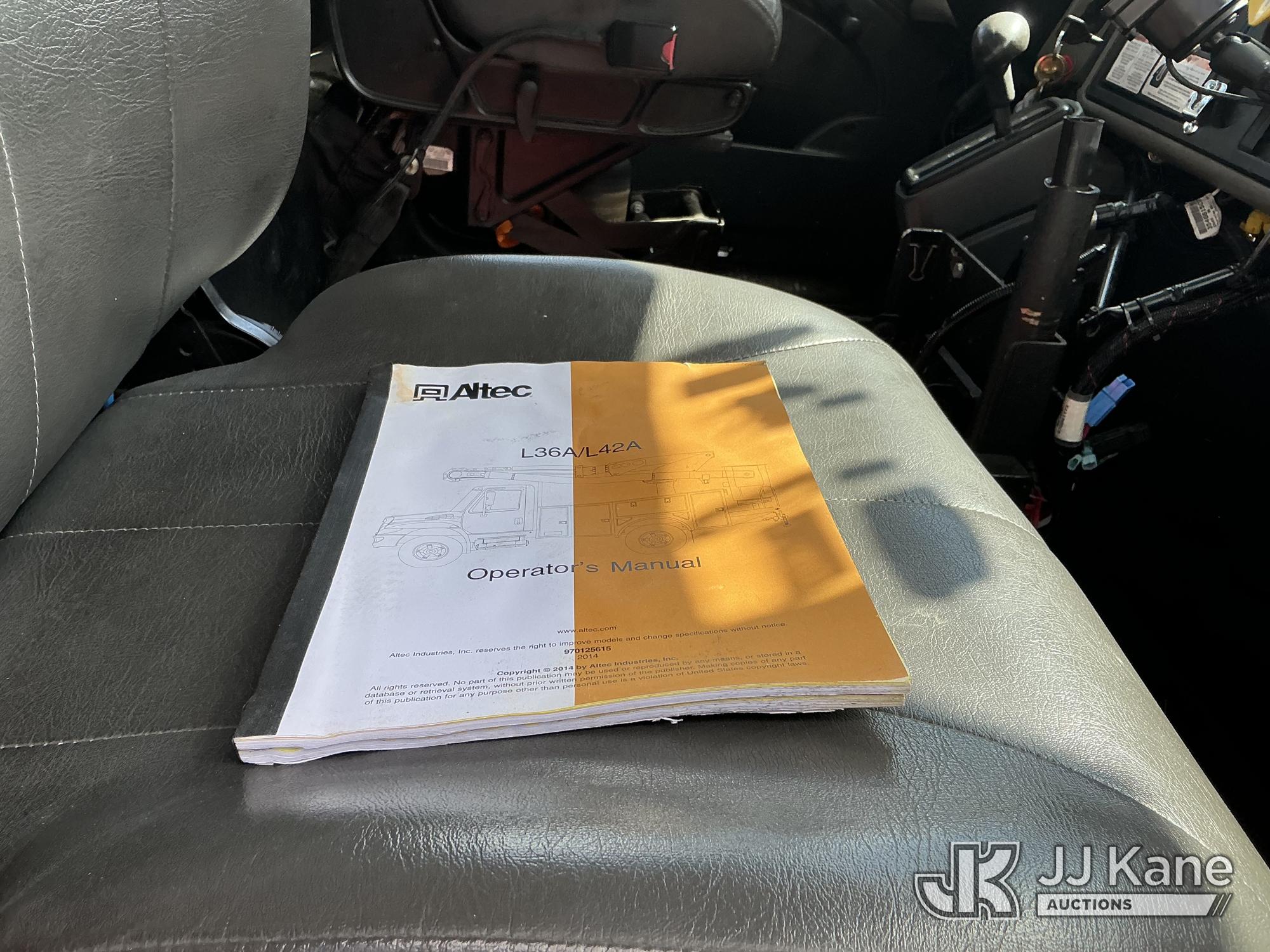 Altec L42A, 47 ft, Over-Center Bucket Truck s/n 0714-CU2117, with galvanized lower boom & single-man bucket, center mounted on 2015 International DuraStar 4300 Utility Truck, Cummins 6.7L 4X2, diesel, Auto, A/C, with Altec JEMS system aerial device system, (122,699 miles) Note: Jobsite Energy Management System is an integrated plug-in system that uses stored electrical energy to power the aerial device, tools and exportable power, and provides cab comfort. The energy storage system is recharged by plugging into shore power or by the truck’s internal combustion engine. (Runs, Moves & Upper Operates) (Reads 19,274 hours) This is a Titled Item*