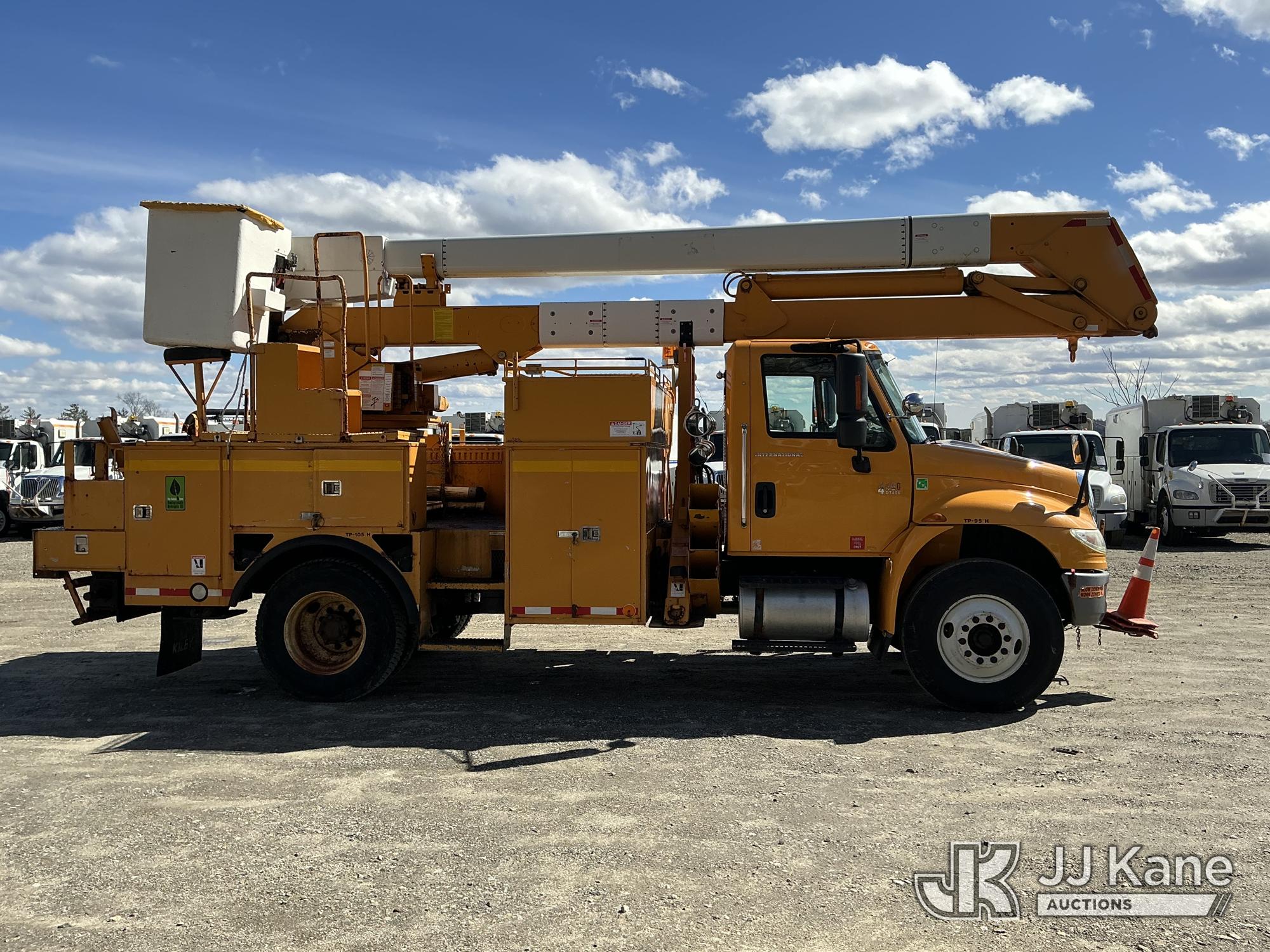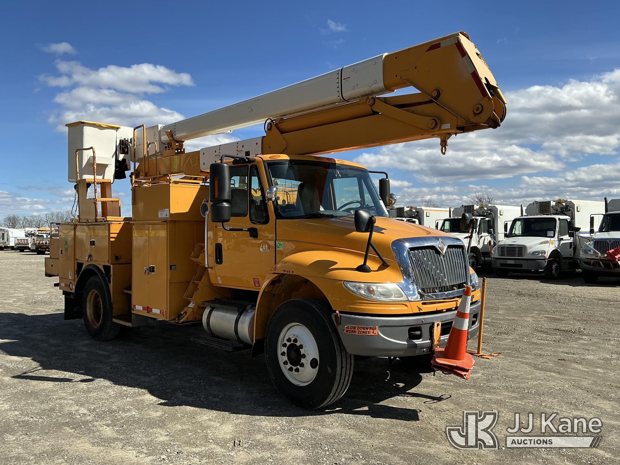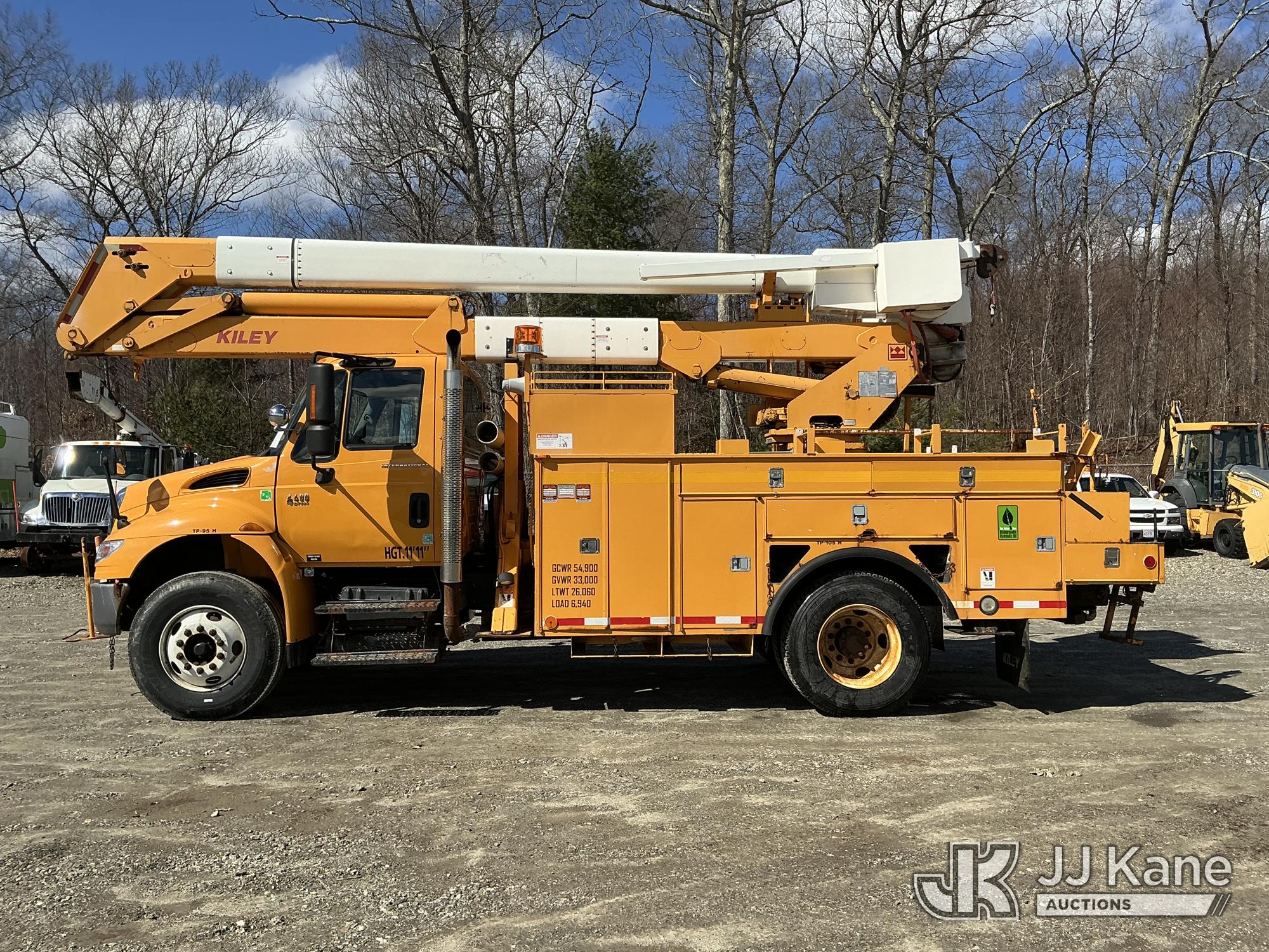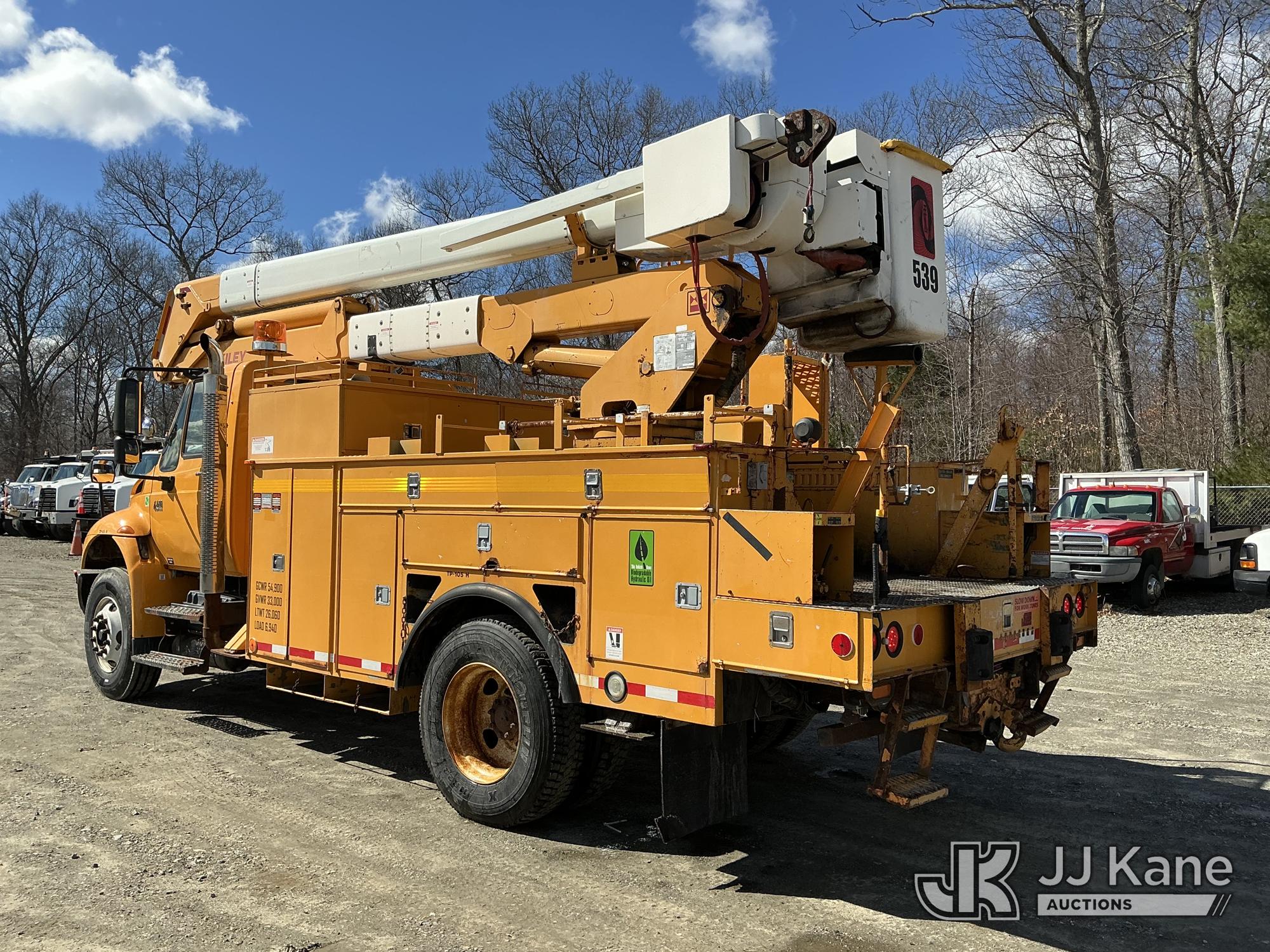 HiRanger HR50-M, 55 ft, Material Handling Bucket Truck s/n 2061030916, with single-man bucket & 4 hyd outriggers, rear mounted on 2007 International 4400 Utility Truck, DT466 4X2, diesel, Auto, A/C, (120,808 miles) (Runs & Moves) (Damaged/Missing Front Drive Side Outrigger Control, Upper Condition Unknown) (Reads 12,538 hours) This is a Titled Item*
