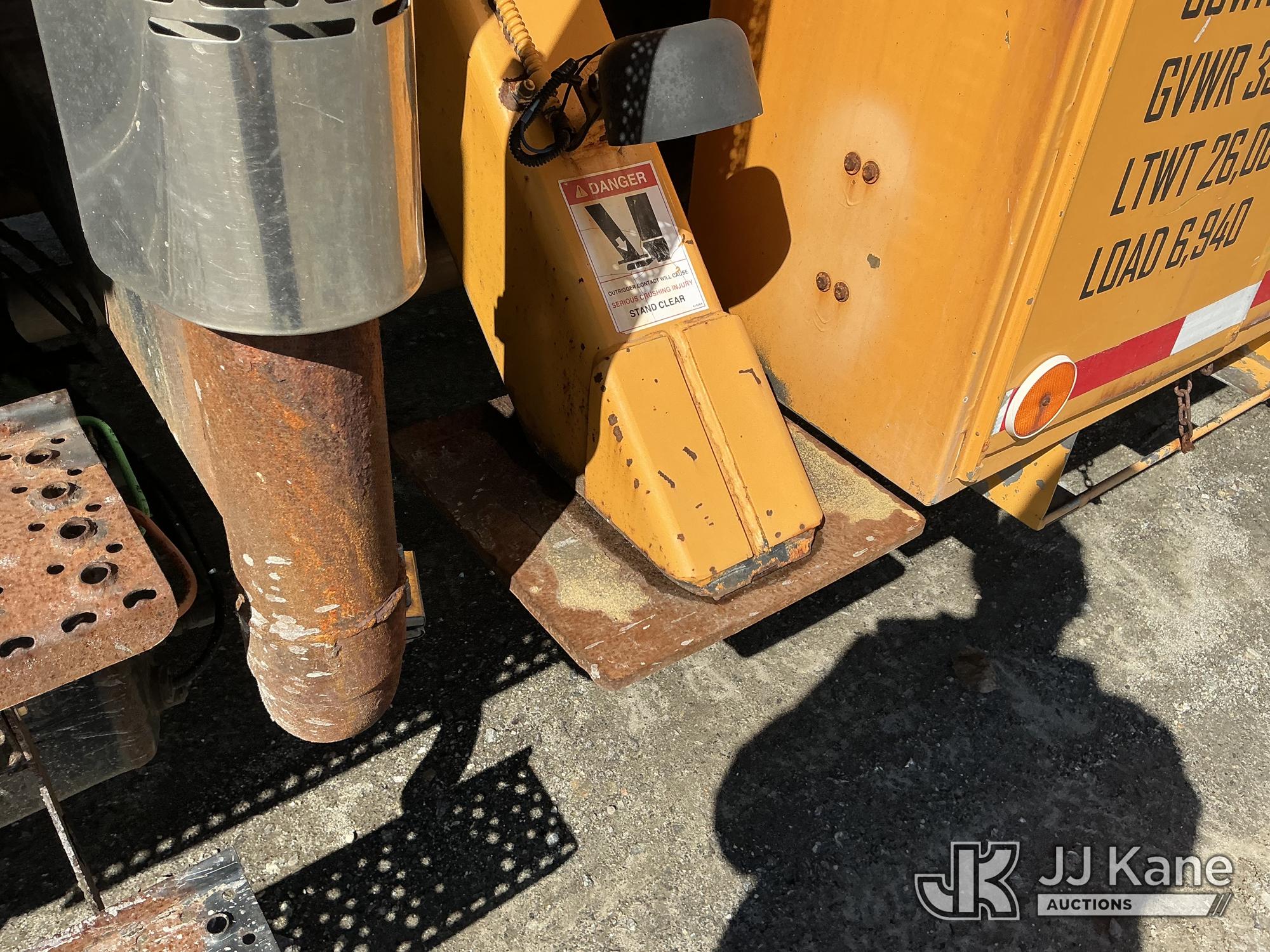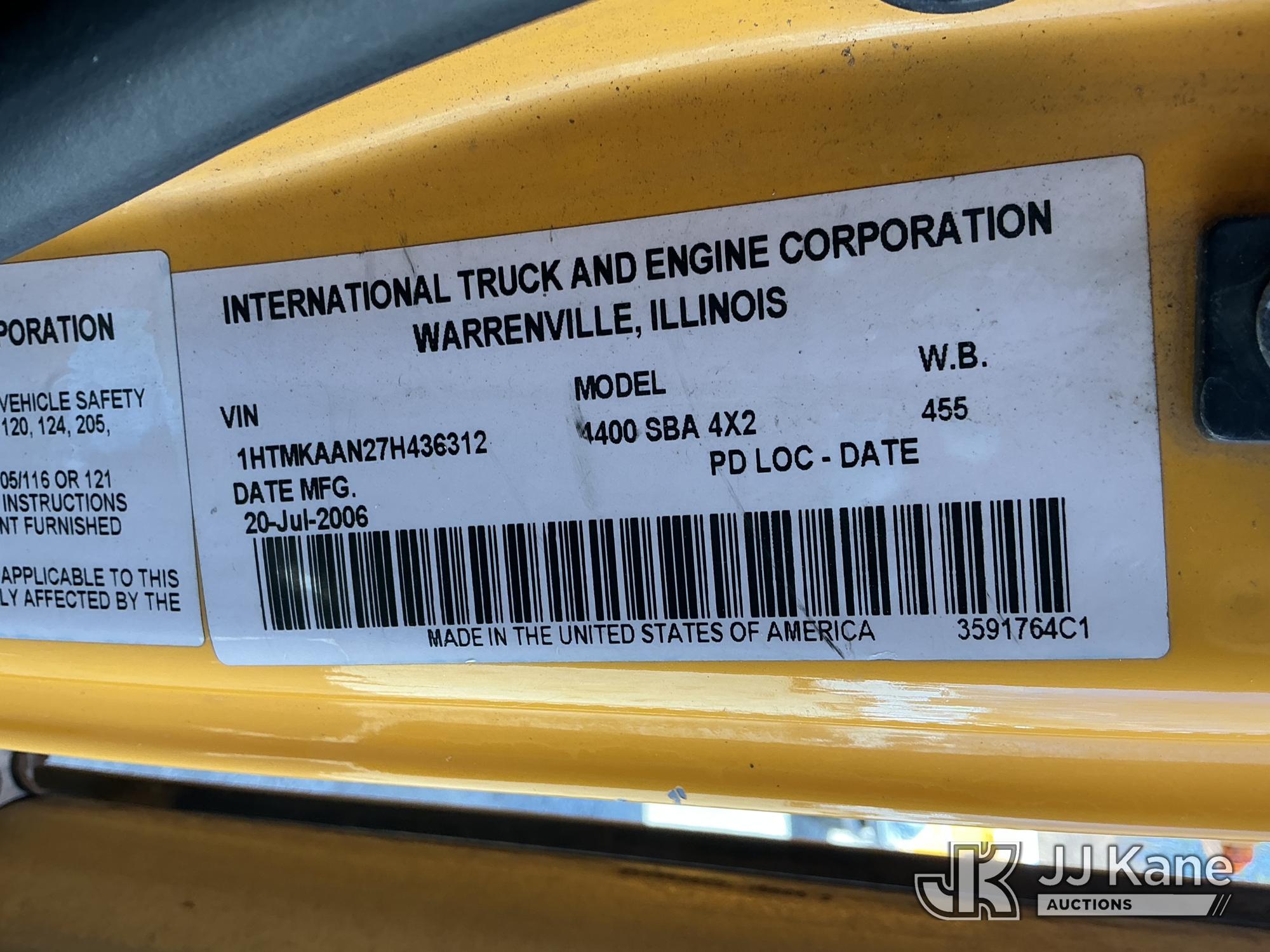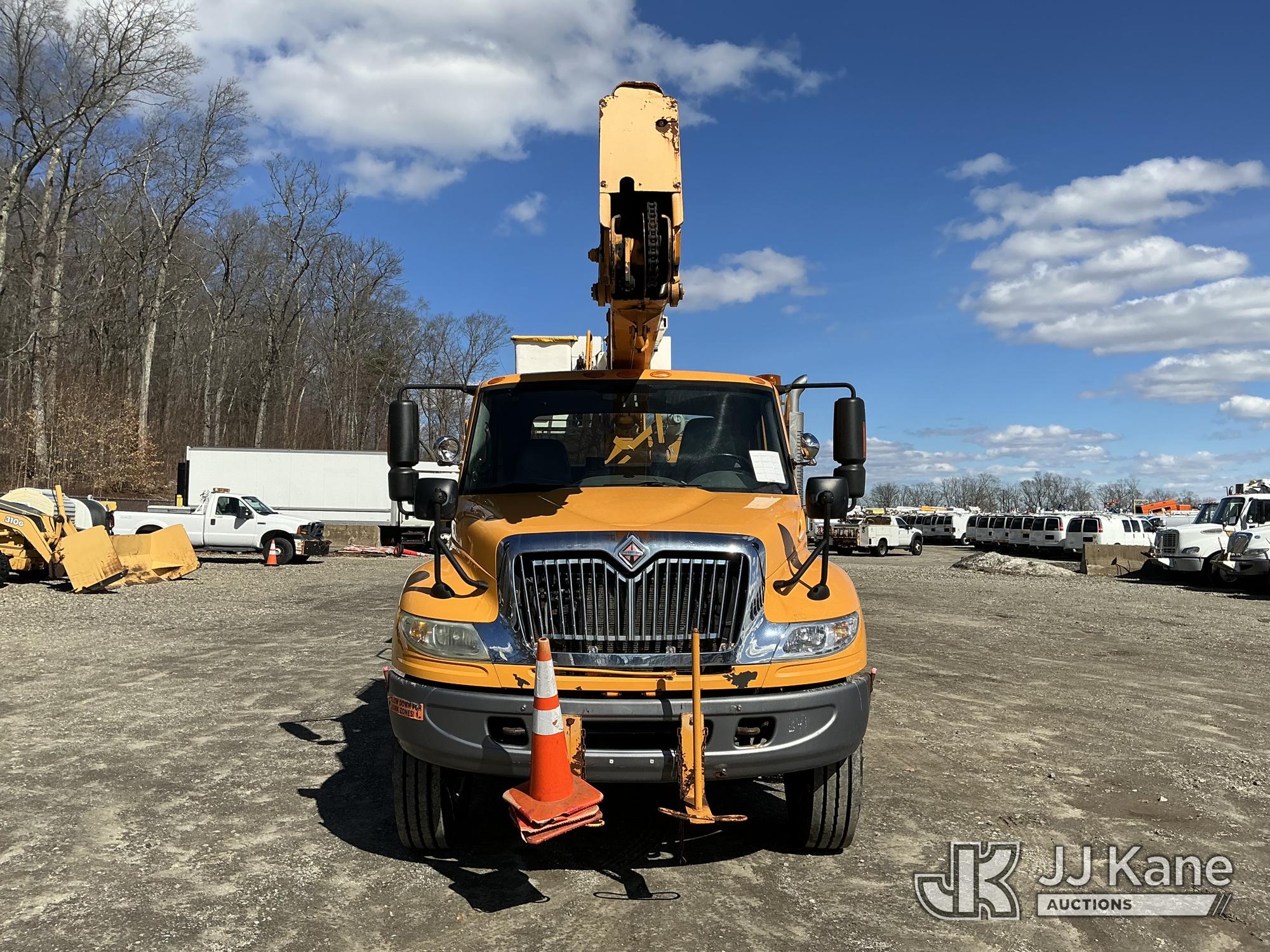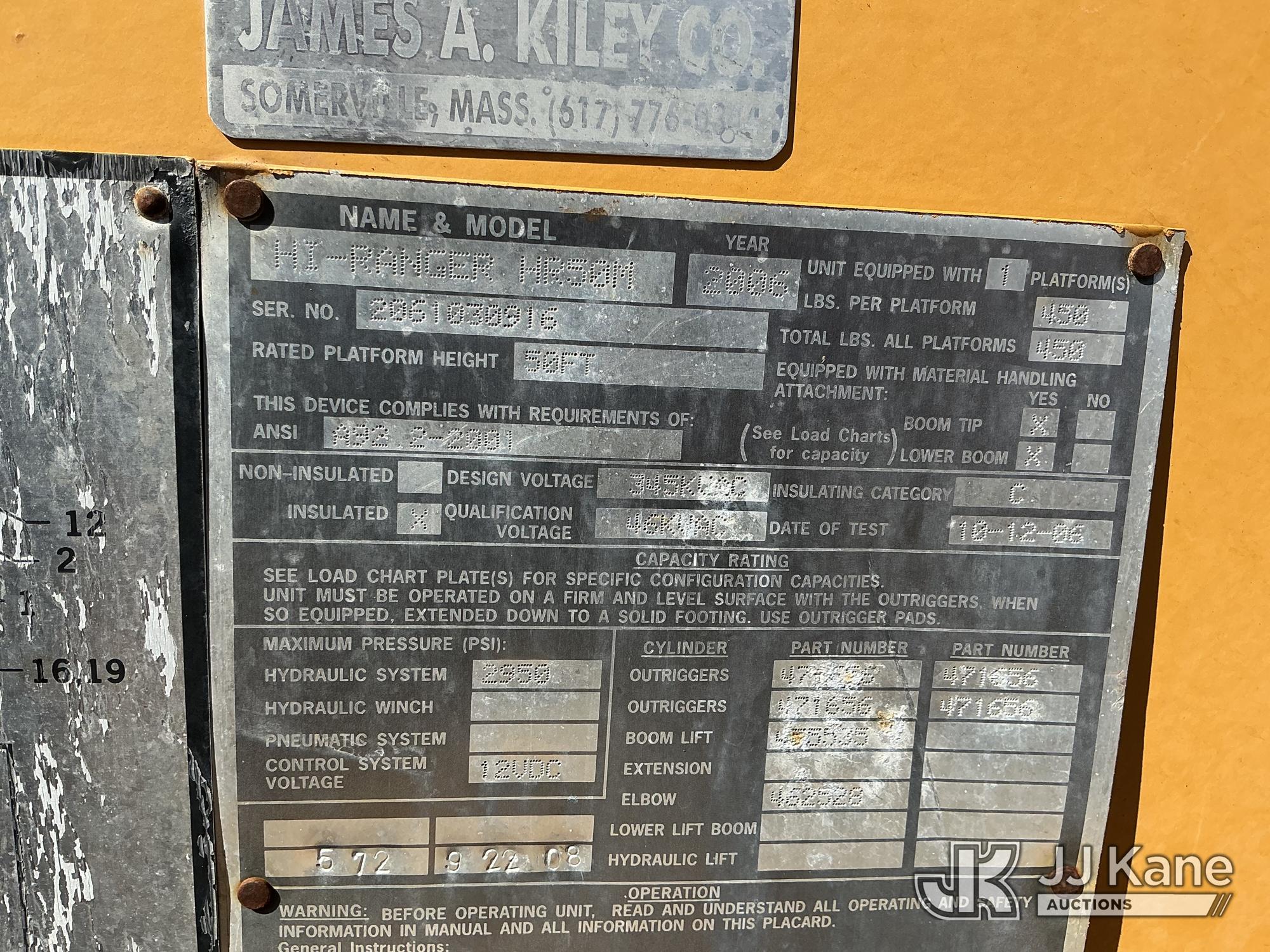 HiRanger HR50-M, 55 ft, Material Handling Bucket Truck s/n 2061030916, with single-man bucket & 4 hyd outriggers, rear mounted on 2007 International 4400 Utility Truck, DT466 4X2, diesel, Auto, A/C, (120,808 miles) (Runs & Moves) (Damaged/Missing Front Drive Side Outrigger Control, Upper Condition Unknown) (Reads 12,538 hours) This is a Titled Item*