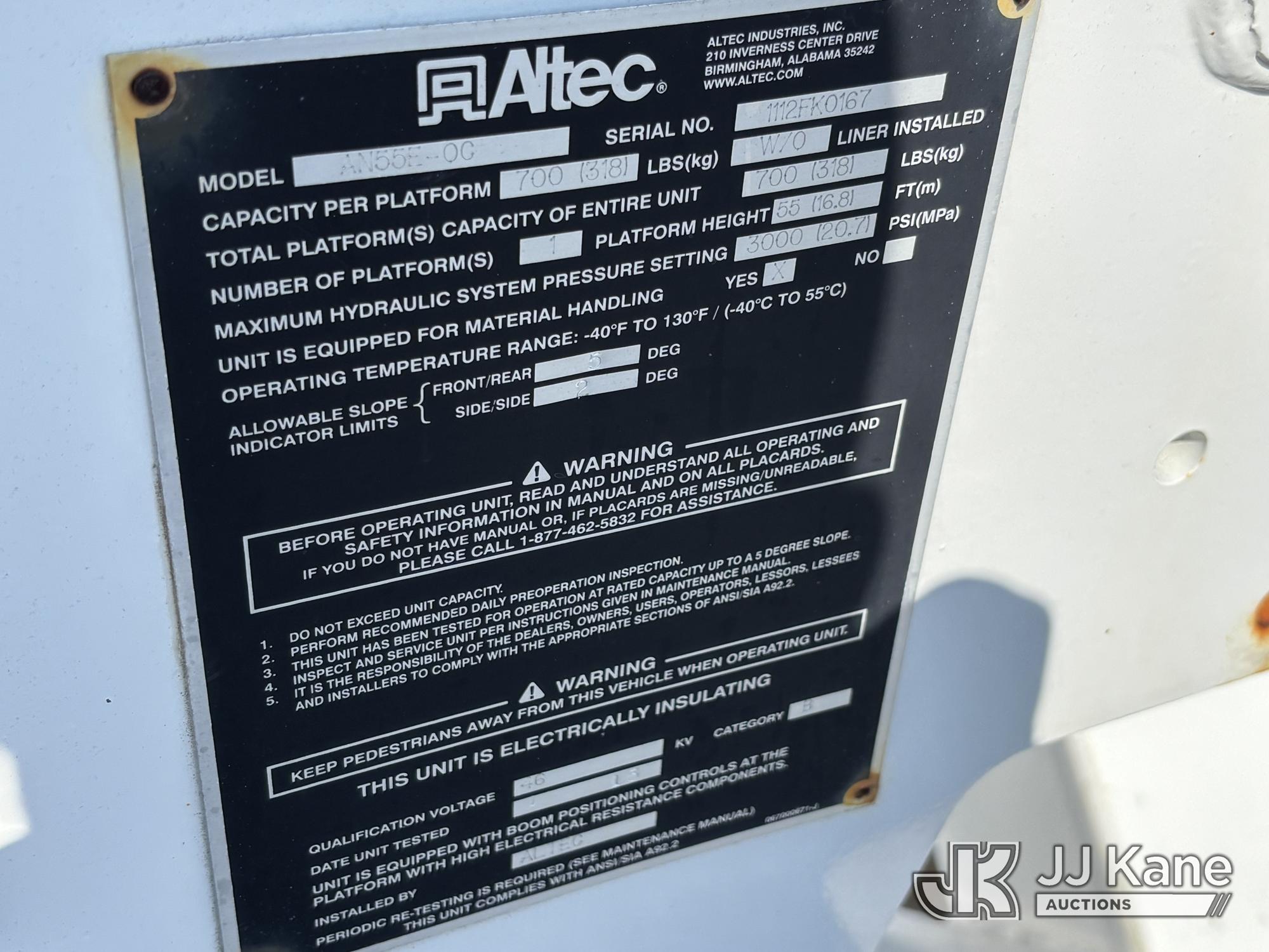 Altec AM55E-OC, 60 ft, Material Handling Bucket Truck s/n 1112FK0167, with Two-Man Bucket & 4 Outriggers, rear mounted on 2013 Freightliner M2 106 Utility Truck, 6.7L Diesel, 4X2, Auto, A/C, (11,393 miles) (Runs, Moves & Upper Operates) This is a Titled Item*
