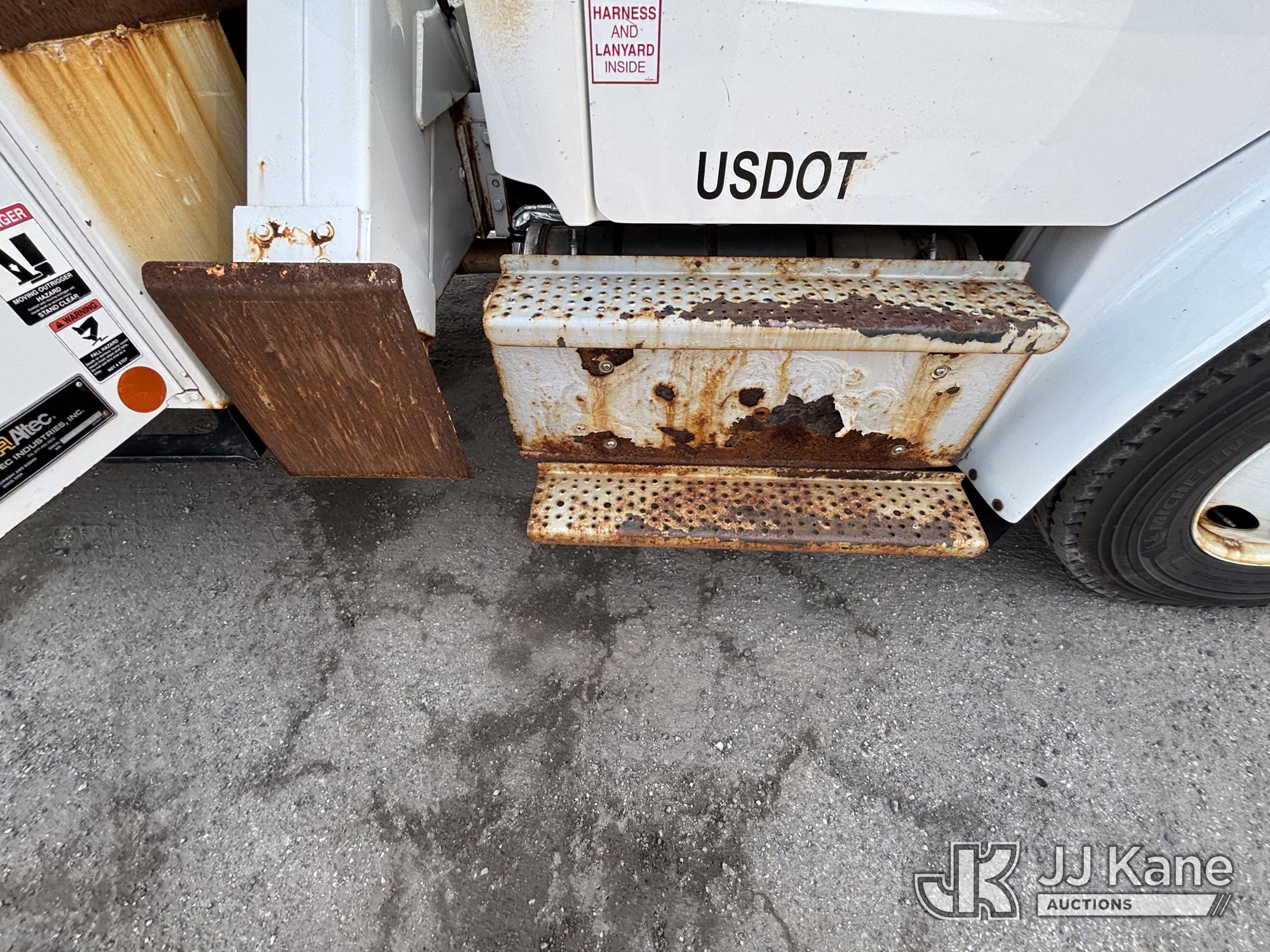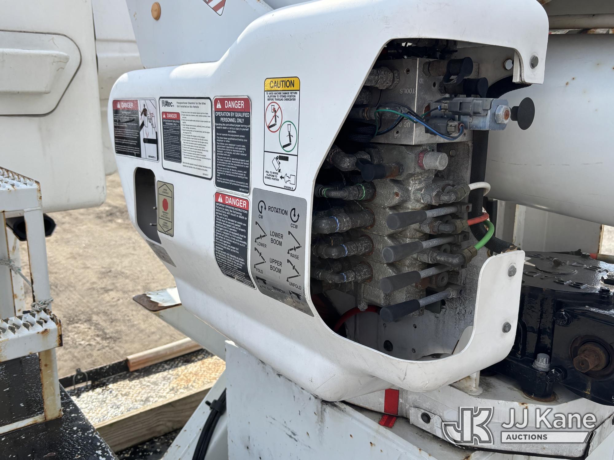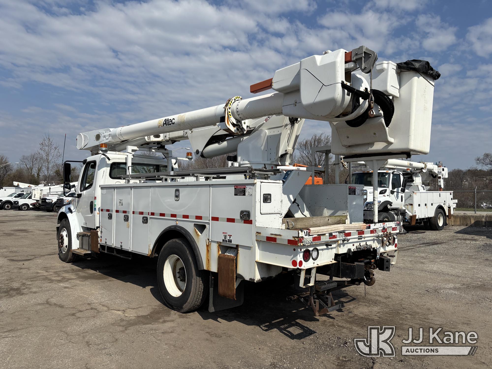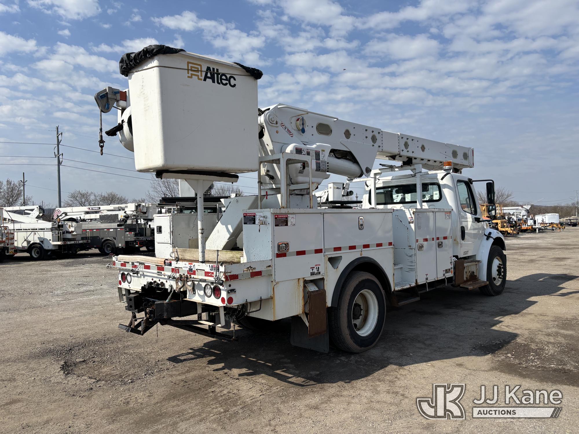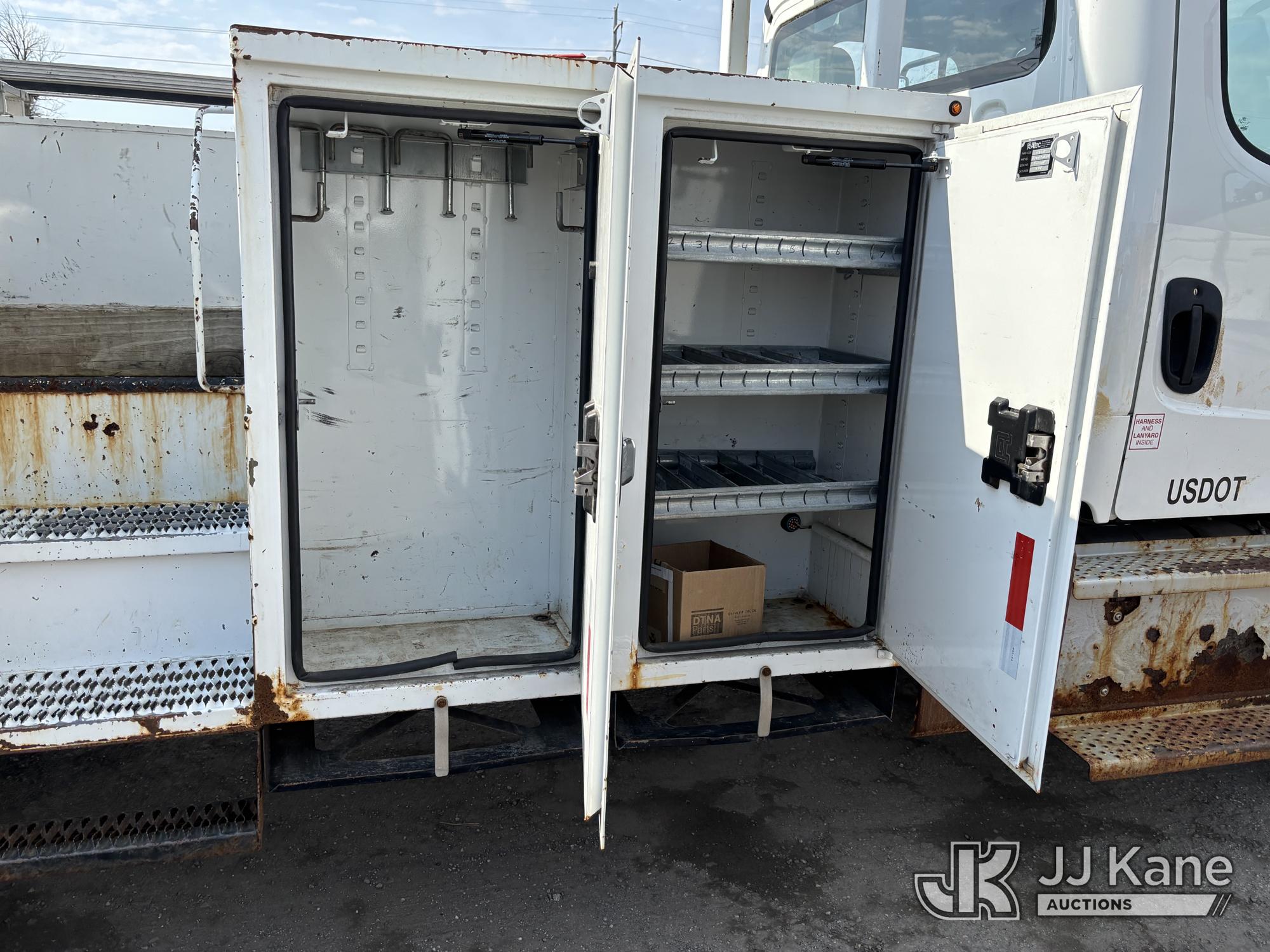 Altec AM55E-MH, 60 ft, Over-Center Material Handling Bucket Truck s/n 0117DM6507, with Two-Man Bucket & 4 Outriggers, rear mounted on 2017 Freightliner M2 106 Utility Truck, 6.7L diesel, 4X2, Auto, A/C, (58,281 miles) (Runs Moves & Upper Condition Unknown, Body & Rust Damage On Utility Body, Hydraulic Leak On Rear Lines, Don’t Operate PTO) This is a Titled Item*