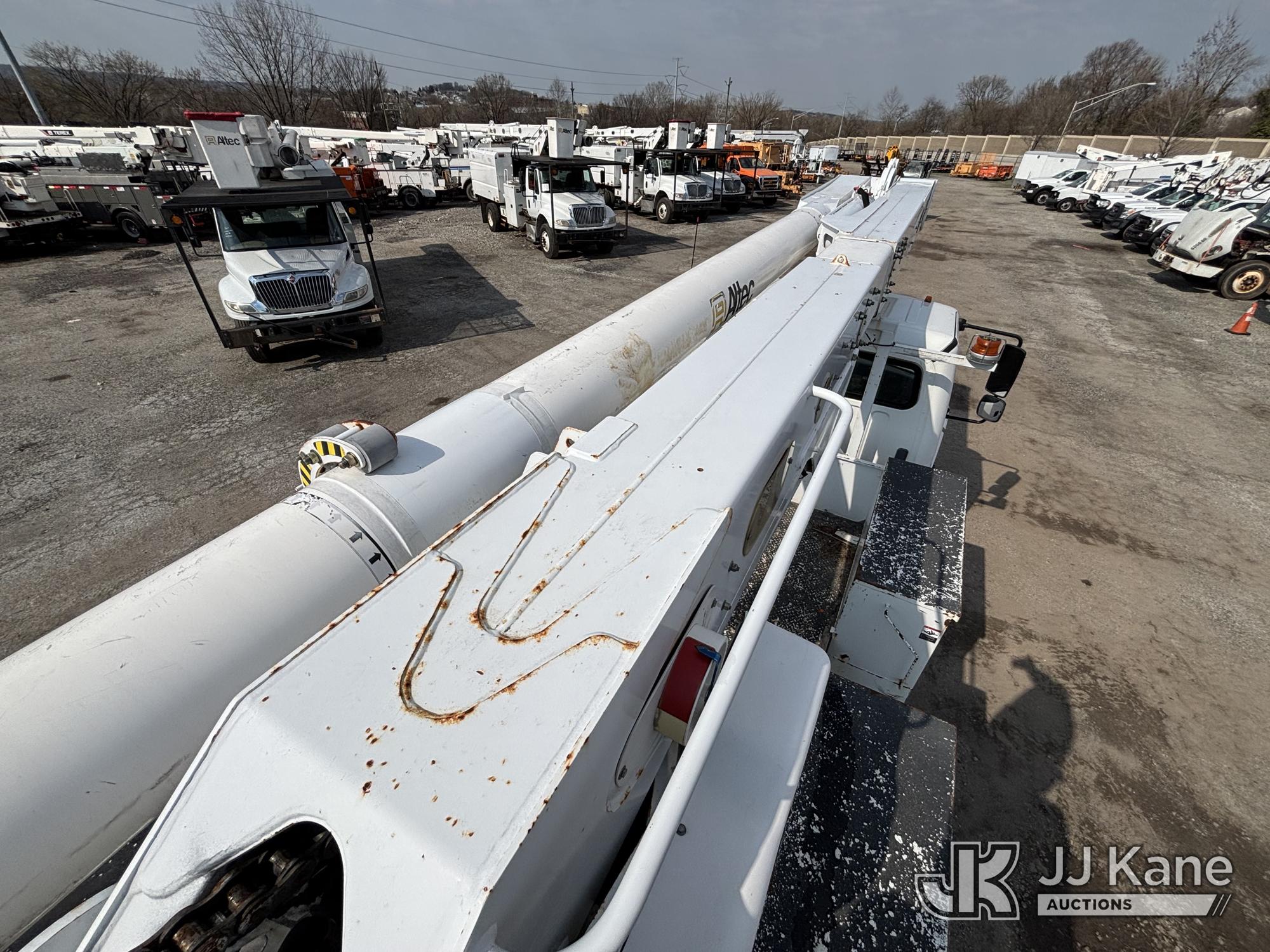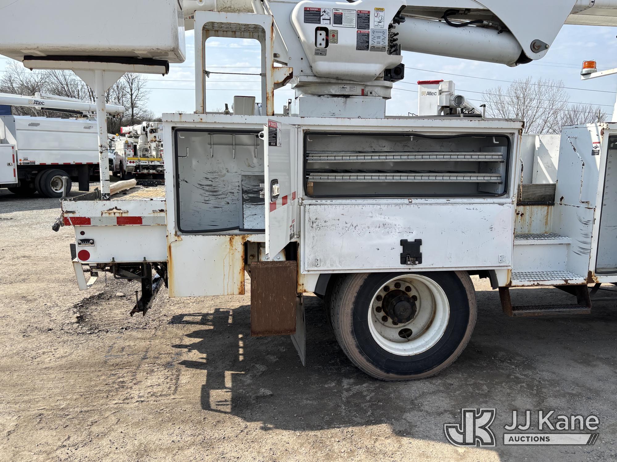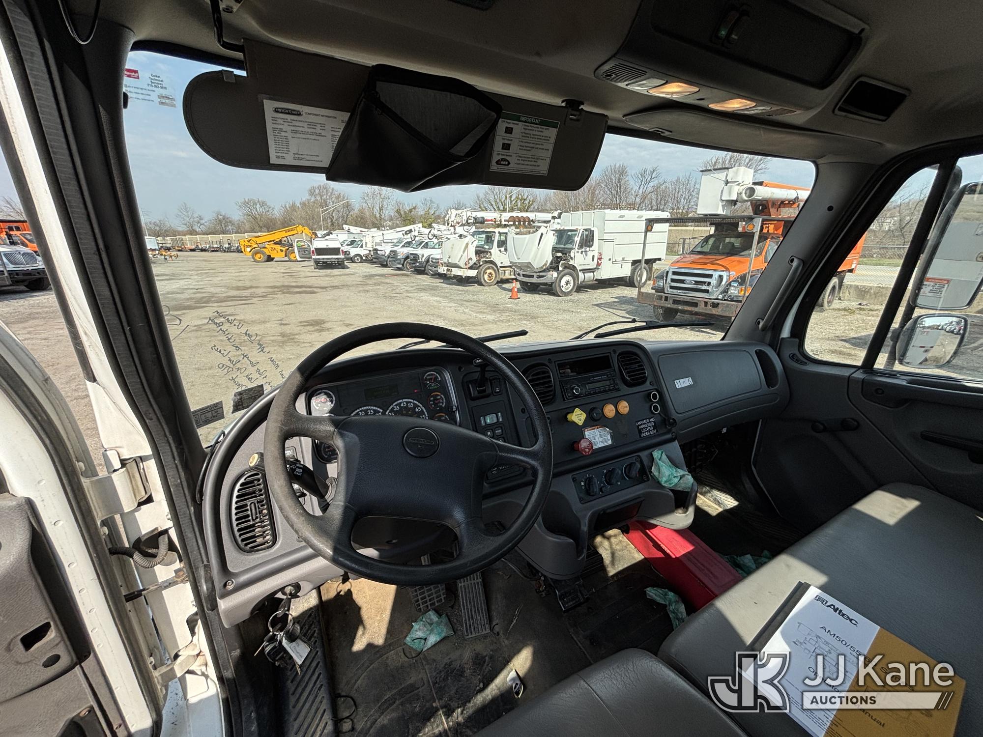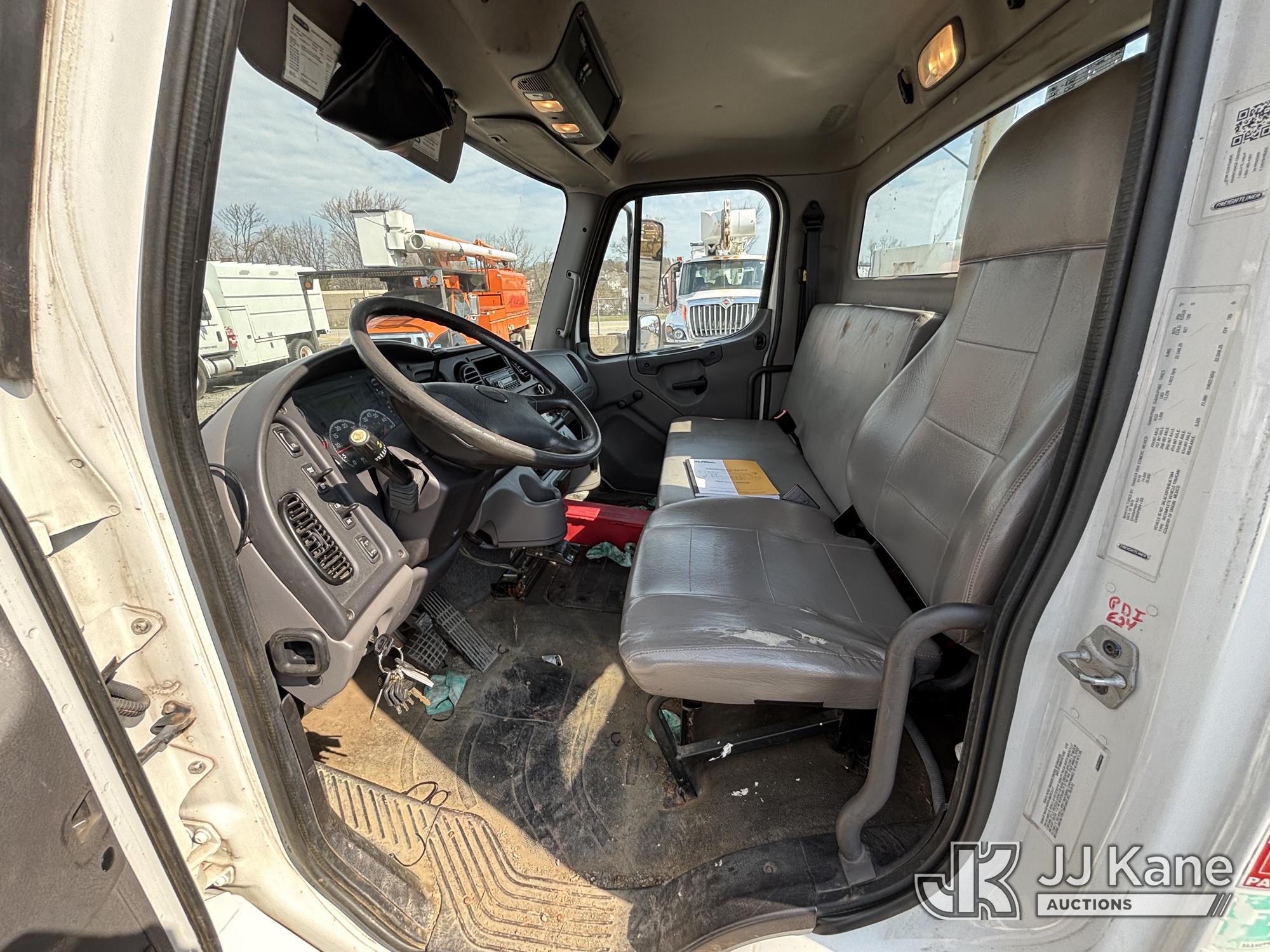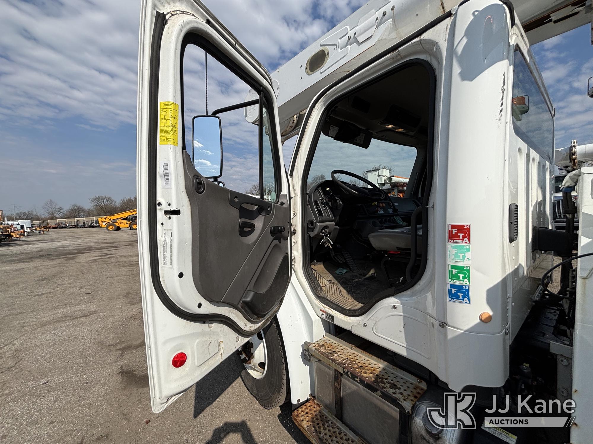 Altec AM55E-MH, 60 ft, Over-Center Material Handling Bucket Truck s/n 0117DM6507, with Two-Man Bucket & 4 Outriggers, rear mounted on 2017 Freightliner M2 106 Utility Truck, 6.7L diesel, 4X2, Auto, A/C, (58,281 miles) (Runs Moves & Upper Condition Unknown, Body & Rust Damage On Utility Body, Hydraulic Leak On Rear Lines, Don’t Operate PTO) This is a Titled Item*