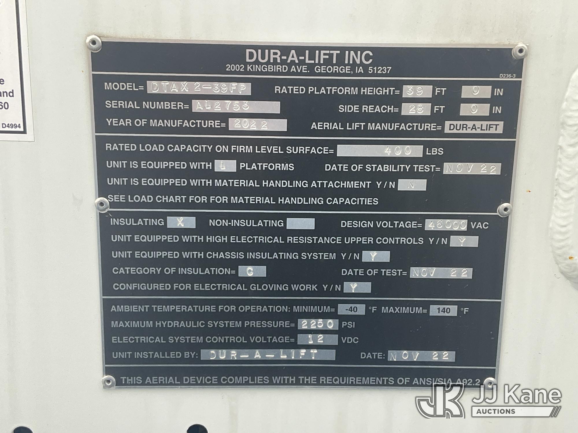 Duralift DTAX2-39FP, 44 ft, Articulating & Telescopic Bucket Truck s/n A12758, with single-man bucket, mounted behind cab on 2022 Ford F550 4x4 Service Truck, 6.7L diesel, Auto, A/C, (1,997 miles) (Runs, Moves & Upper Operates) This is a Titled Item*