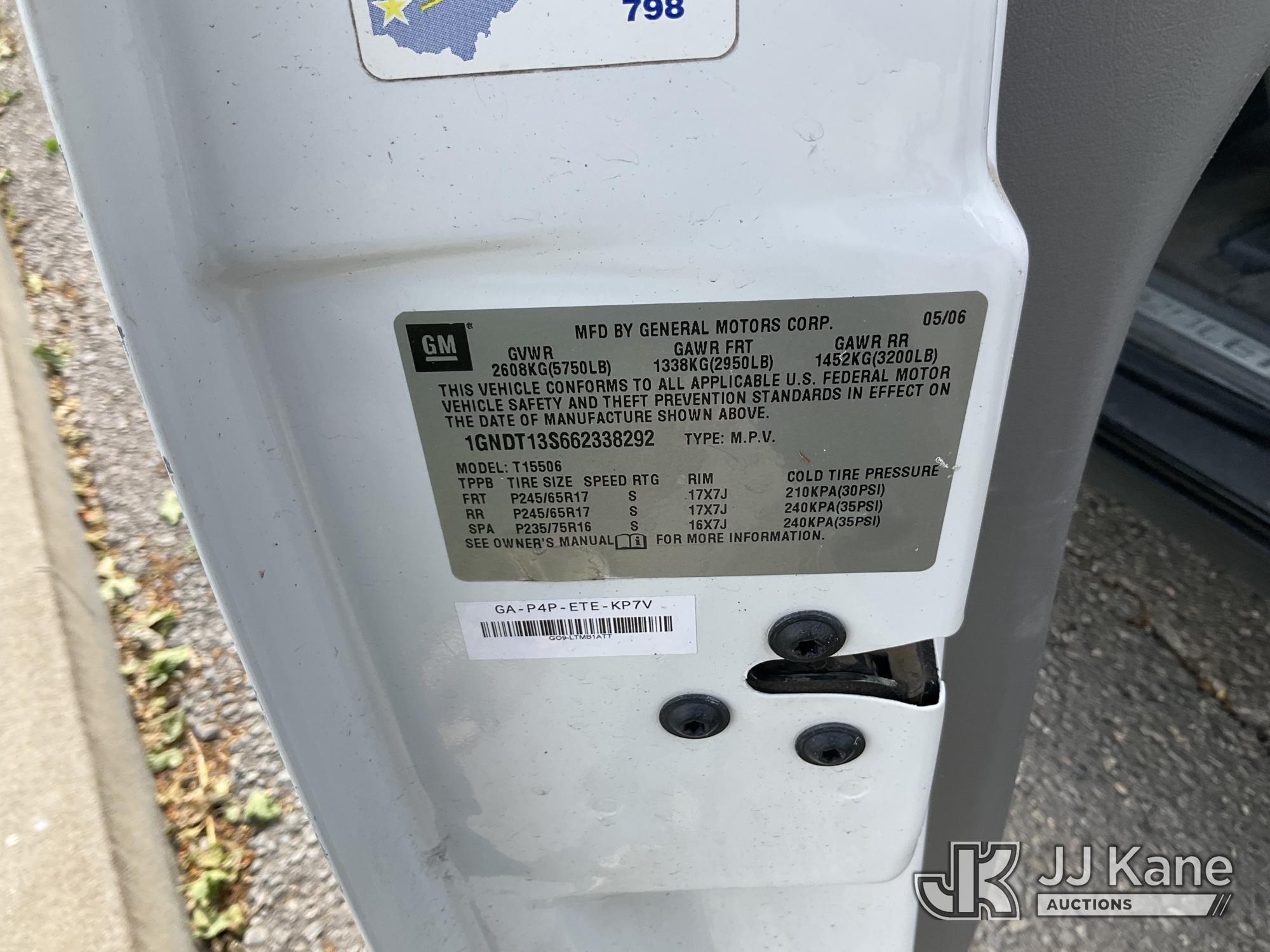 2006 Chevrolet Trailblazer 4x4 4-Door Sport Utility Vehicle, s/n 1GNDT13S662338292, 4.2L L6 DOHC 24V GAS, 4-Speed Automatic, A/C, with Tow package, (Exempt from Odometer Disclosure - Reads 78,601 miles) (Runs & Moves) This is a Titled Item*