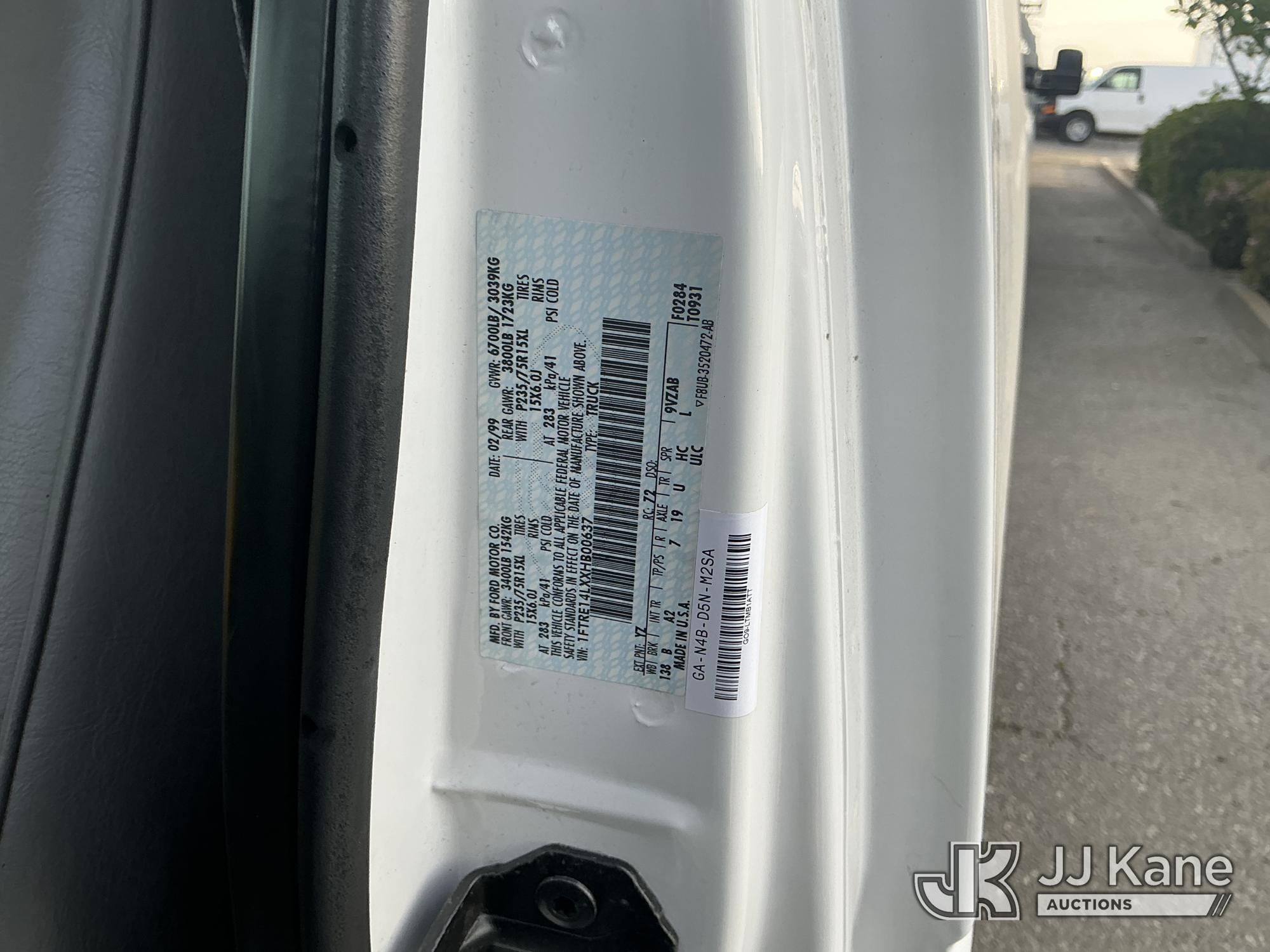 1999 Ford Econoline E150 Cargo Van, s/n 1FTRE14LXXHB00637, 5.4L V8 SOHC 16V RWD, GAS, 4-Speed Automatic, A/C, (Exempt from Odometer Disclosure - Reads 86,472 miles) (Runs & Moves) This is a Titled Item*