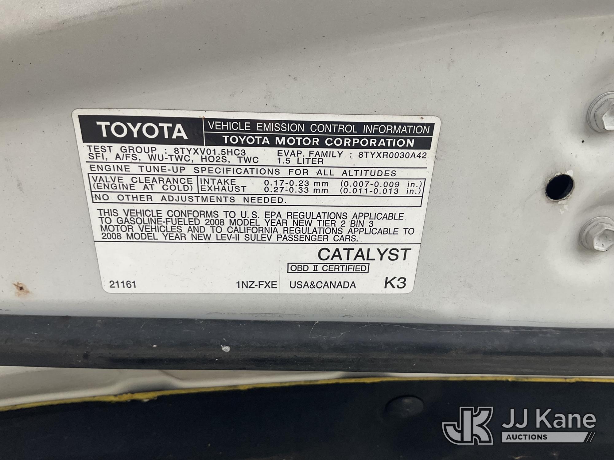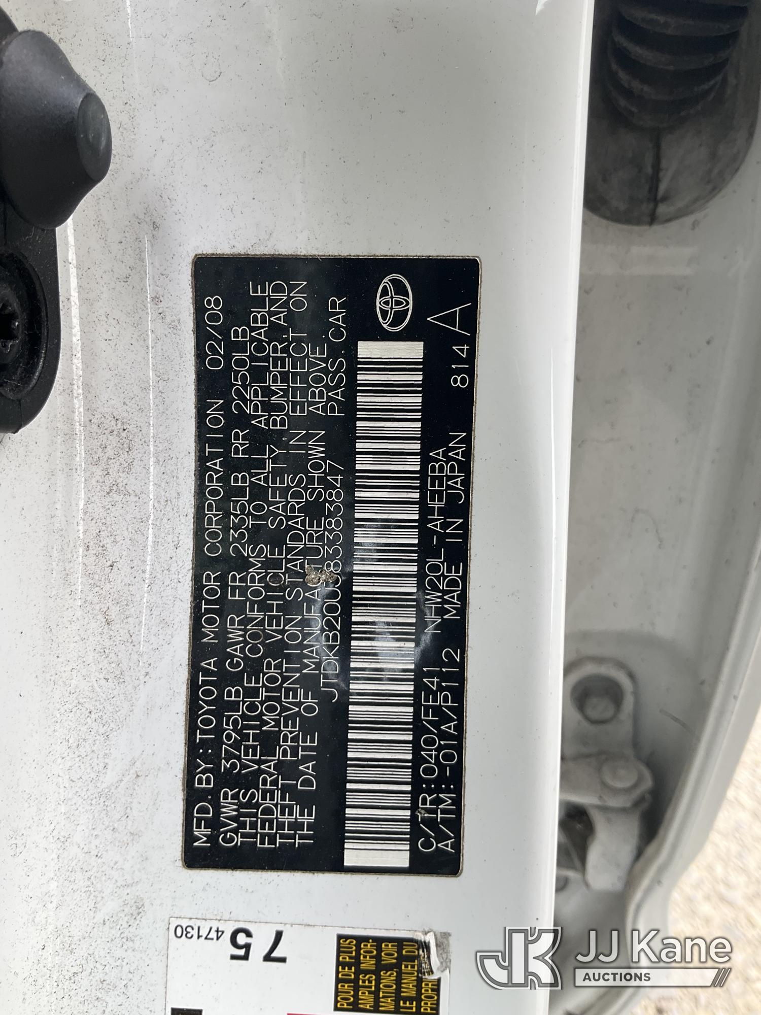 2008 Toyota Prius 4-Door Hatch Back, s/n JTDKB20U383383847, 1.5L L4 DOHC 16V FWD, HYBRID, Continuously Variable Transmission, A/C, (97,750 miles) (Runs & Moves, 12V Battery Overheats) (Bidding Restricted to Licensed Vehicle Dealers Only), This is a Titled Item*