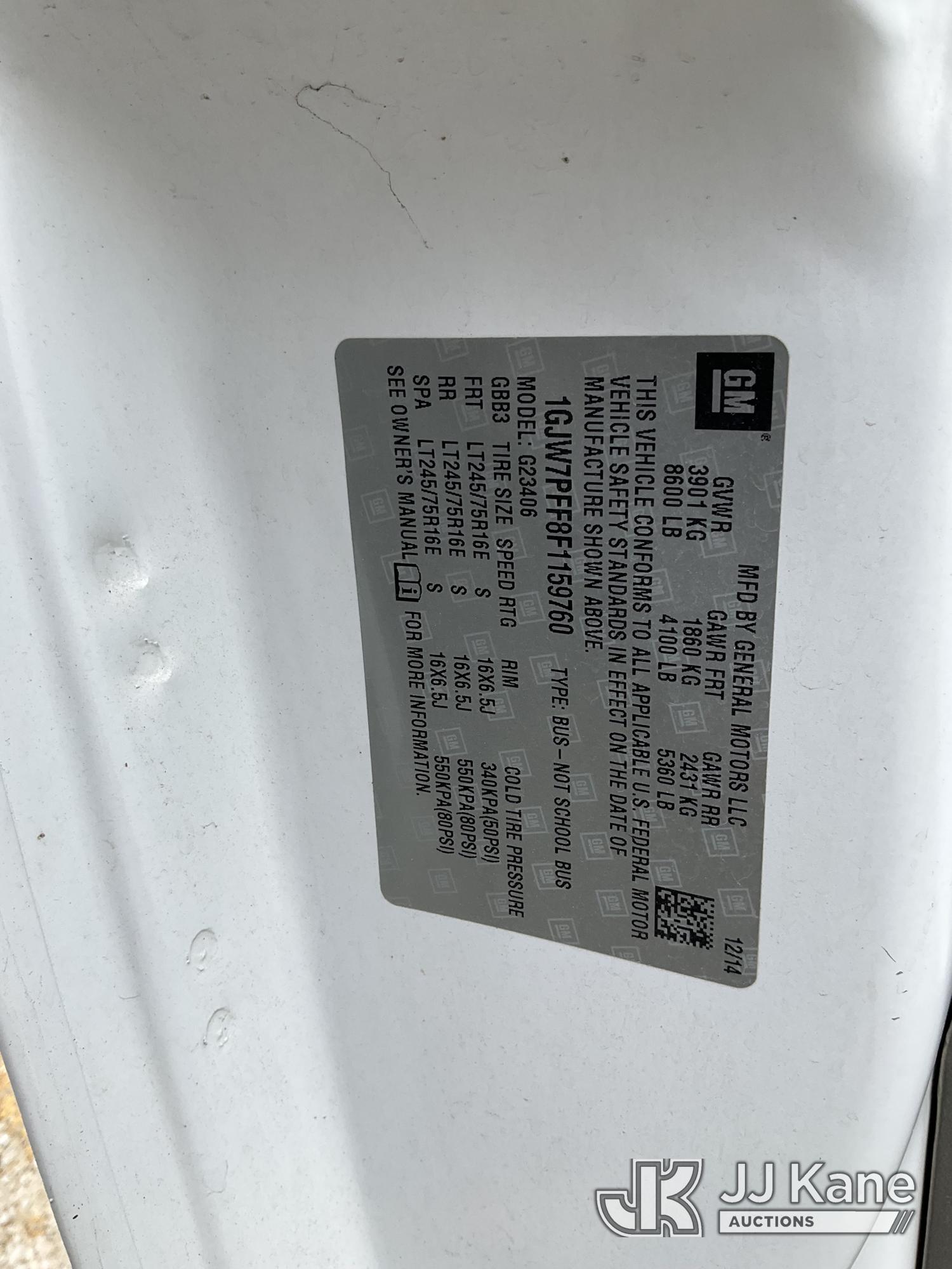 2015 GMC Savana LS G2500 Cargo Van, s/n 1GJW7PFF8F1159760, 4.8L V8 OHV 16V RWD, FFV, 6-Speed Automatic, A/C, (126,339 miles) (Runs & Moves, Monitors Will Not Clear For Smog) (Bidding Restricted to Licensed Vehicle Dealers Only), This is a Titled Item*