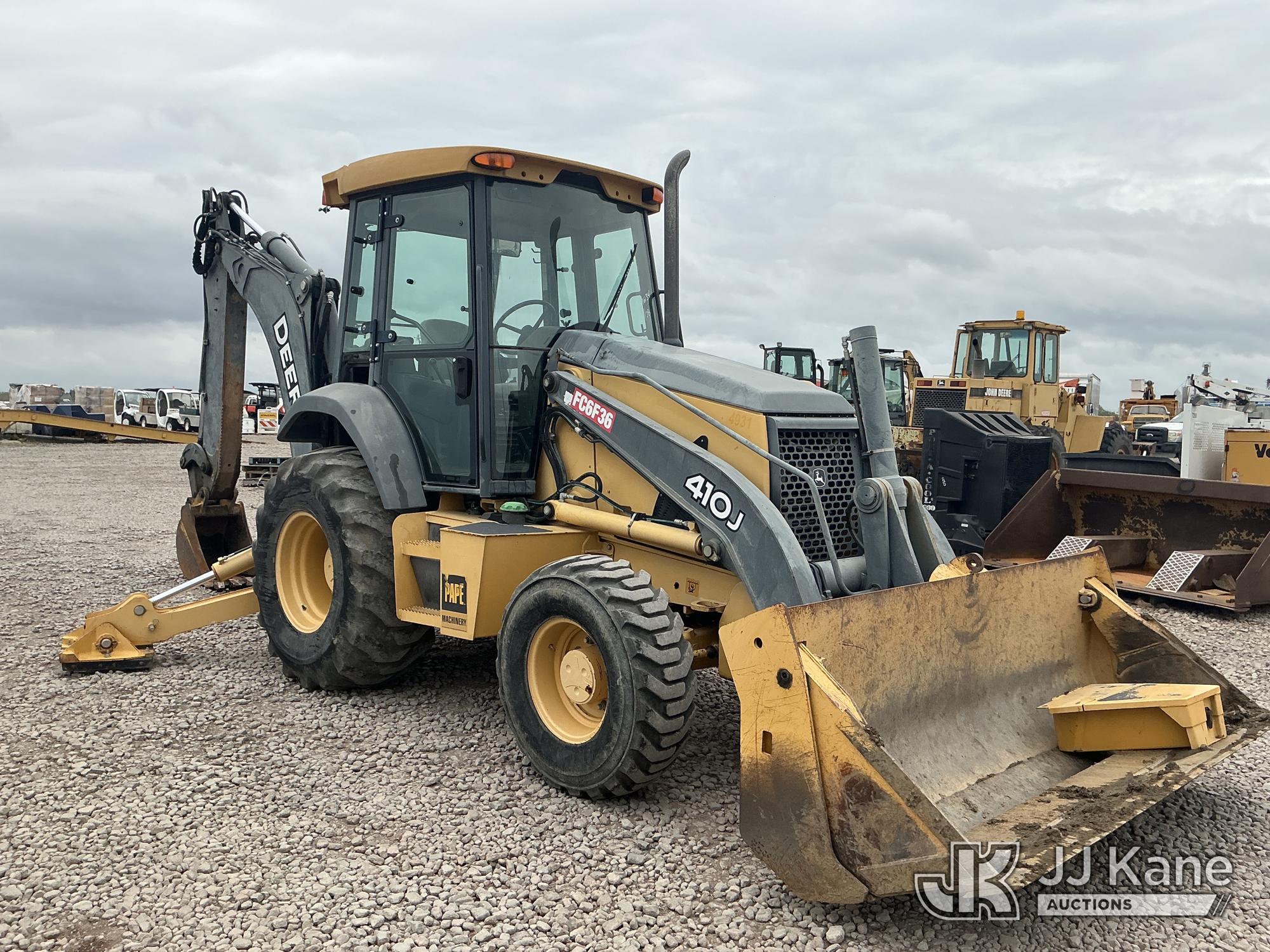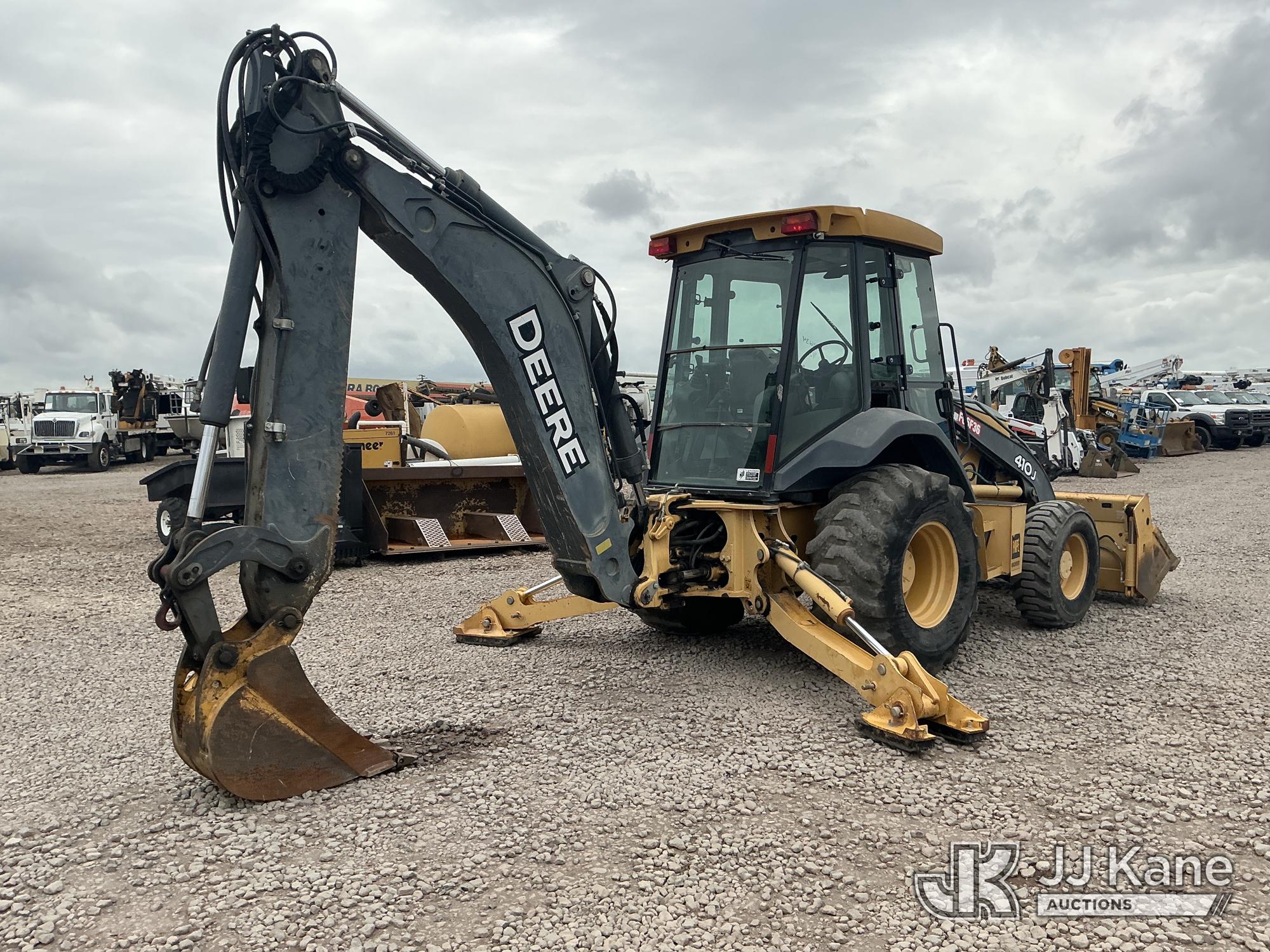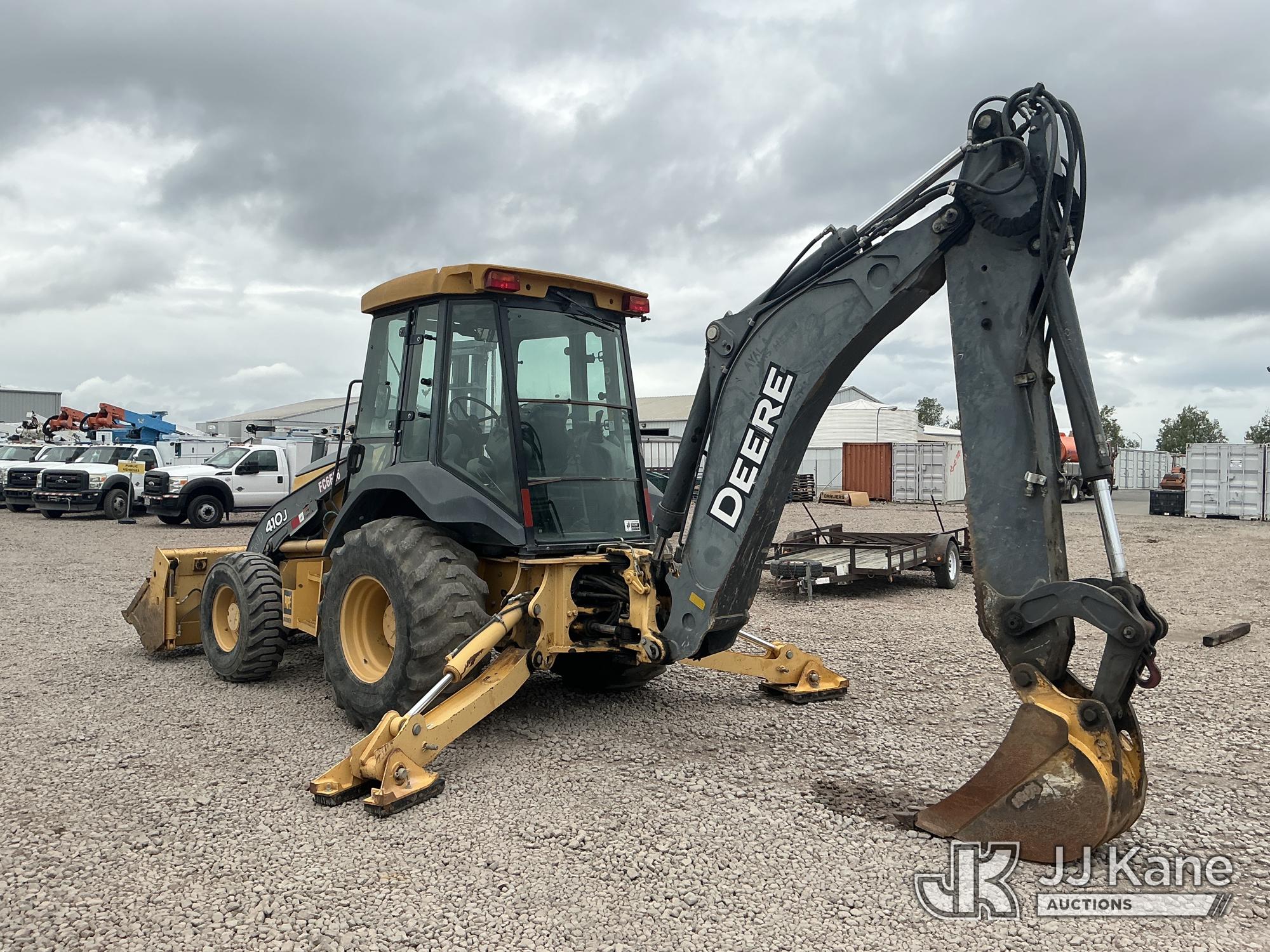 John Deere 410J Tractor Loader Extendahoe, s/n 1T0410JXVA0192342, John Deere Turbo 4wd, diesel, powershift, A/C, with 4 in 1 loader bucket, 18 in digging bucket, aux hyd outlet & EROPS w/ A/C, (Runs & Operates) (Needs Jump To Start/ New Battery) (Reads 4,201 hours)*