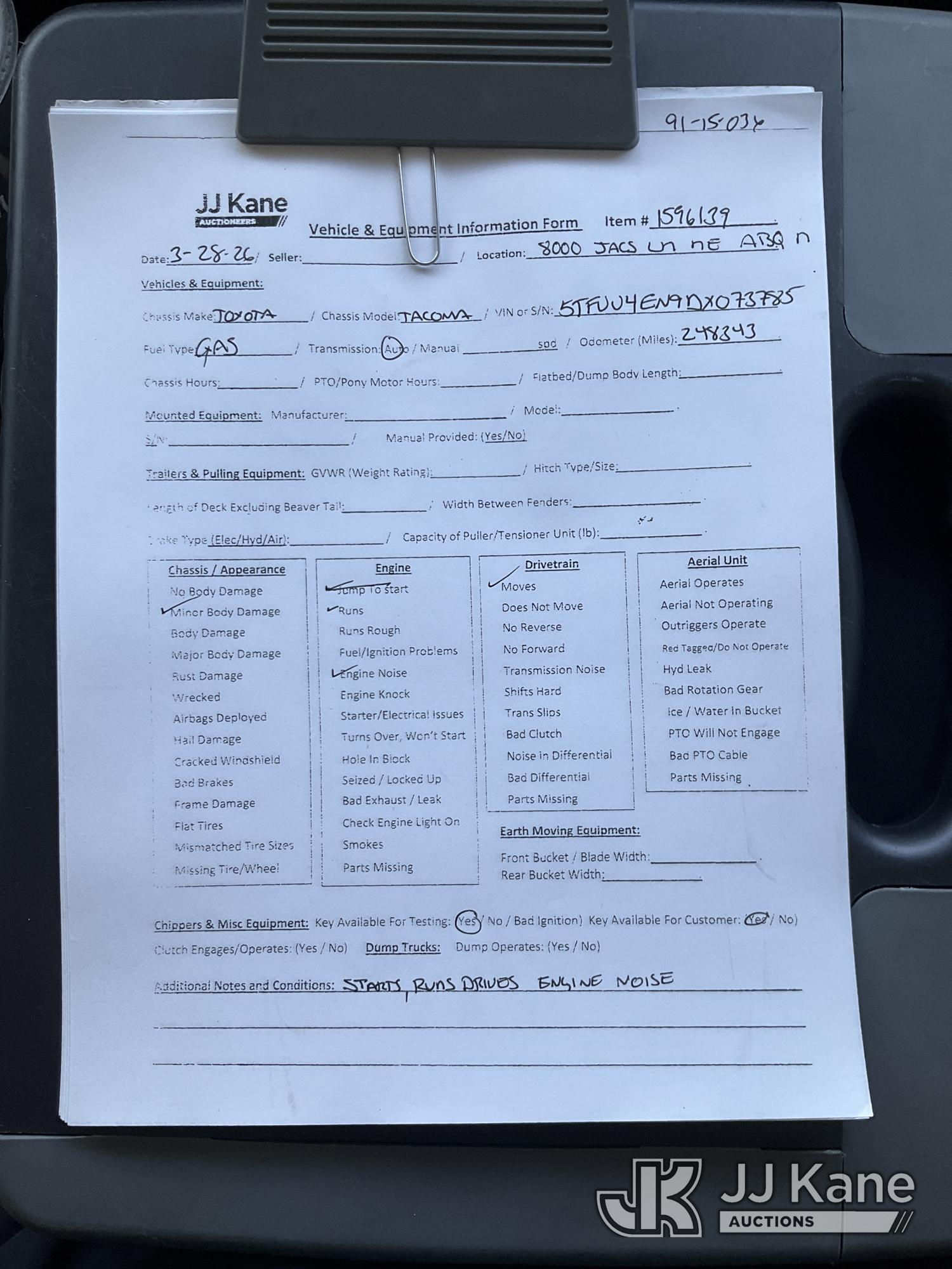 2013 Toyota Tacoma 4x4 Extended-Cab Pickup Truck, 4.0L V6 DOHC 24V gas, Auto, A/C, with bed cover, (248,343 miles) (Runs & Moves) (Jump To Start, Engine Noise, Body Damage) This is a Titled Item*