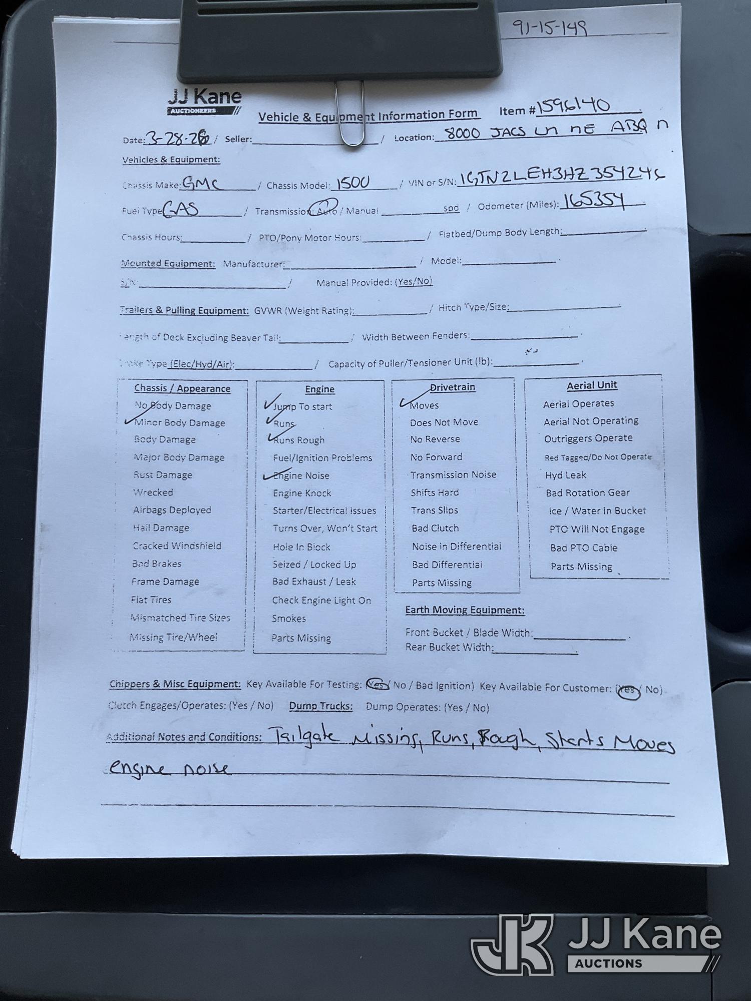 2017 GMC Sierra 1500 4x4 Pickup Truck, 4.3L V6 OHV 12V gas, 6-Speed Automatic, A/C, (165,354 miles) (Runs & Moves) (Jump To Start, Runs Rough, Engine Noise, Missing Tailgate, Body Damage) This is a Titled Item*