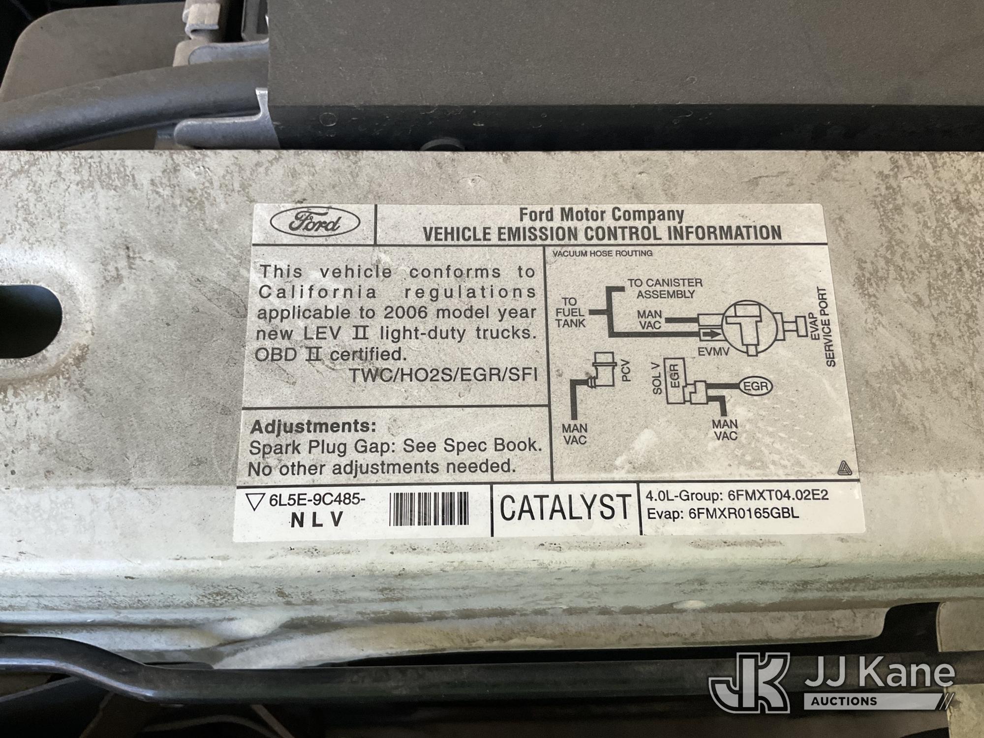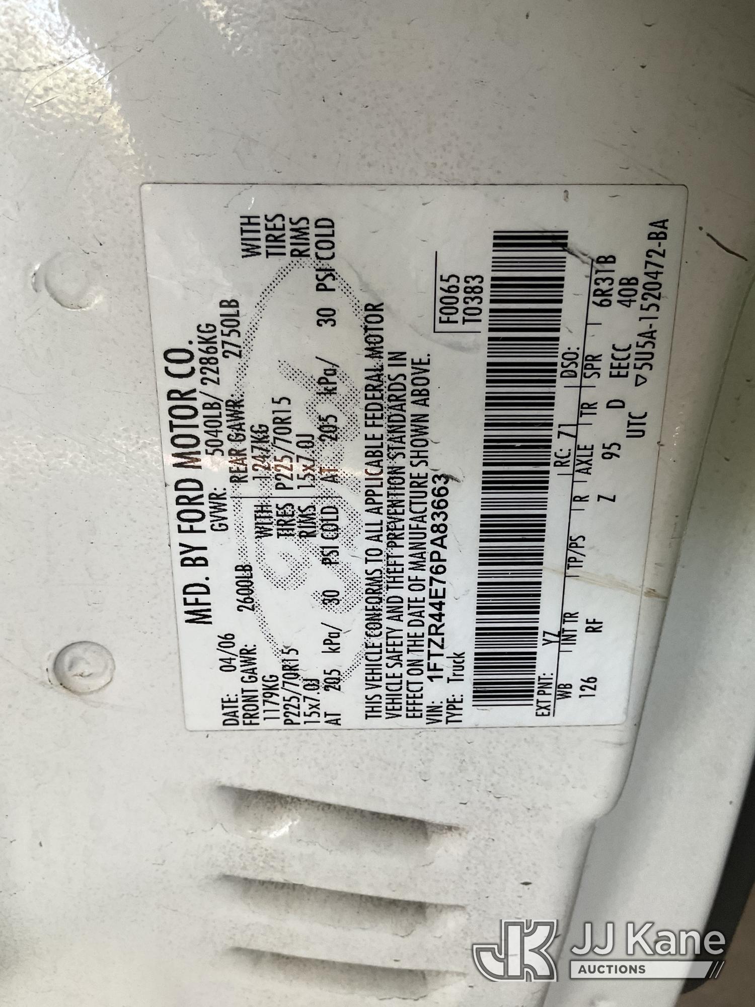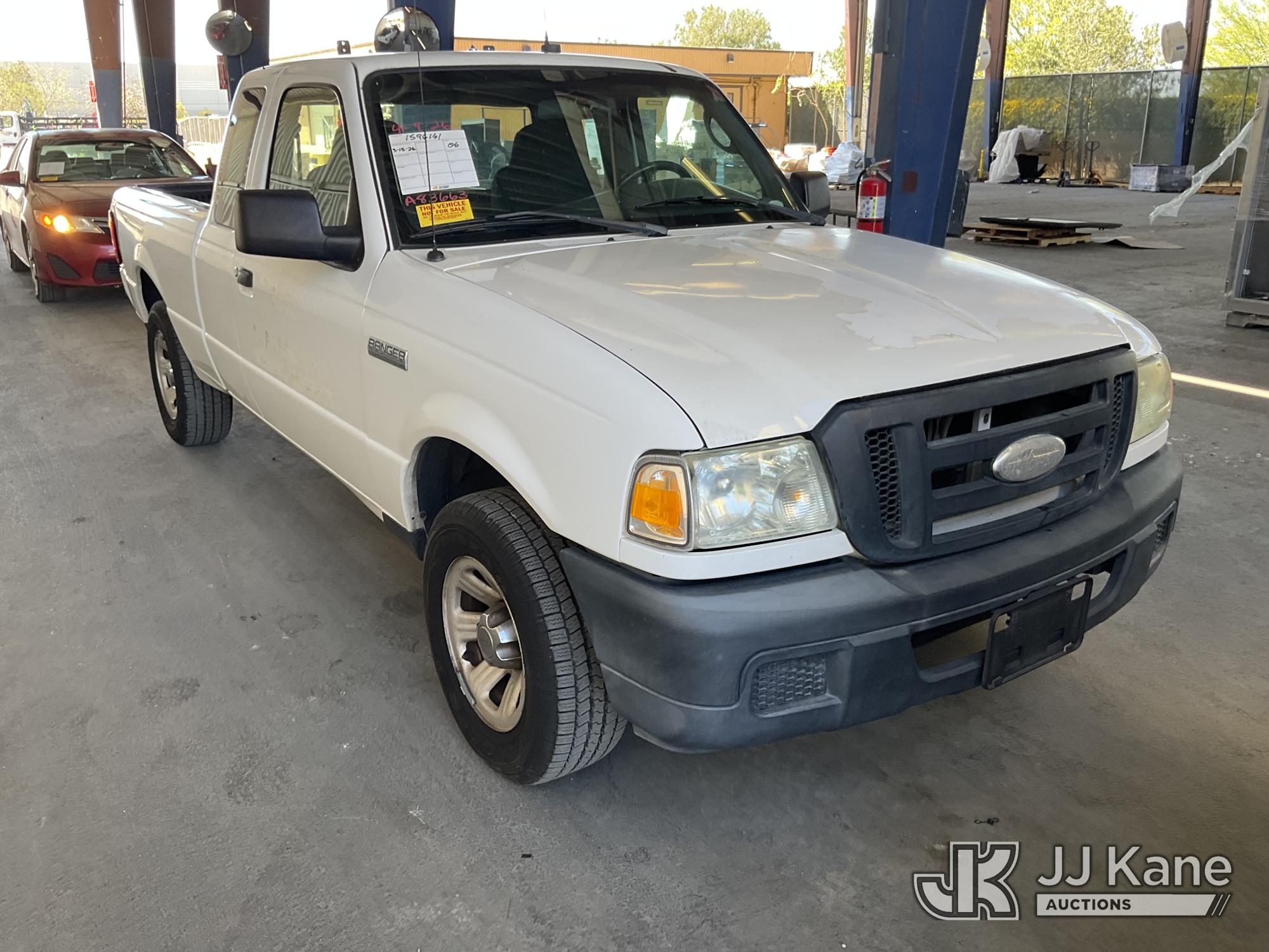 2006 Ford Ranger Extended-Cab Pickup Truck, s/n 1FTZR44E76PA83663, 4.0L V6 SOHC 12V RWD, GAS, 5-Speed Automatic, A/C, (Exempt from Odometer Disclosure - Reads 103,015 miles) (Runs & Moves, Engine Light On, Missing Catalytic Converter, Shakes In Idle) (Bidding Restricted to Licensed Vehicle Dealers Only), This is a Titled Item*