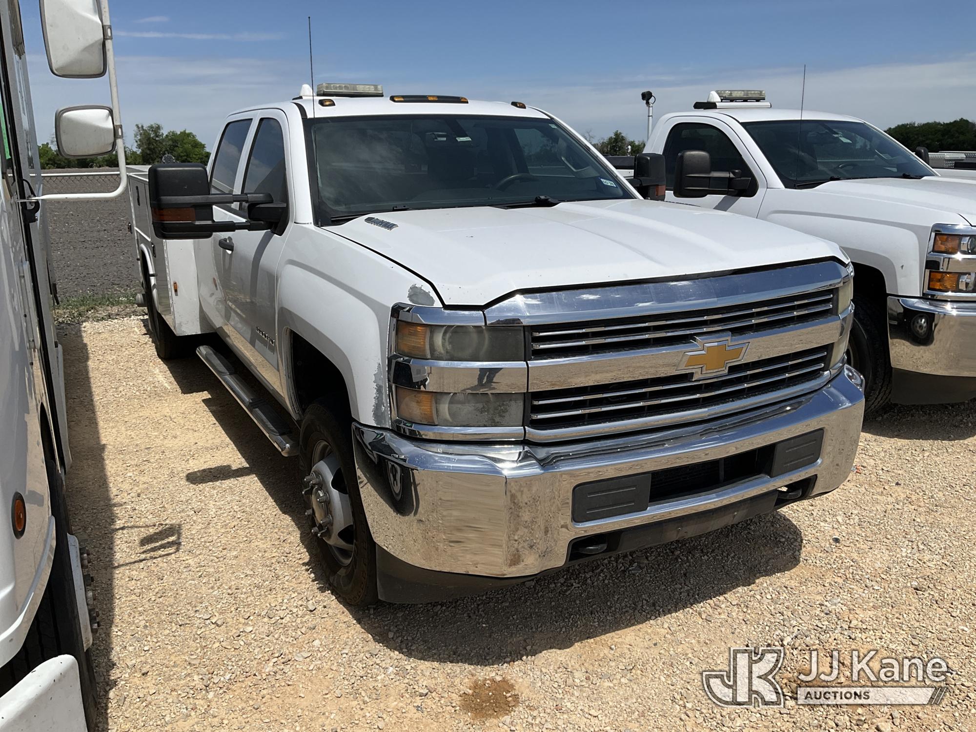 2015 Chevrolet Silverado 3500HD Crew-Cab Service Truck, 6.6L Diesel 4WD, 6-Speed Automatic, A/C, with Truck Bed Storage, (251,477 miles) (Cranks But Does Not Run, Condition Unknown) (Check Engine Light On) This is a Titled Item*