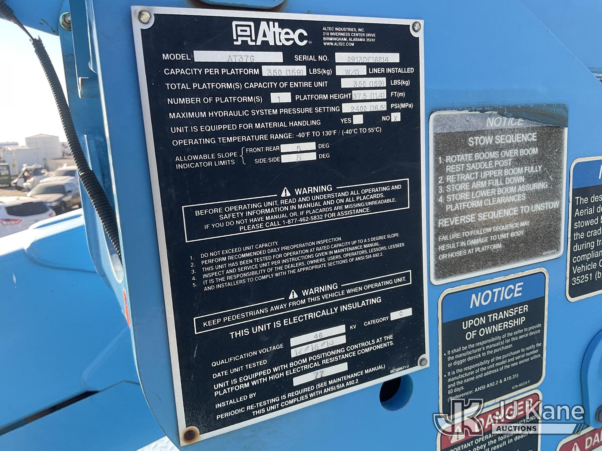 Altec AT37G, 42 ft, Articulating & Telescopic Bucket Truck s/n 0913DE16014, with single-man bucket, mounted behind cab on 2013 Ford F-550 Regular Cab DRW 4WD Service Truck, s/n 1FDUF5HT8DEB38109, 6.7L V8 OHV 16V DIESEL, Auto, A/C, with Tow Package, Front Winch, (118,465 miles) (Runs, Moves & Upper Operates) May be subject to ARB Regulations This is a Titled Item*