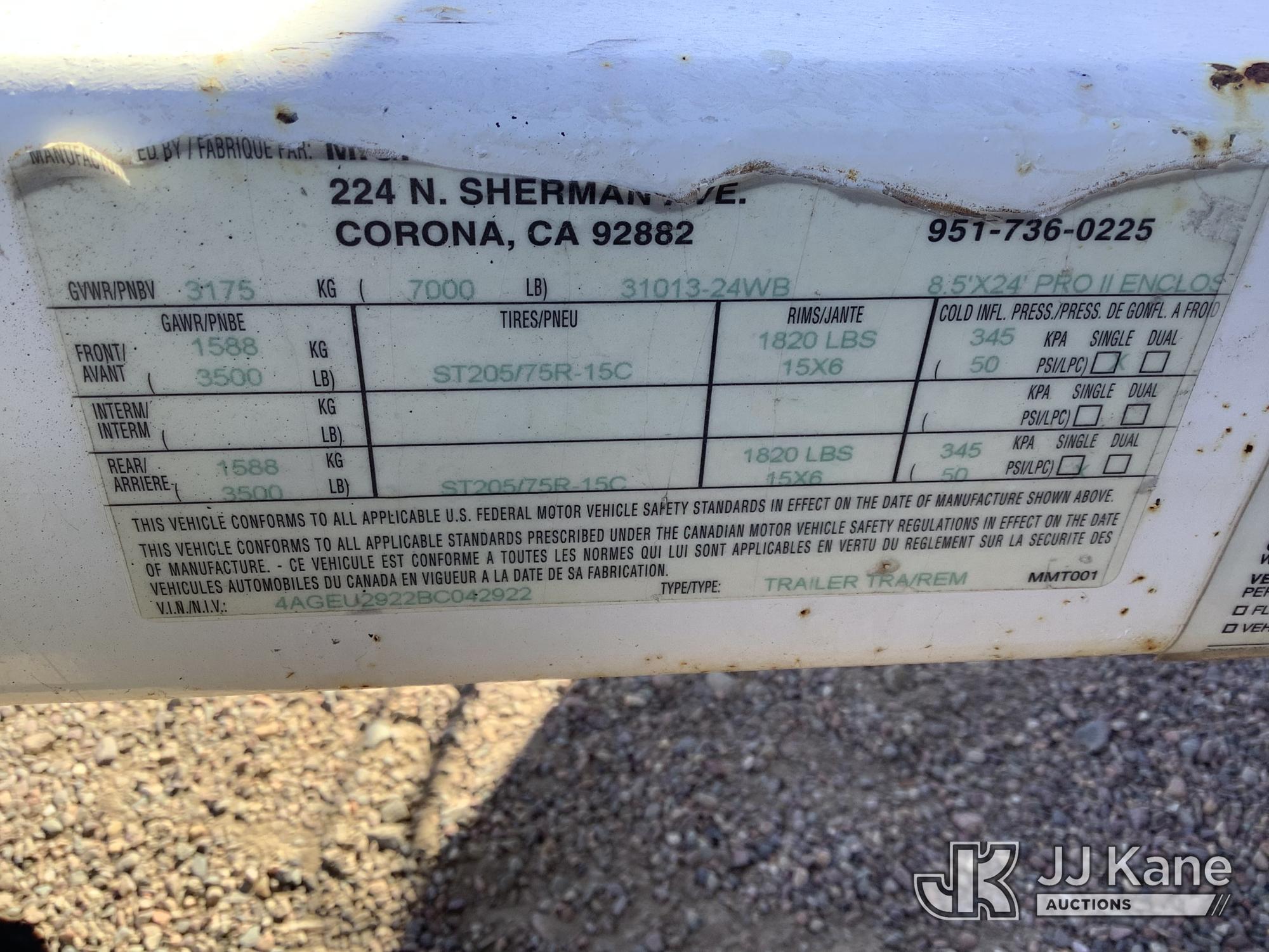 2011 Mighty Mover 8.5X24 Pro II Enclosed T/A Enclosed Trailer, with Curbside Entrance Door, Rear Fold Down Door, This is a Titled Item*