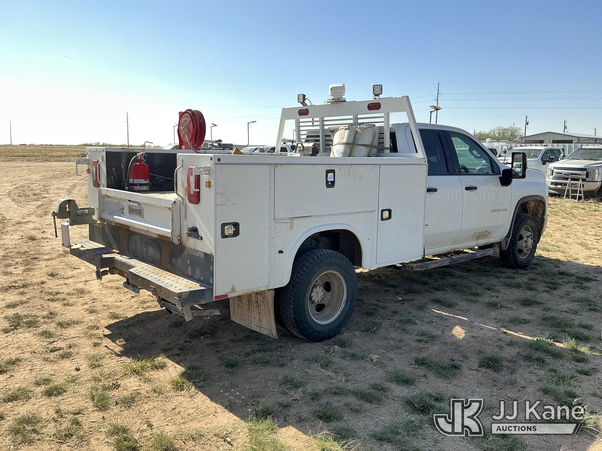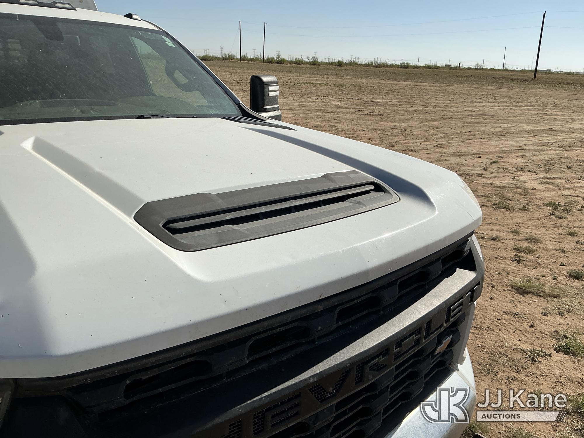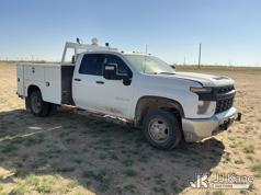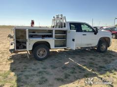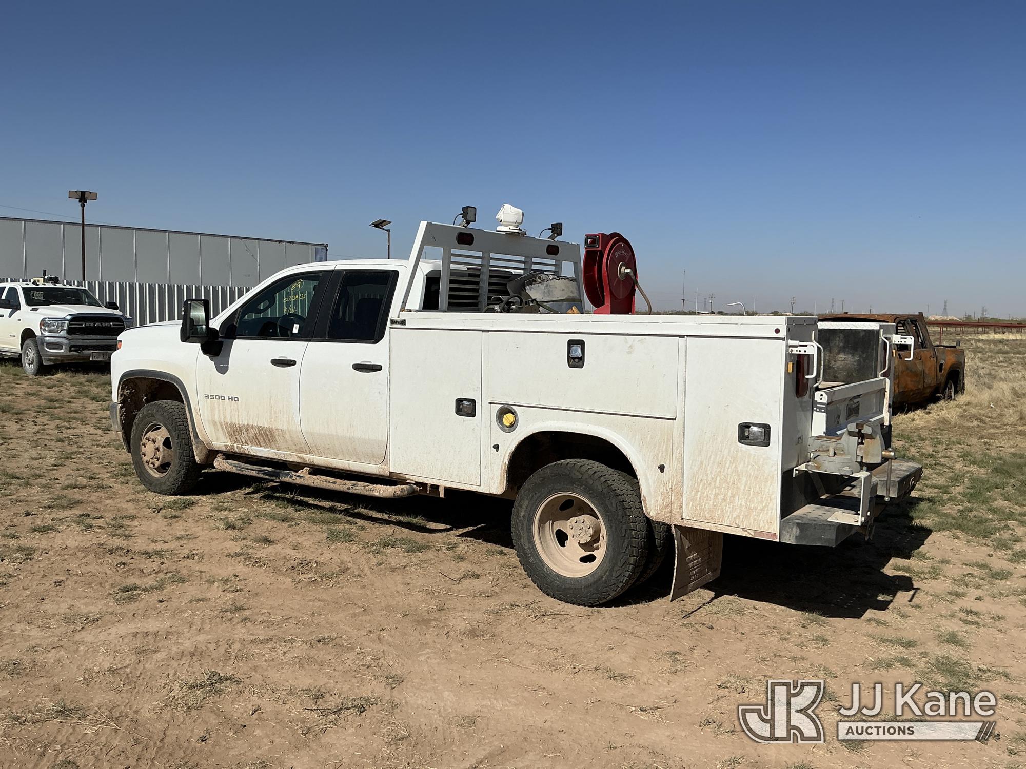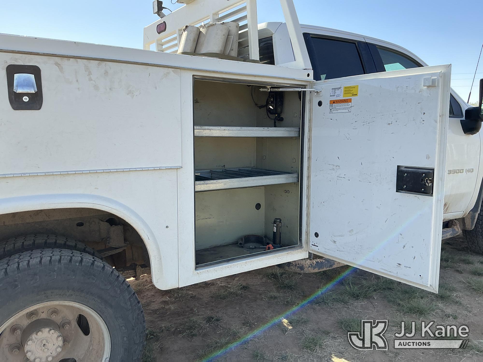 2020 Chevrolet Silverado 3500HD Extended-Cab Service Truck, 8-cyl gas, 4WD, 6-Speed Automatic, A/C, with power inverter, toolbox, vise, container, hose reel, (116,871 miles) (Runs & Moves) (Jump To Start, Check Engine Light On, Windshield Cracked, Hail, Paint & Body Damage) (Reads 7,330 hours) This is a Titled Item*
