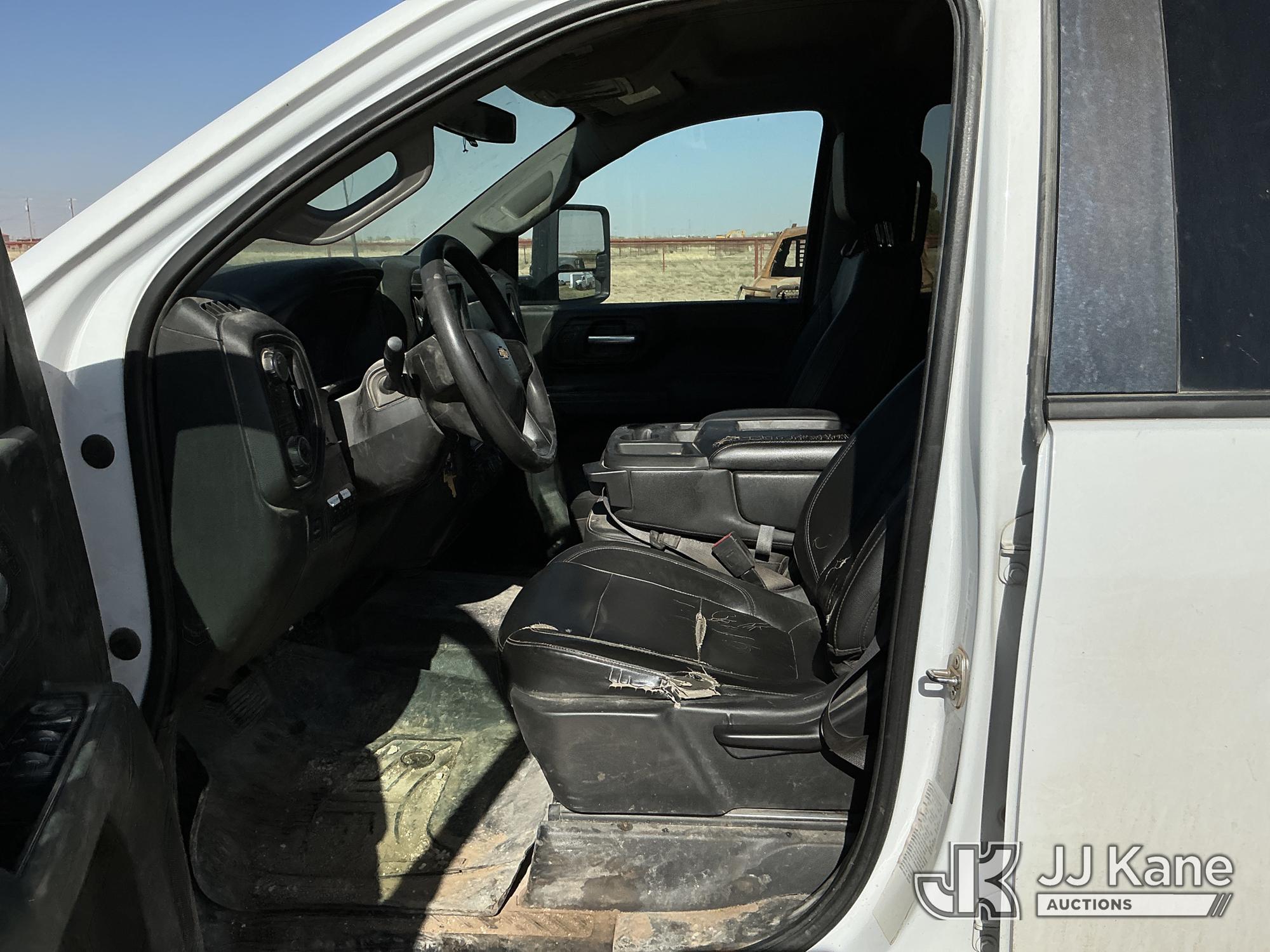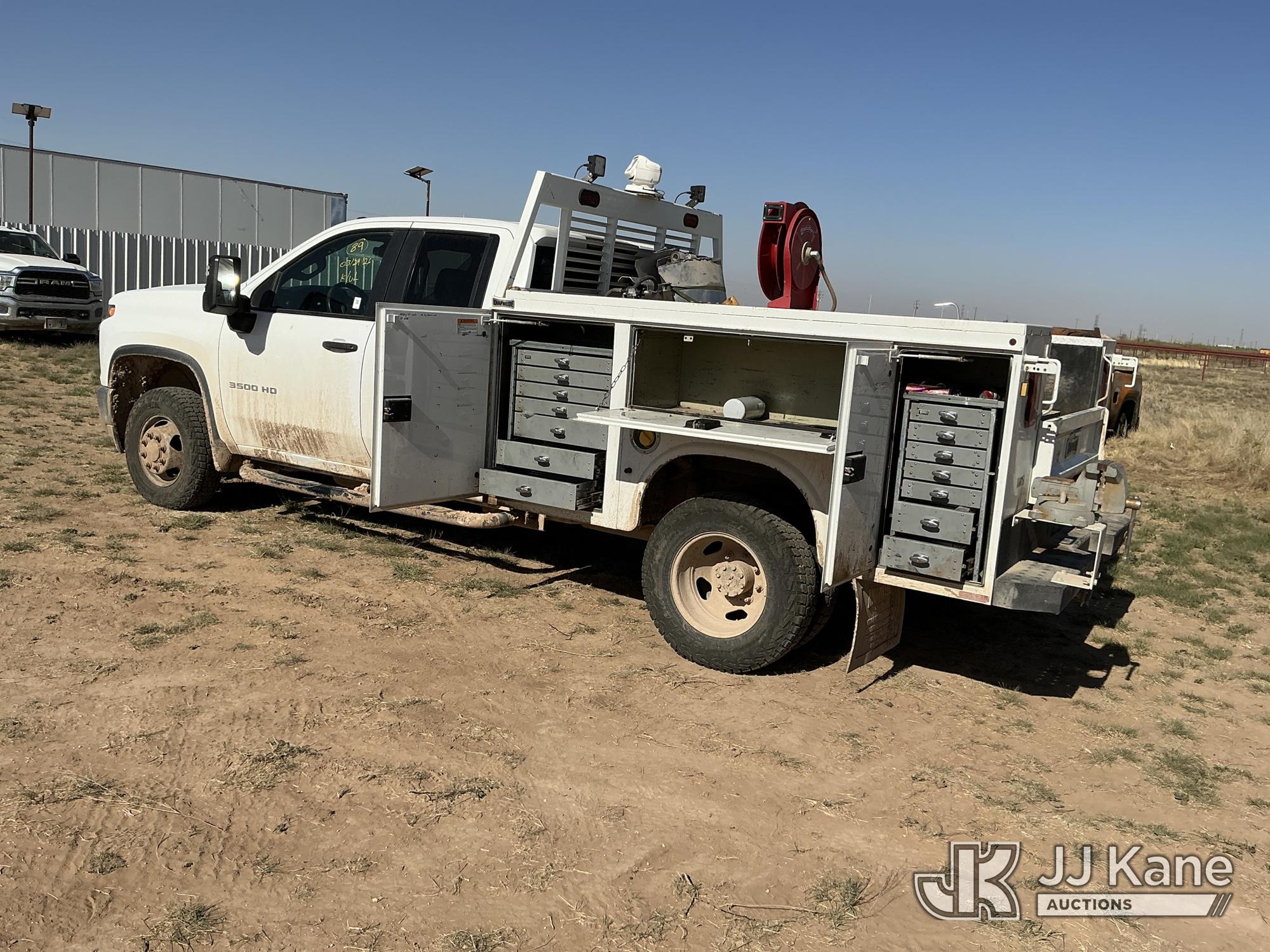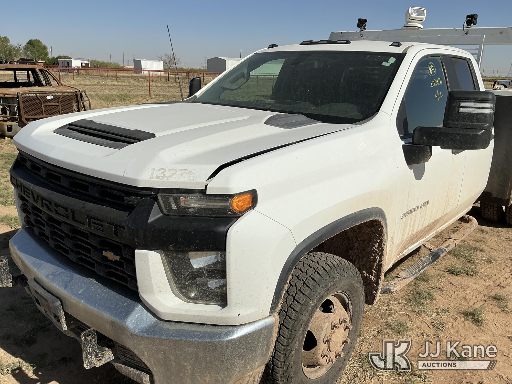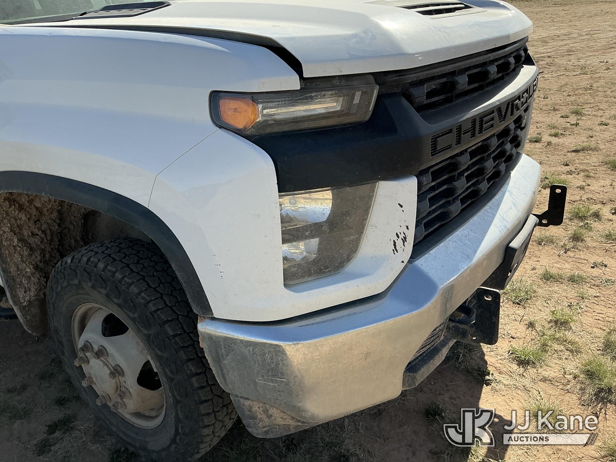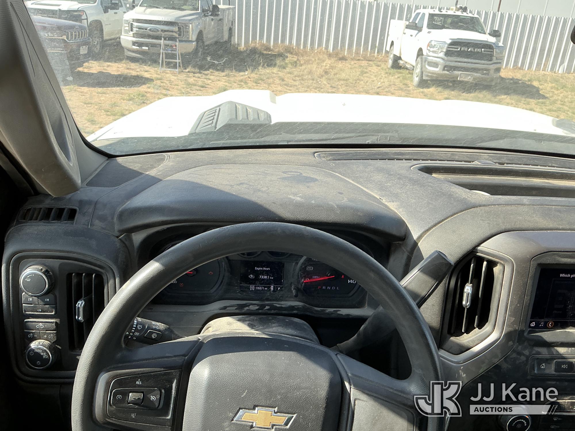 2020 Chevrolet Silverado 3500HD Extended-Cab Service Truck, 8-cyl gas, 4WD, 6-Speed Automatic, A/C, with power inverter, toolbox, vise, container, hose reel, (116,871 miles) (Runs & Moves) (Jump To Start, Check Engine Light On, Windshield Cracked, Hail, Paint & Body Damage) (Reads 7,330 hours) This is a Titled Item*