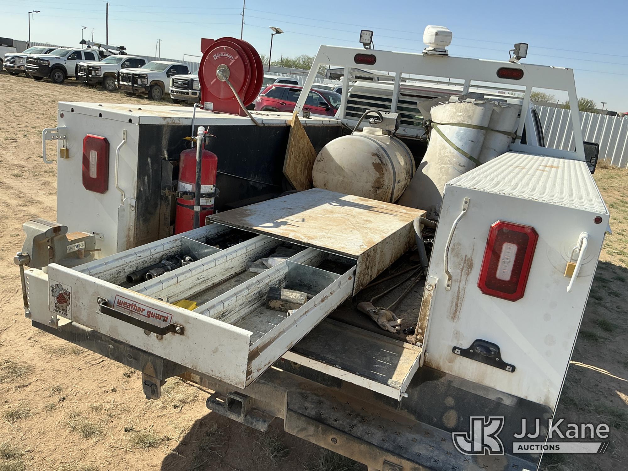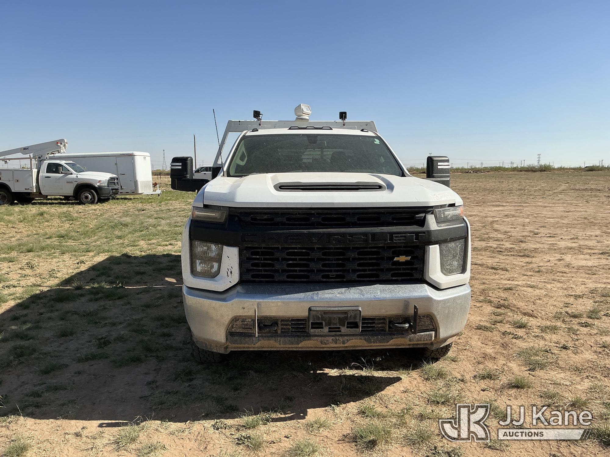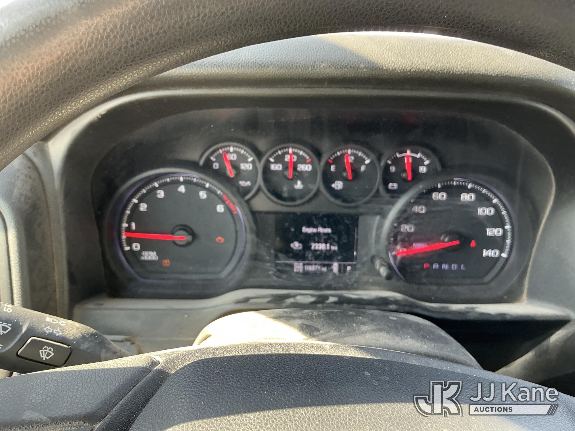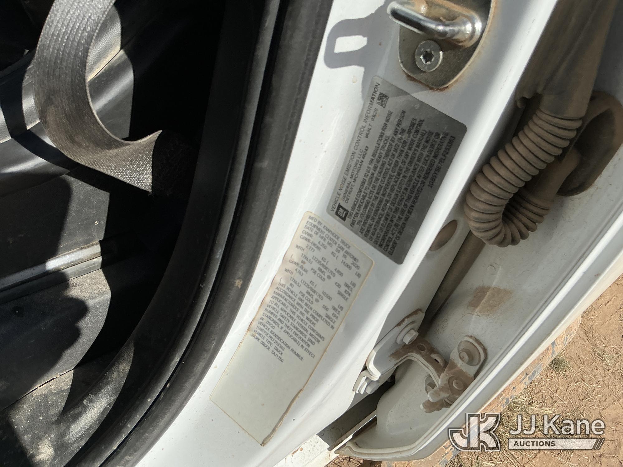 2020 Chevrolet Silverado 3500HD Extended-Cab Service Truck, 8-cyl gas, 4WD, 6-Speed Automatic, A/C, with power inverter, toolbox, vise, container, hose reel, (116,871 miles) (Runs & Moves) (Jump To Start, Check Engine Light On, Windshield Cracked, Hail, Paint & Body Damage) (Reads 7,330 hours) This is a Titled Item*