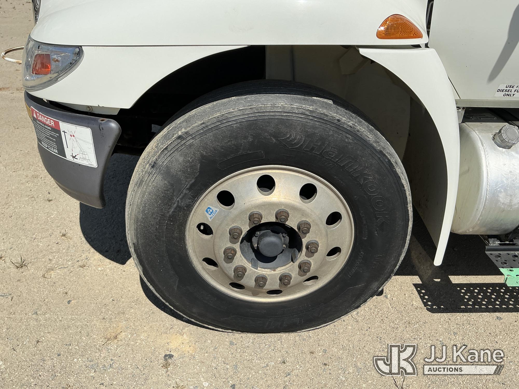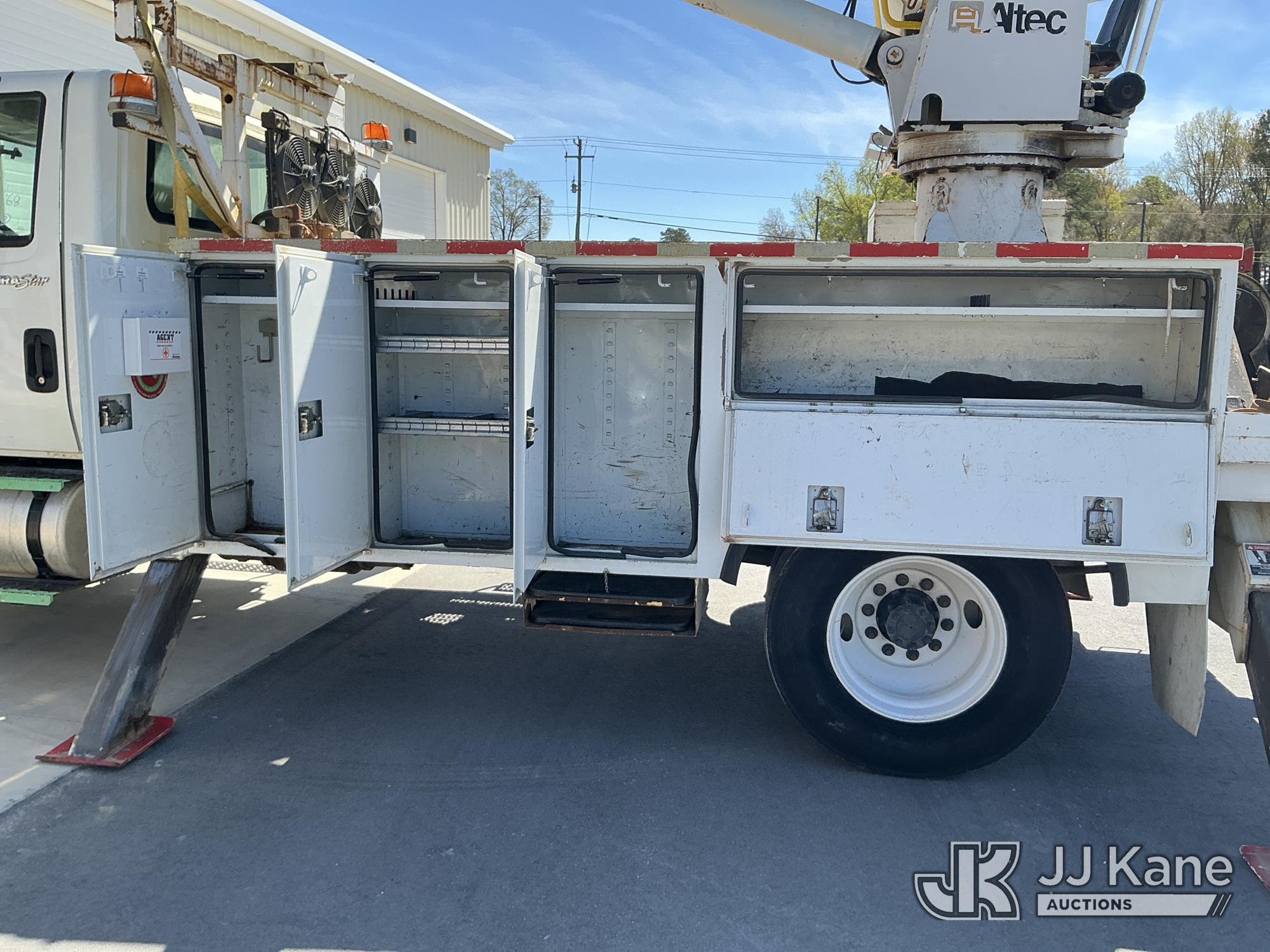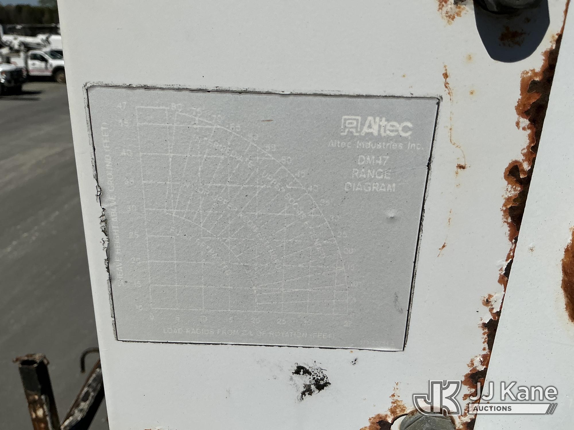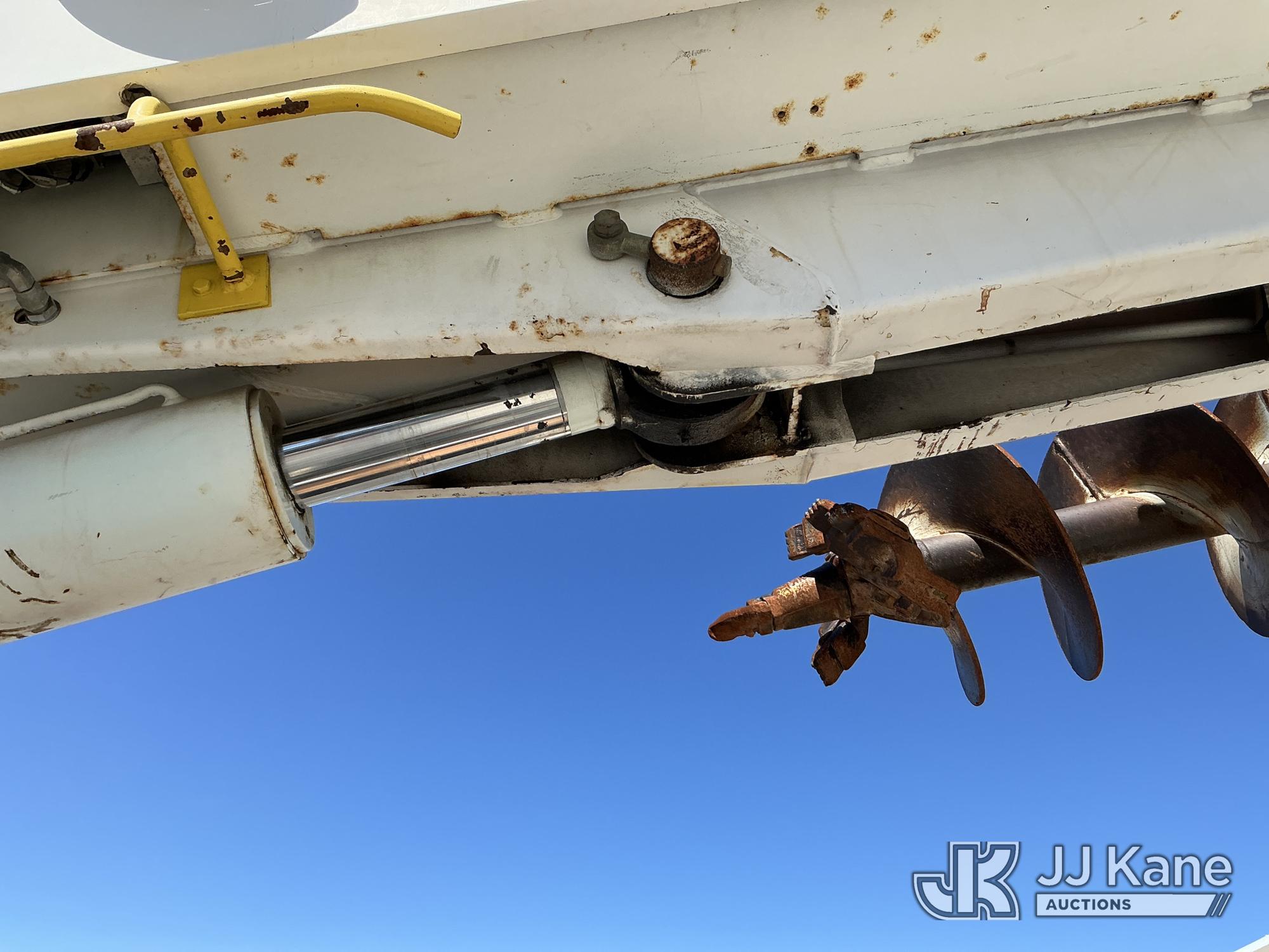 Altec DM47-TR, 12,340 Lb Digger Derrick s/n 0608DV3612, with 47 ft. sheave height, 3 section hydraulic boom, pin on bucket, upper controls, pole guides, heel winch, two speed auger, riding console & 4 hydraulic outriggers, rear mounted on 2009 International 4300 Utility Truck, MaxxForce 7.6L diesel, Auto, A/C, (108,535 miles) Windshield Replaced by Seller prior to Sale (Runs, Moves, Upper Operates, Missing Upper Data Plate, Upper Information verified by Manufacturer) This is a Titled Item*