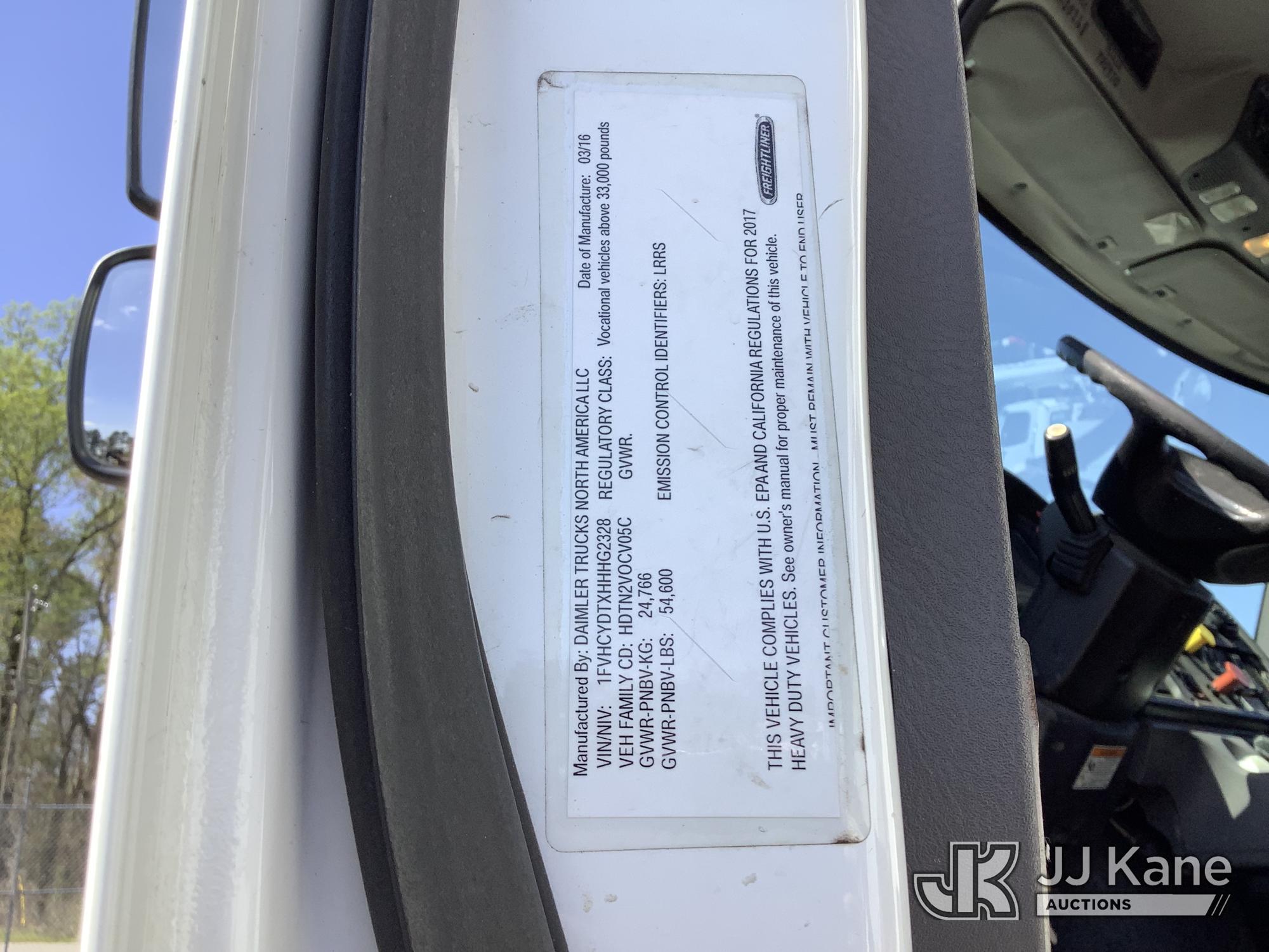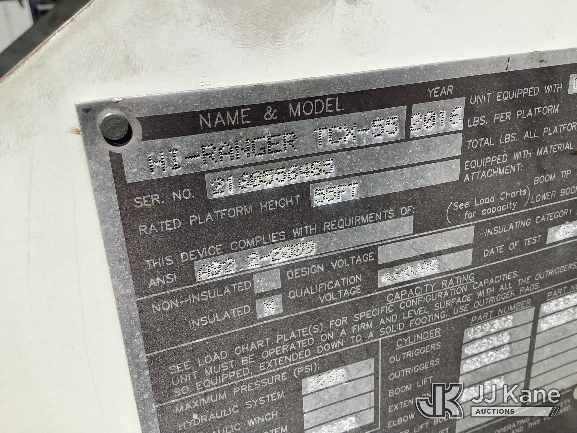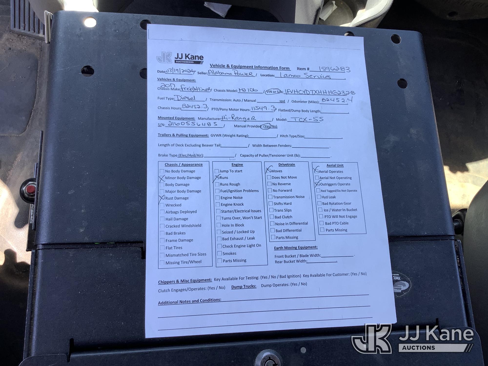 HiRanger TCX-55, 60 ft, Material Handling Bucket Truck s/n 2160556485, with two-man bucket & 4 hyd outriggers, rear mounted on 2017 Freightliner M2 106 T/A Utility Truck, 6.7L L6 Diesel, 6X4, Auto, with front winch, (82,452 miles) (AL Power Unit) (Runs, Moves & Upper Operates) This is a Titled Item*