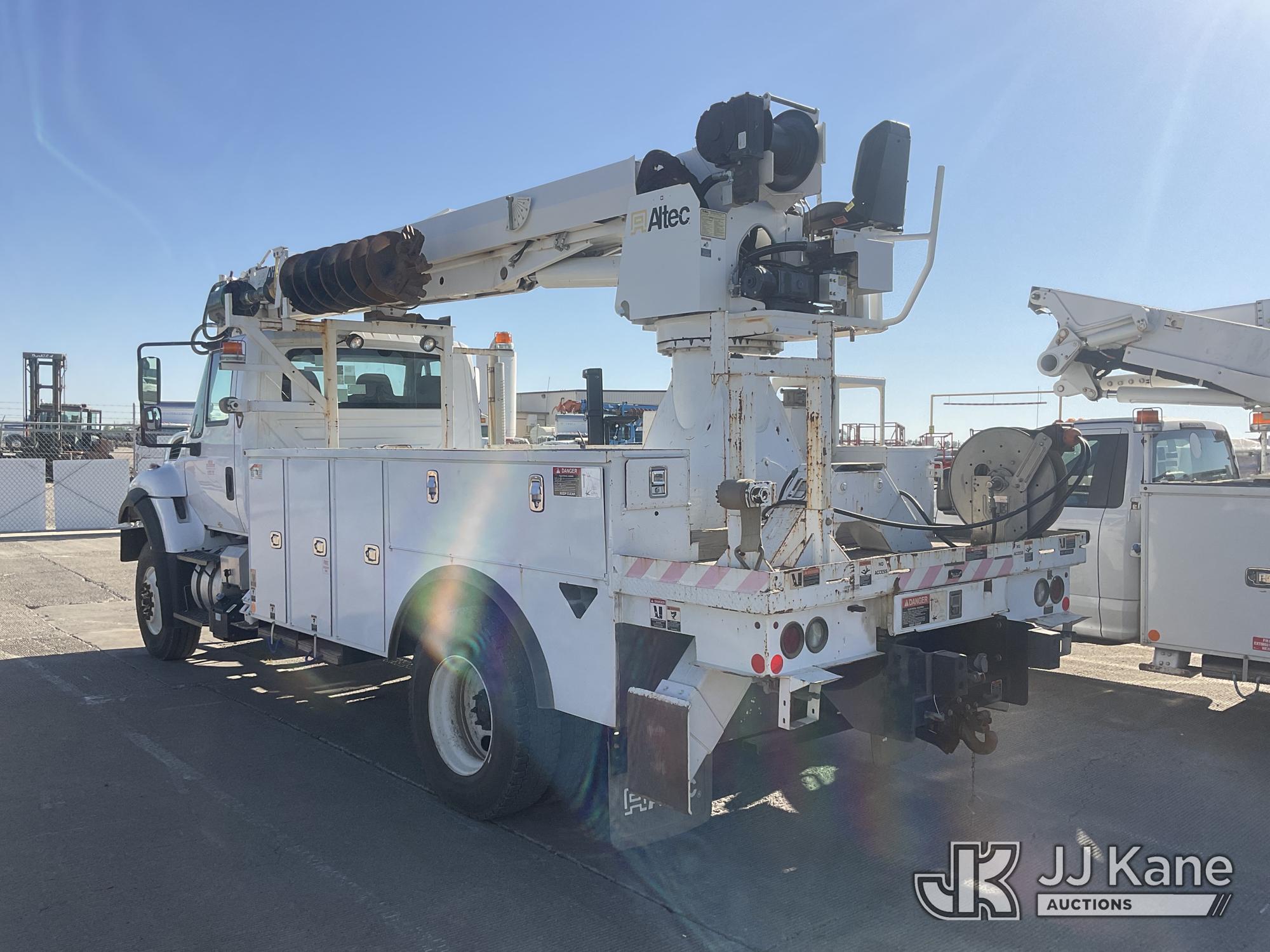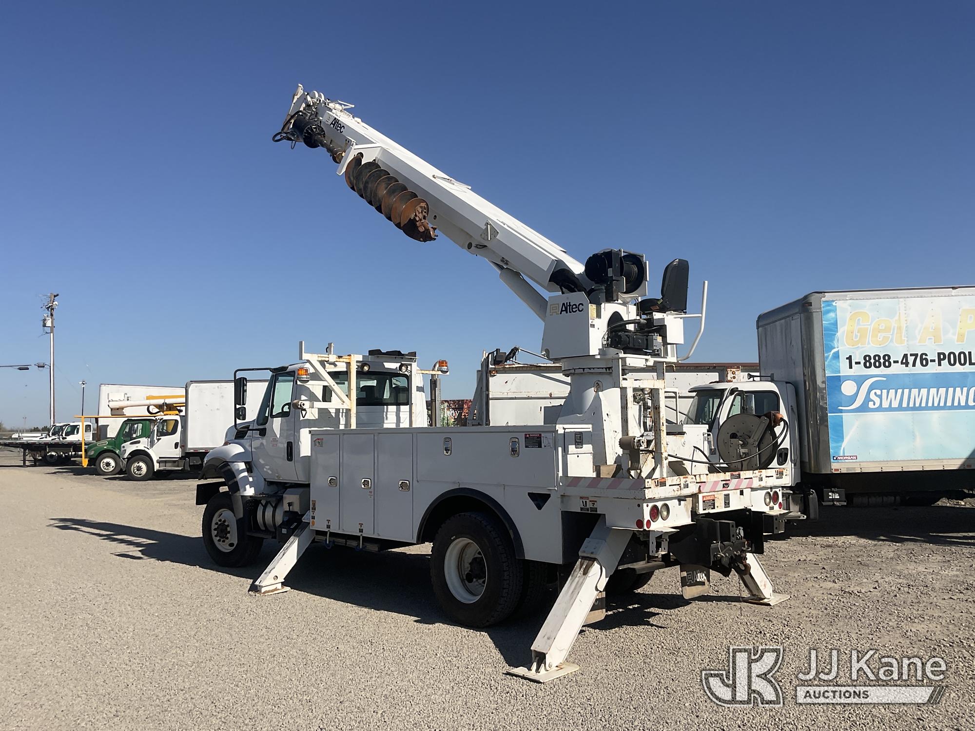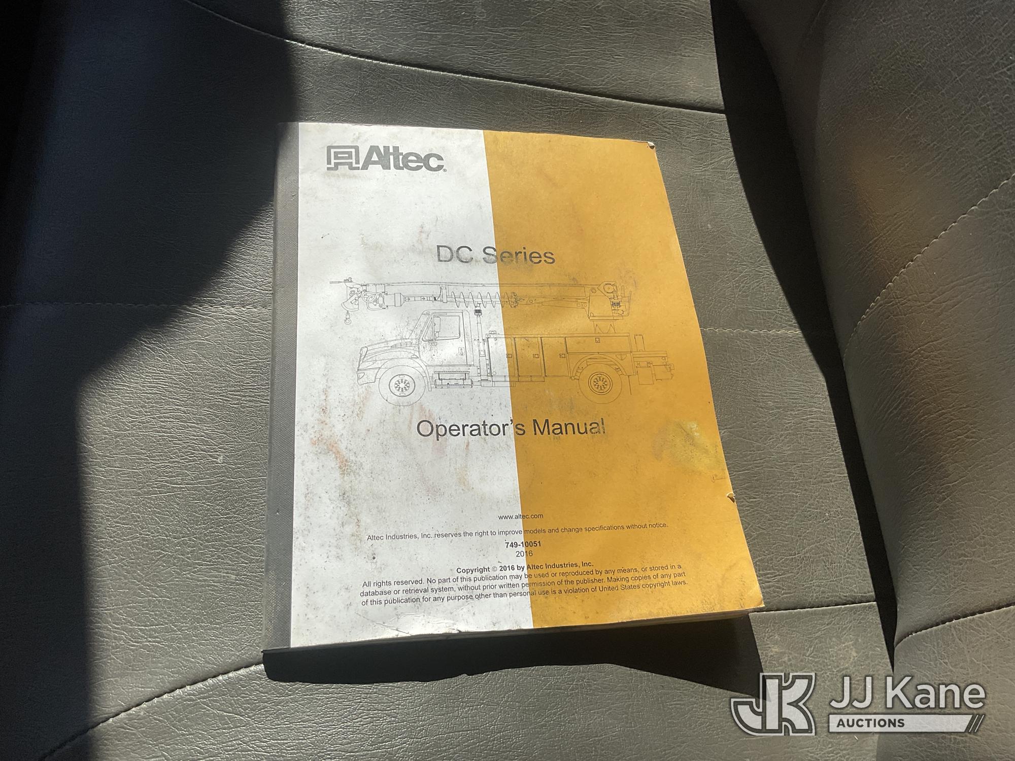 Altec DC47-TR, 23,790 Lb Digger Derrick s/n 0216FU1861, with 47ft. sheave height, 2-spd digger, pole guides, heel winch, riding console & 4 hyd outriggers, rear mounted on 2017 International 7300 Utility Truck, Cummins ISB6.7 diesel, Auto, A/C, with Tow Package, (57,579 miles) (Runs & Moves, Upper Operates)(Cracked Windshield, Smells Like Burning Oil When Running) (Reads 4,286 hours) May be subject to ARB Regulations This is a Titled Item*