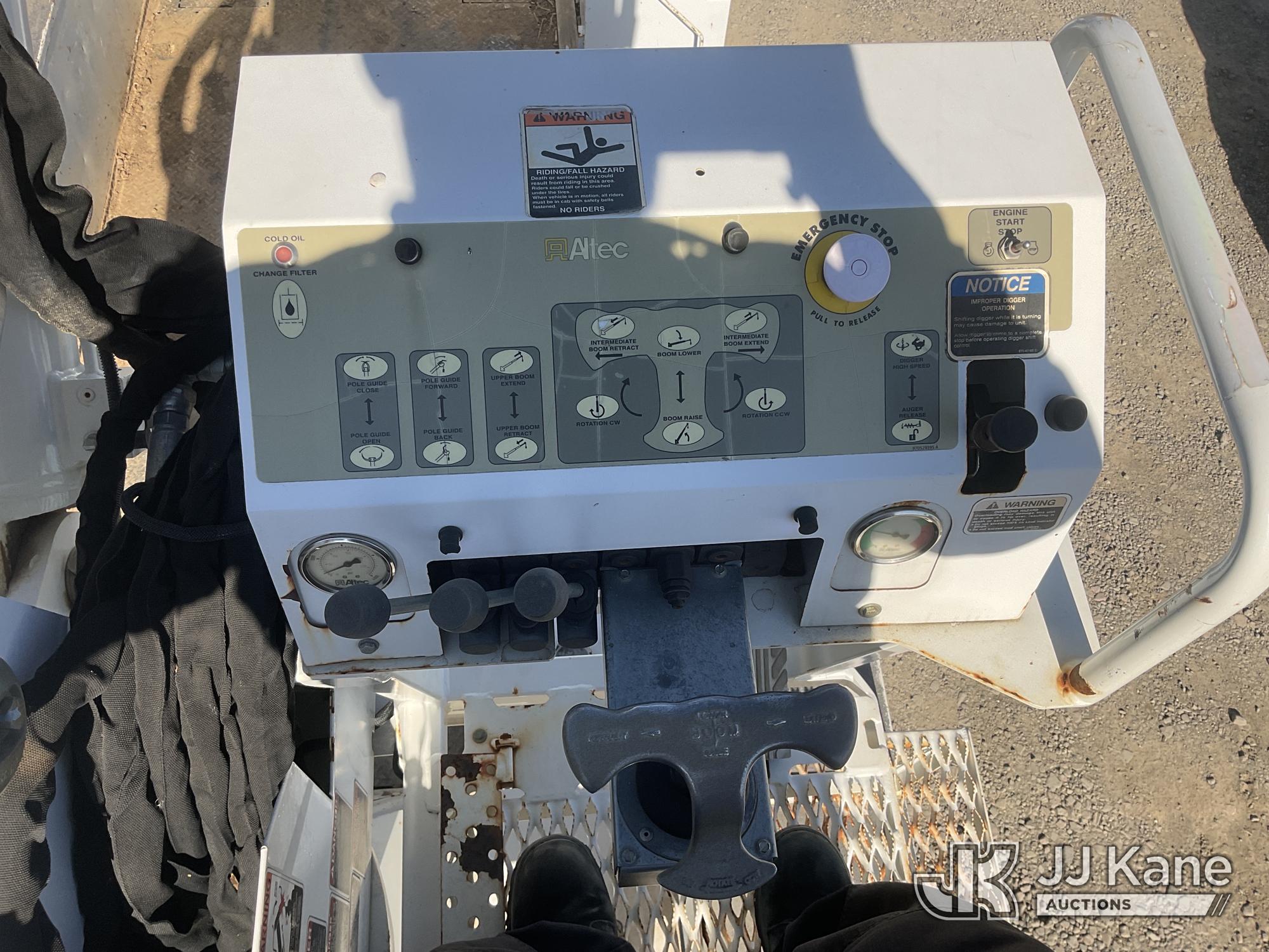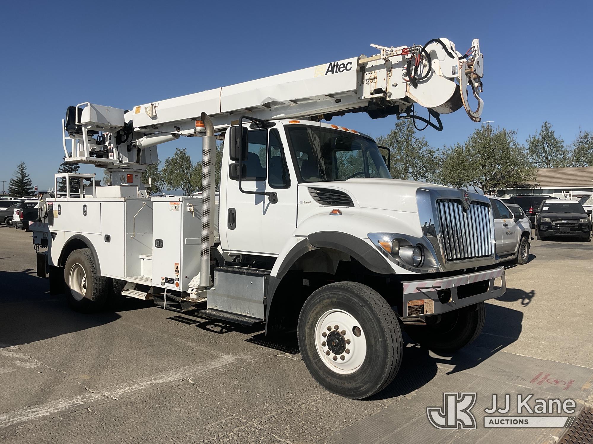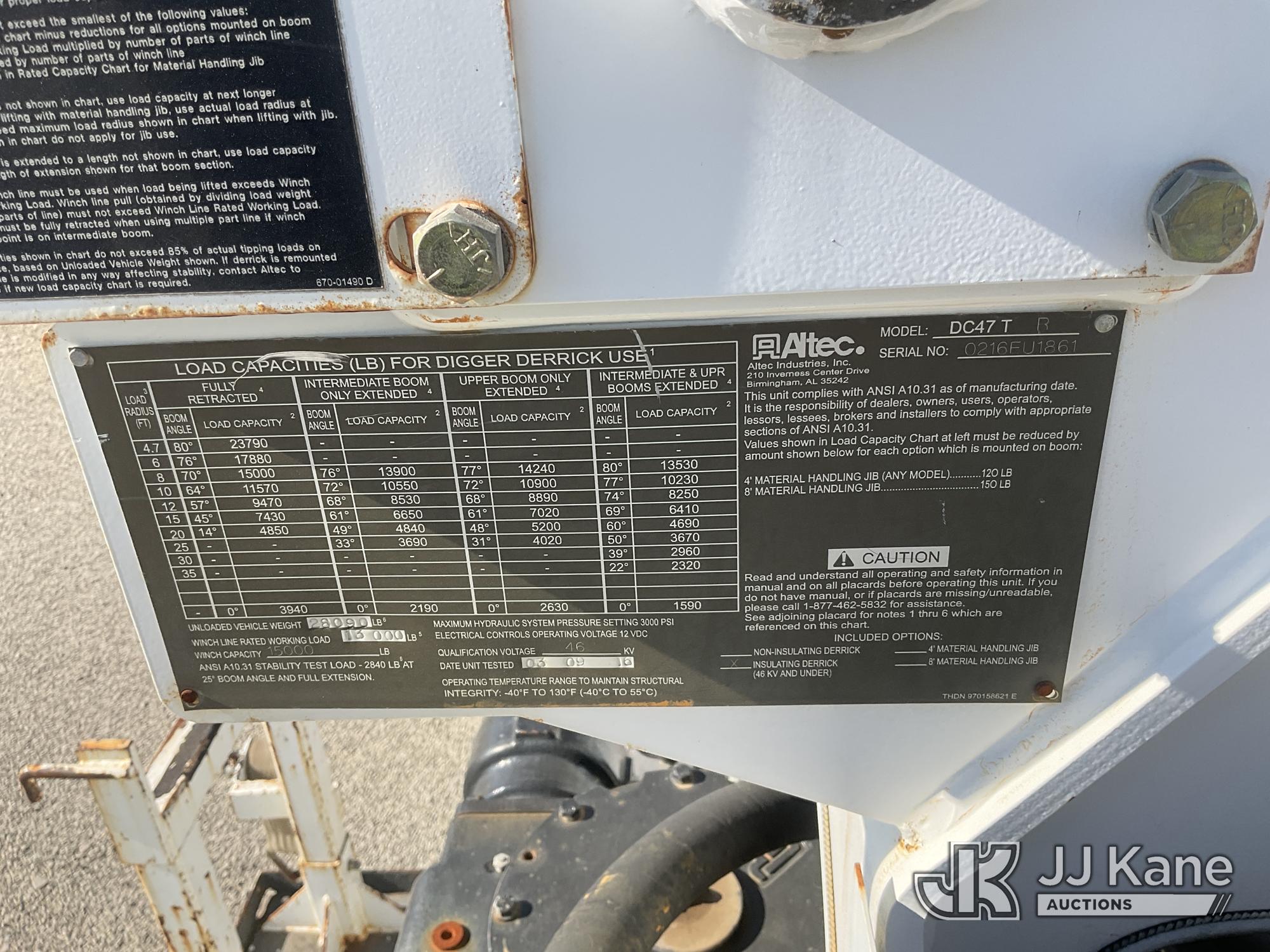 Altec DC47-TR, 23,790 Lb Digger Derrick s/n 0216FU1861, with 47ft. sheave height, 2-spd digger, pole guides, heel winch, riding console & 4 hyd outriggers, rear mounted on 2017 International 7300 Utility Truck, Cummins ISB6.7 diesel, Auto, A/C, with Tow Package, (57,579 miles) (Runs & Moves, Upper Operates)(Cracked Windshield, Smells Like Burning Oil When Running) (Reads 4,286 hours) May be subject to ARB Regulations This is a Titled Item*
