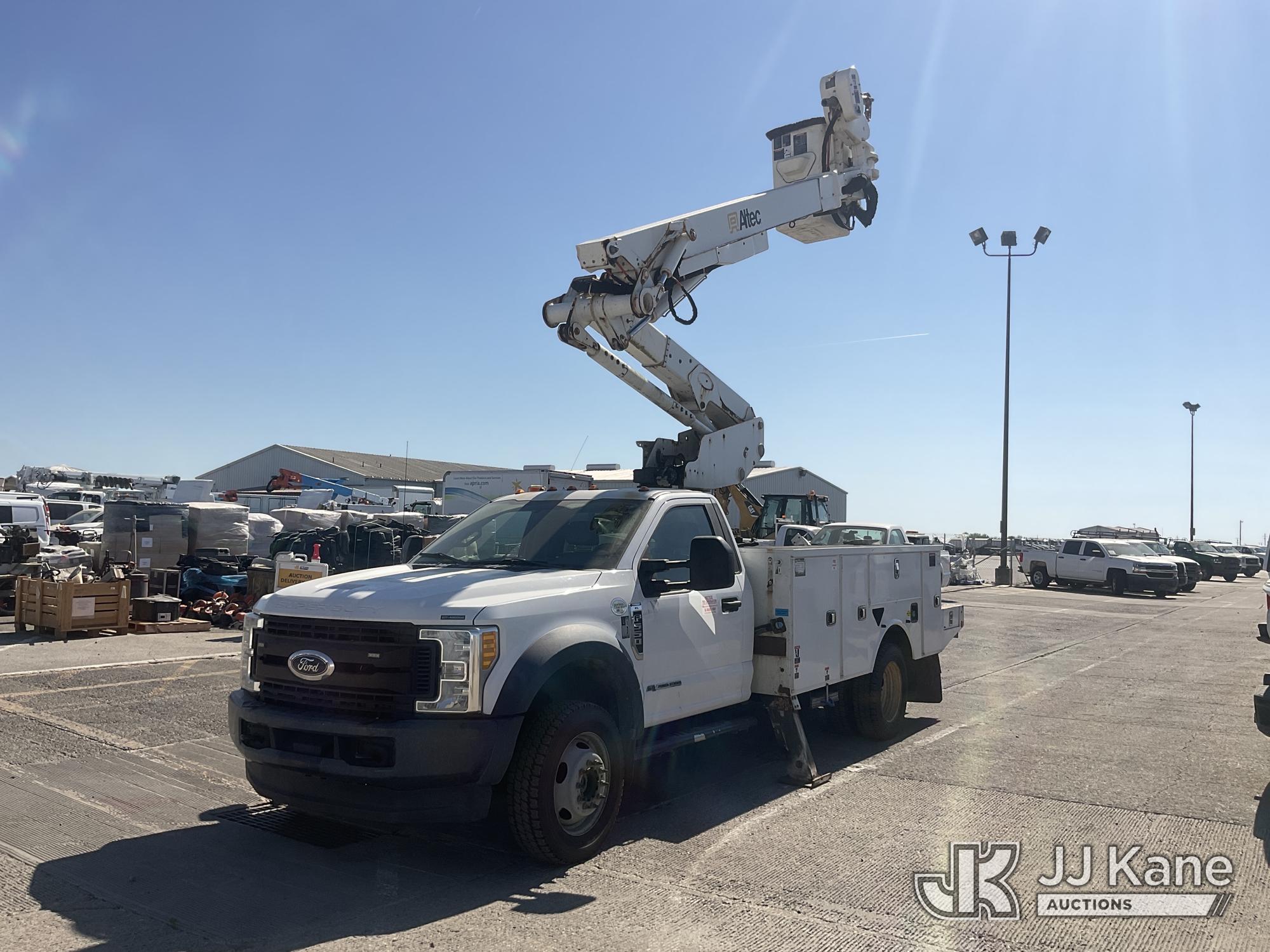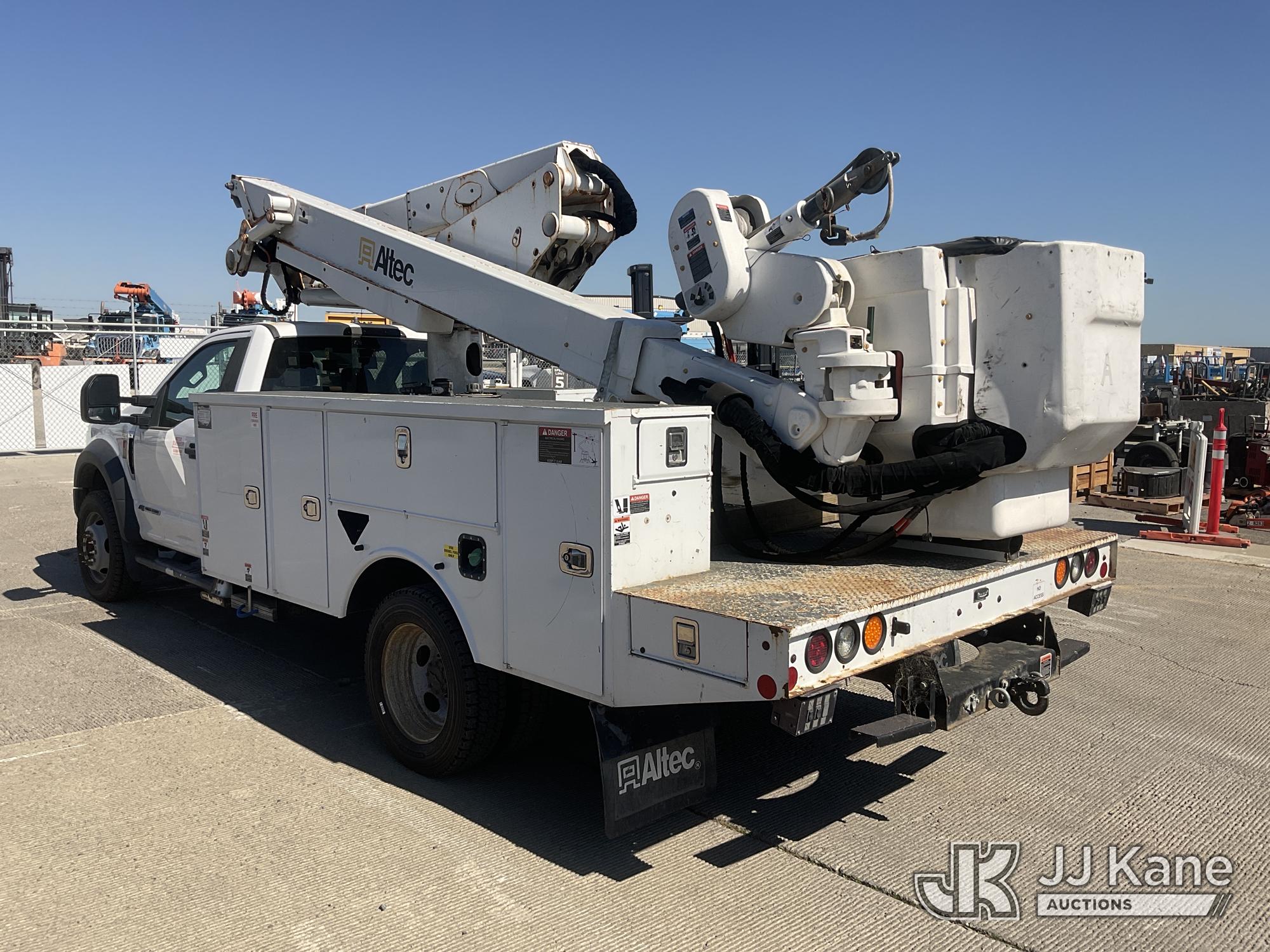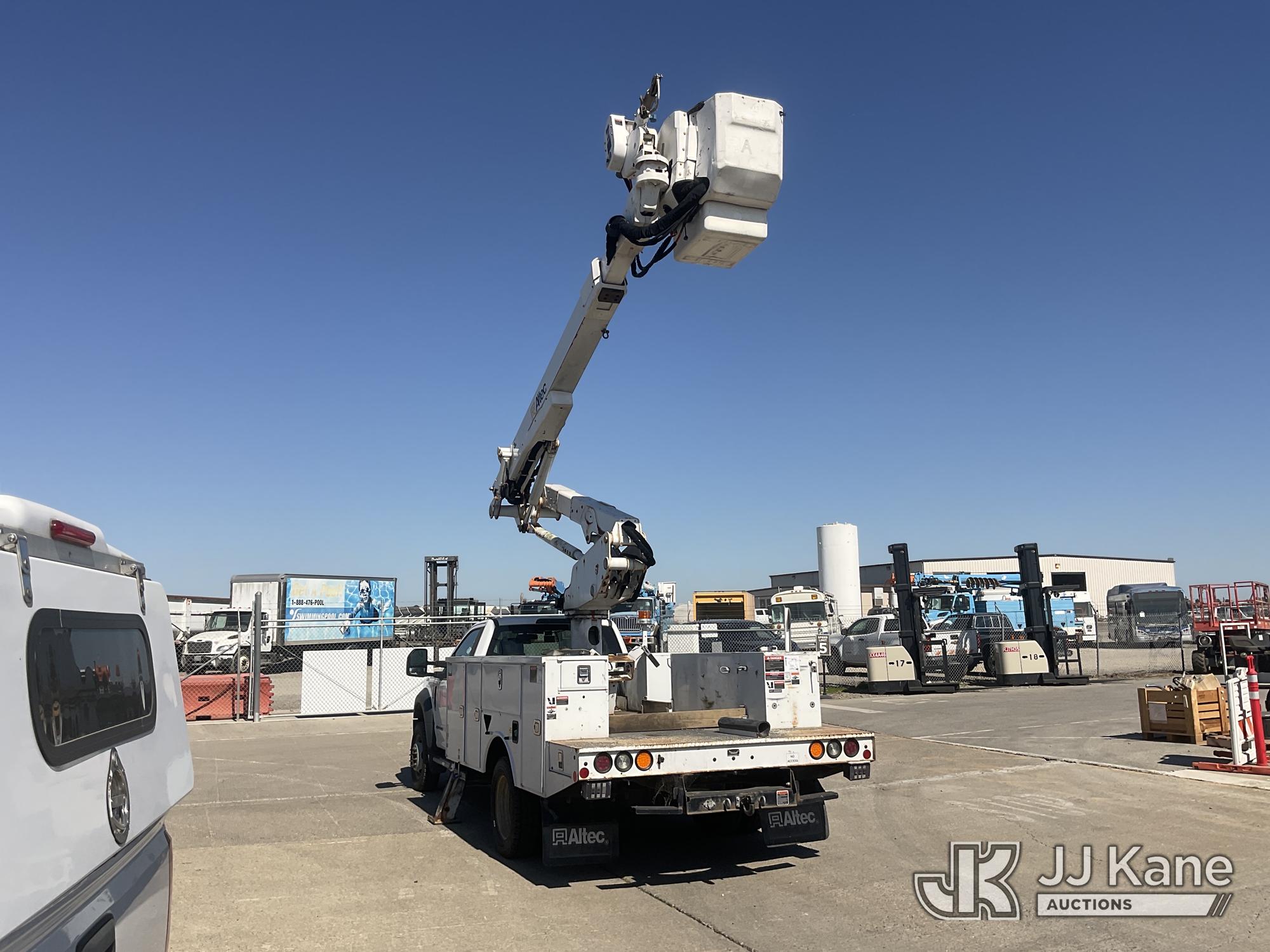 Altec AT41M, 45 ft, Articulating & Telescopic Material Handling Bucket Truck s/n 0418GX0646, with single-man bucket, mounted behind cab on 2017 Ford F-550 Regular Cab DRW 4WD Service Truck, s/n 1FDUF5HT5HDA09837, 6.7L V8 OHV 16V DIESEL, Auto, A/C, with Tow Package, (89,456 miles) (Runs, Moves & Upper Operates, Passenger Side Outrigger Does Not Operate, Rust Damage On Upper Unit) May be subject to ARB Regulations This is a Titled Item*